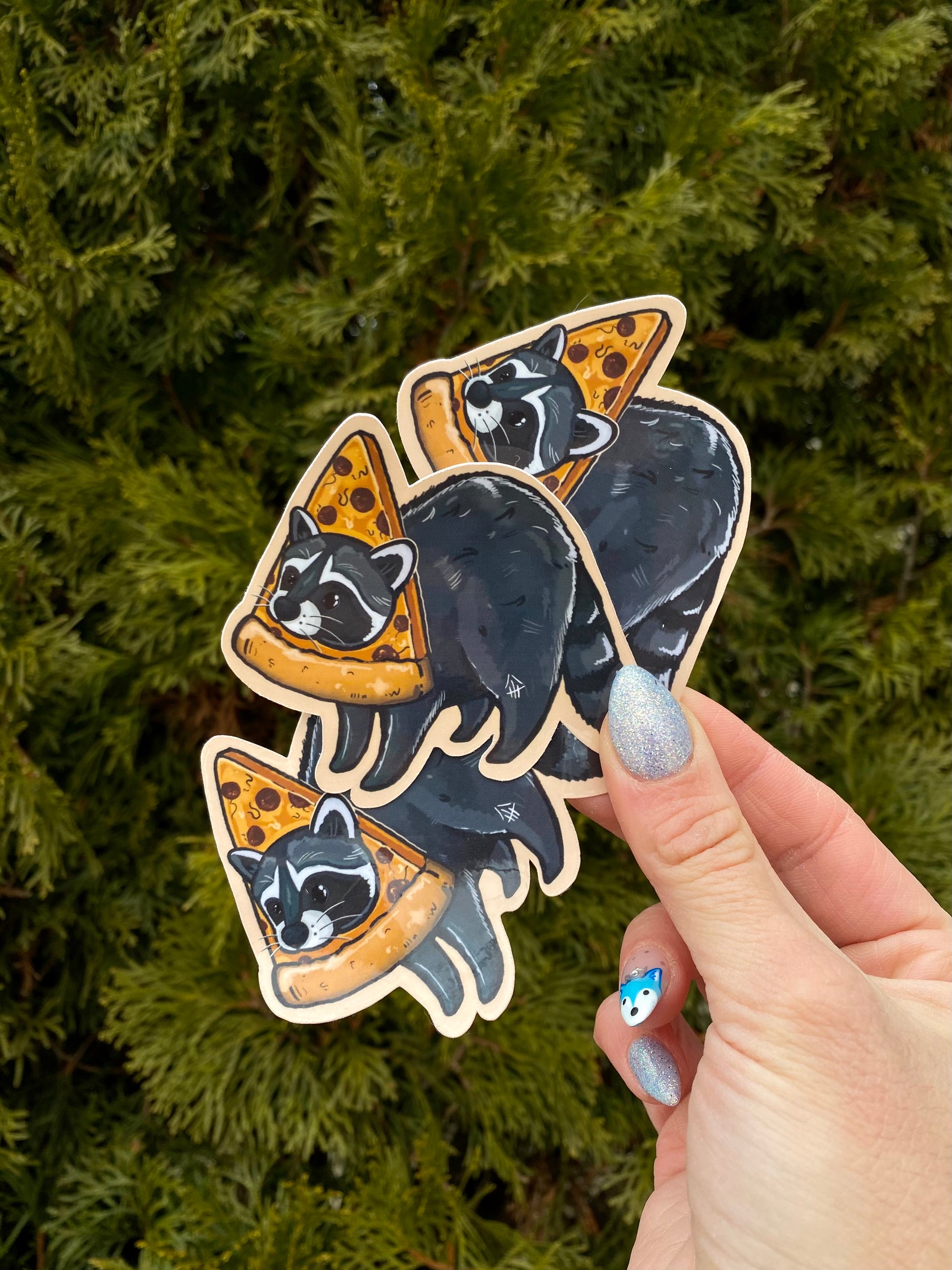 Pizza Raccoon Vinyl Waterproof Sticker 3"