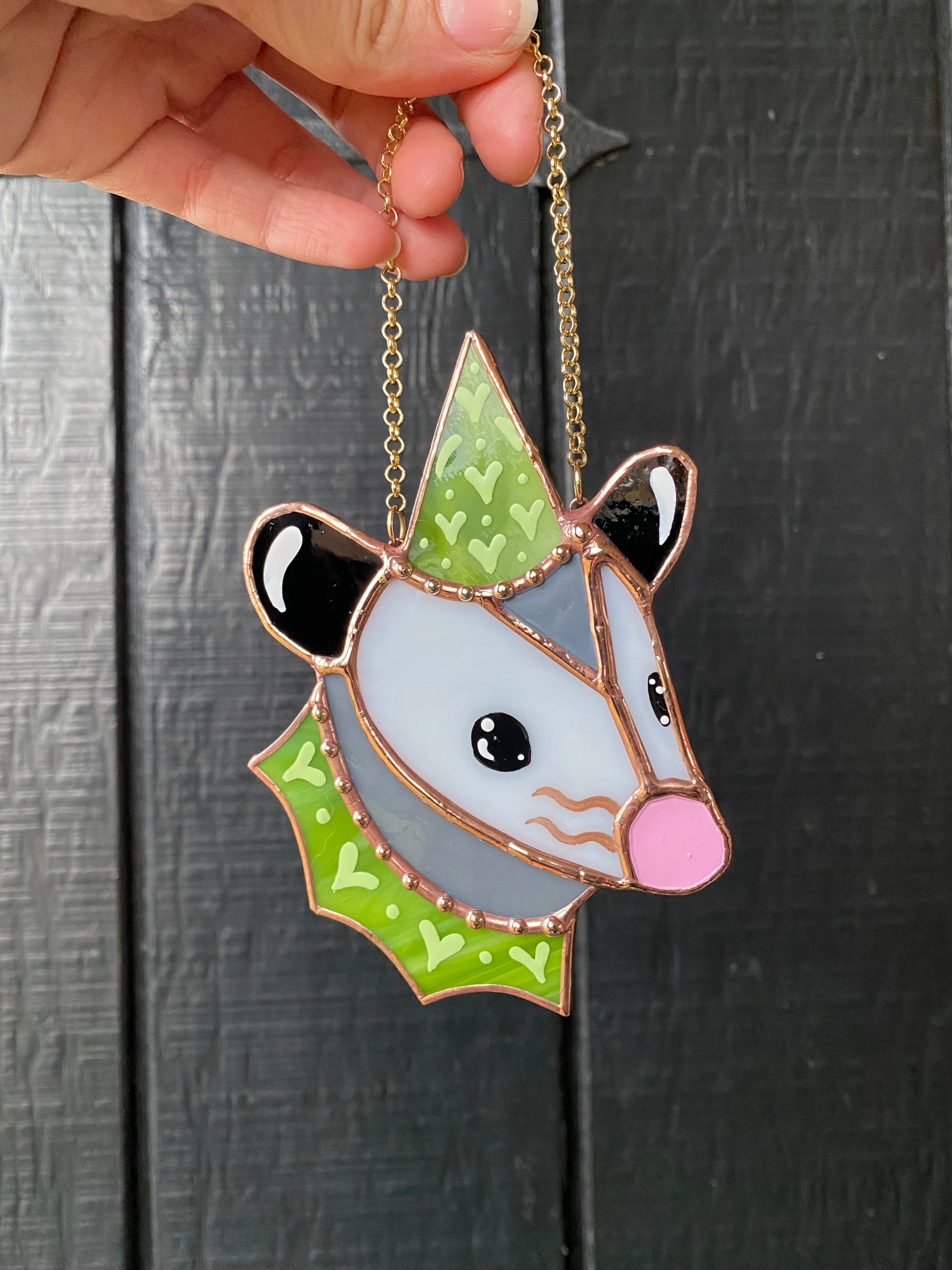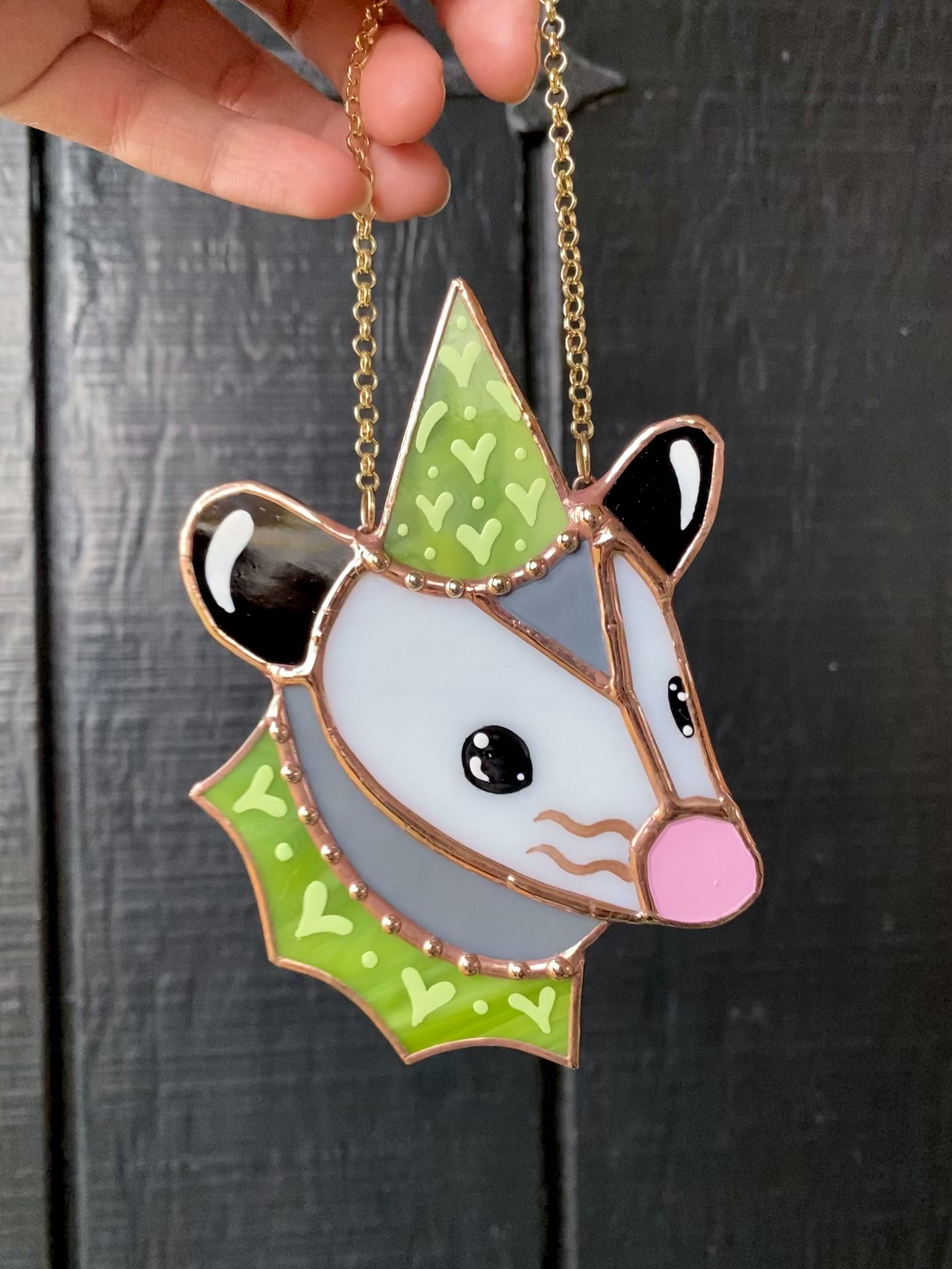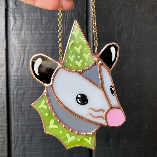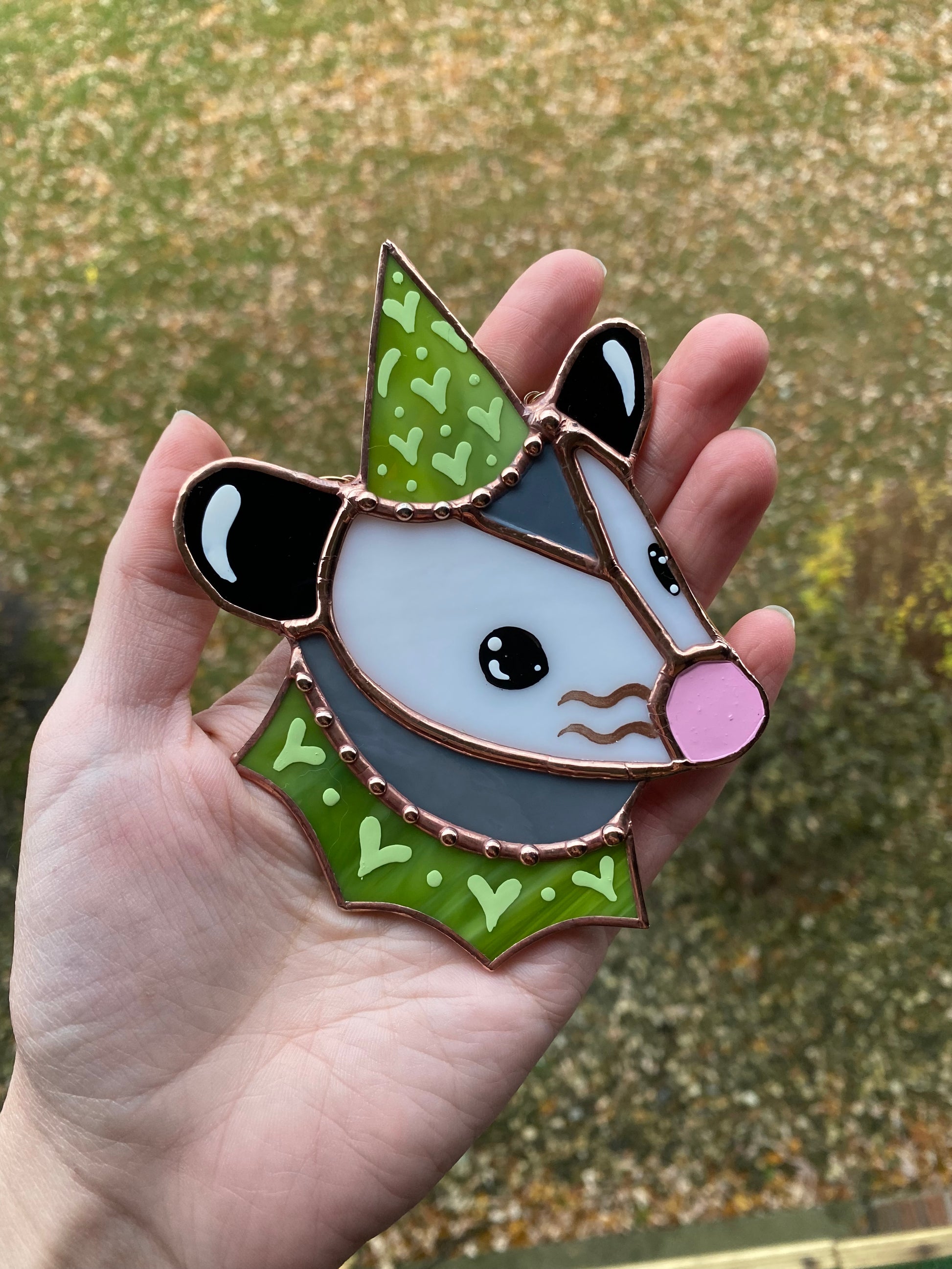 Green Lovely Opossum Mini Stained Glass Suncatcher