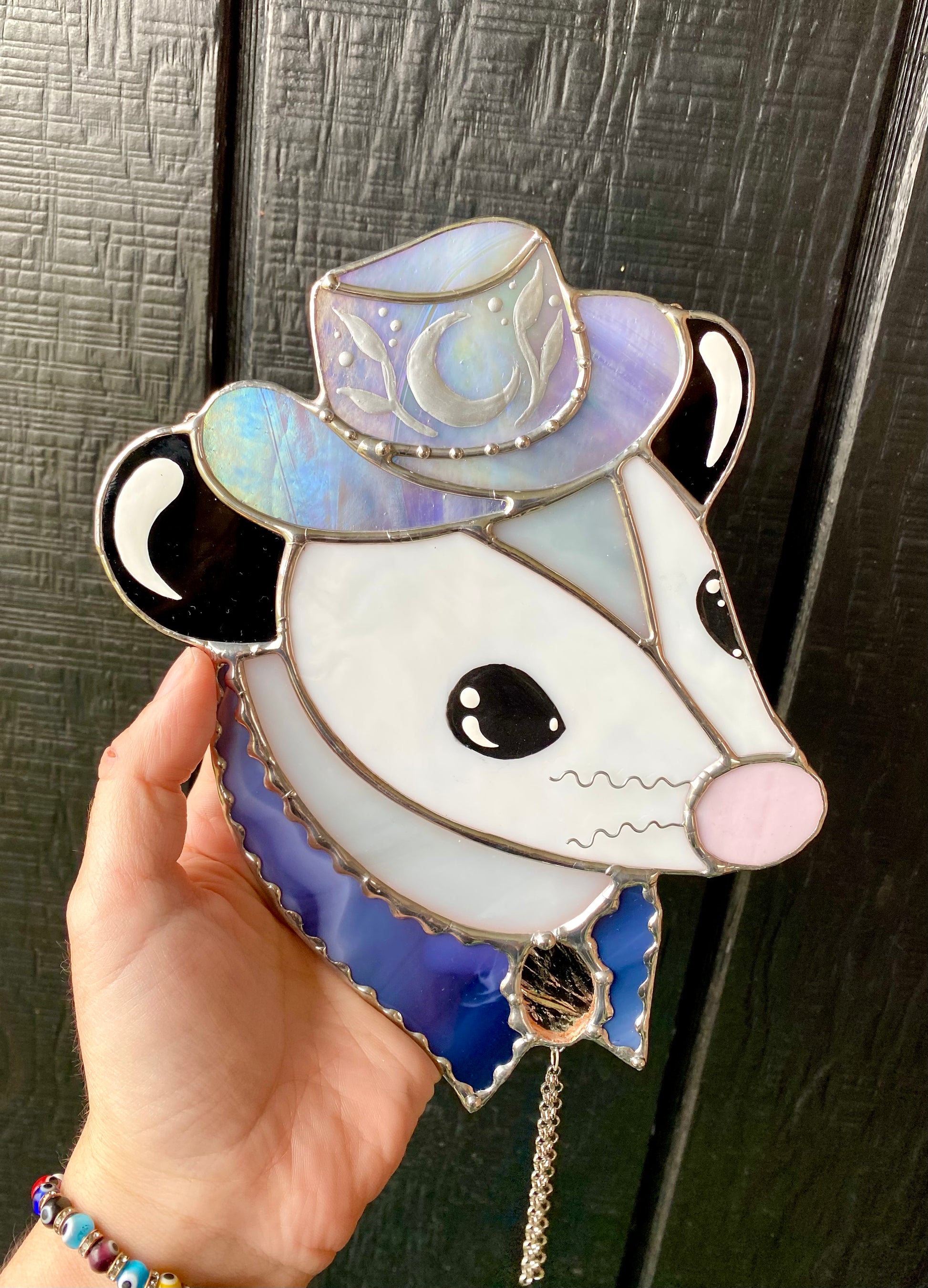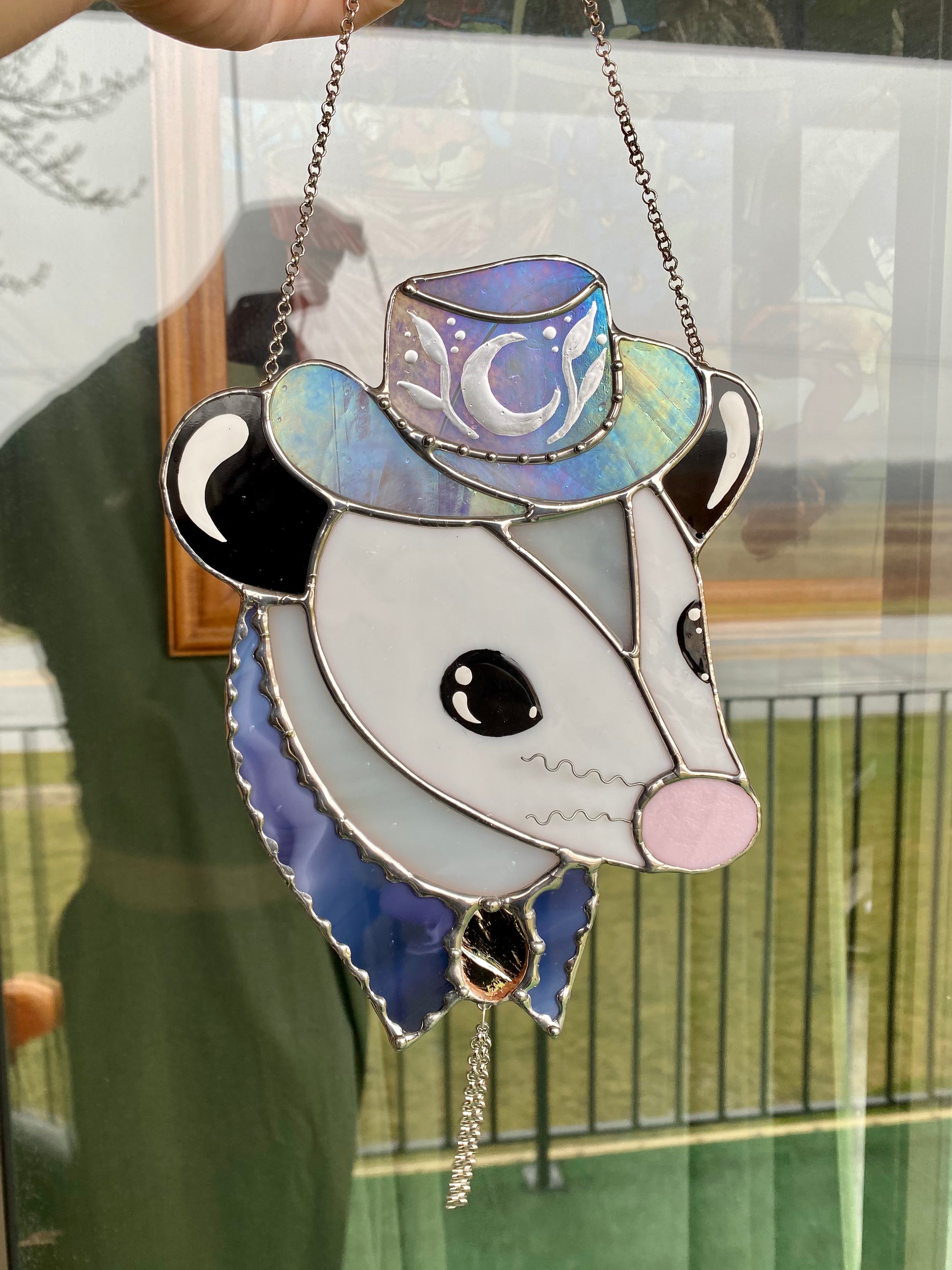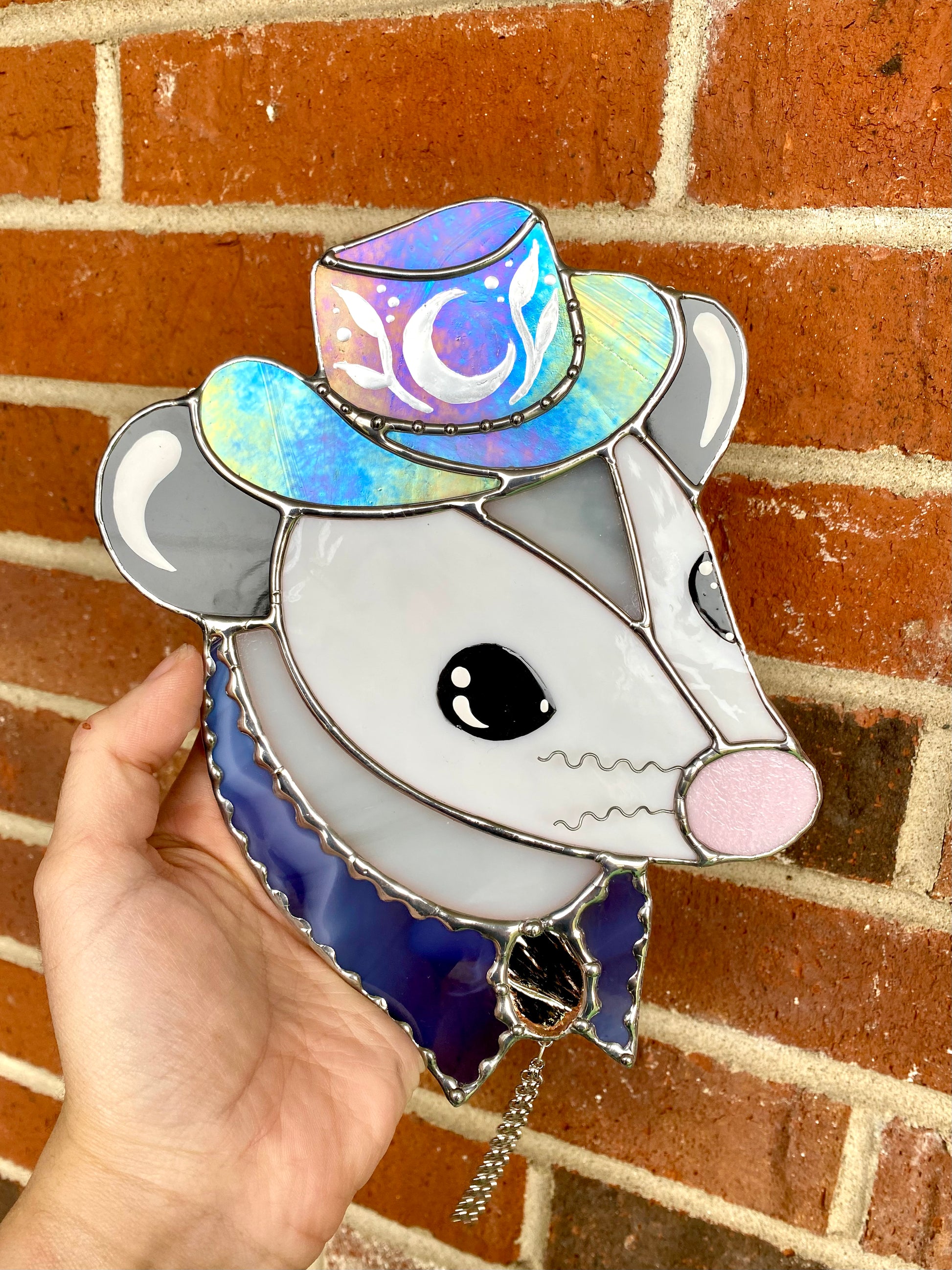 Purple Cowboy Opossum Stained Glass Suncatcher