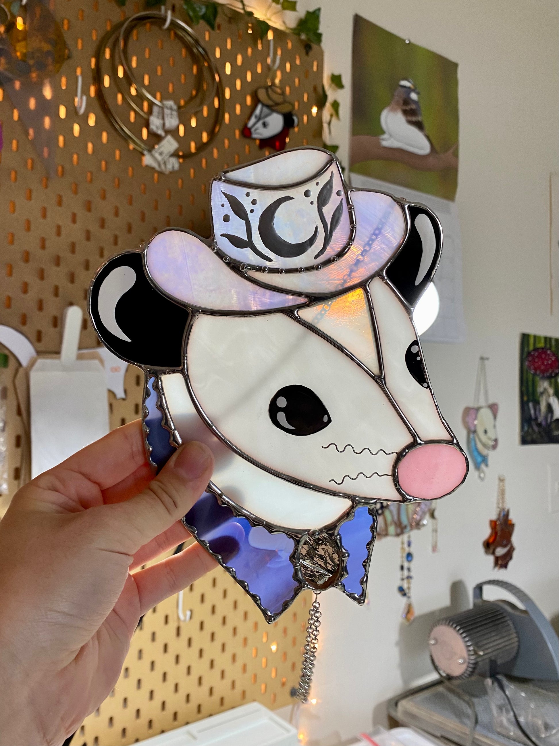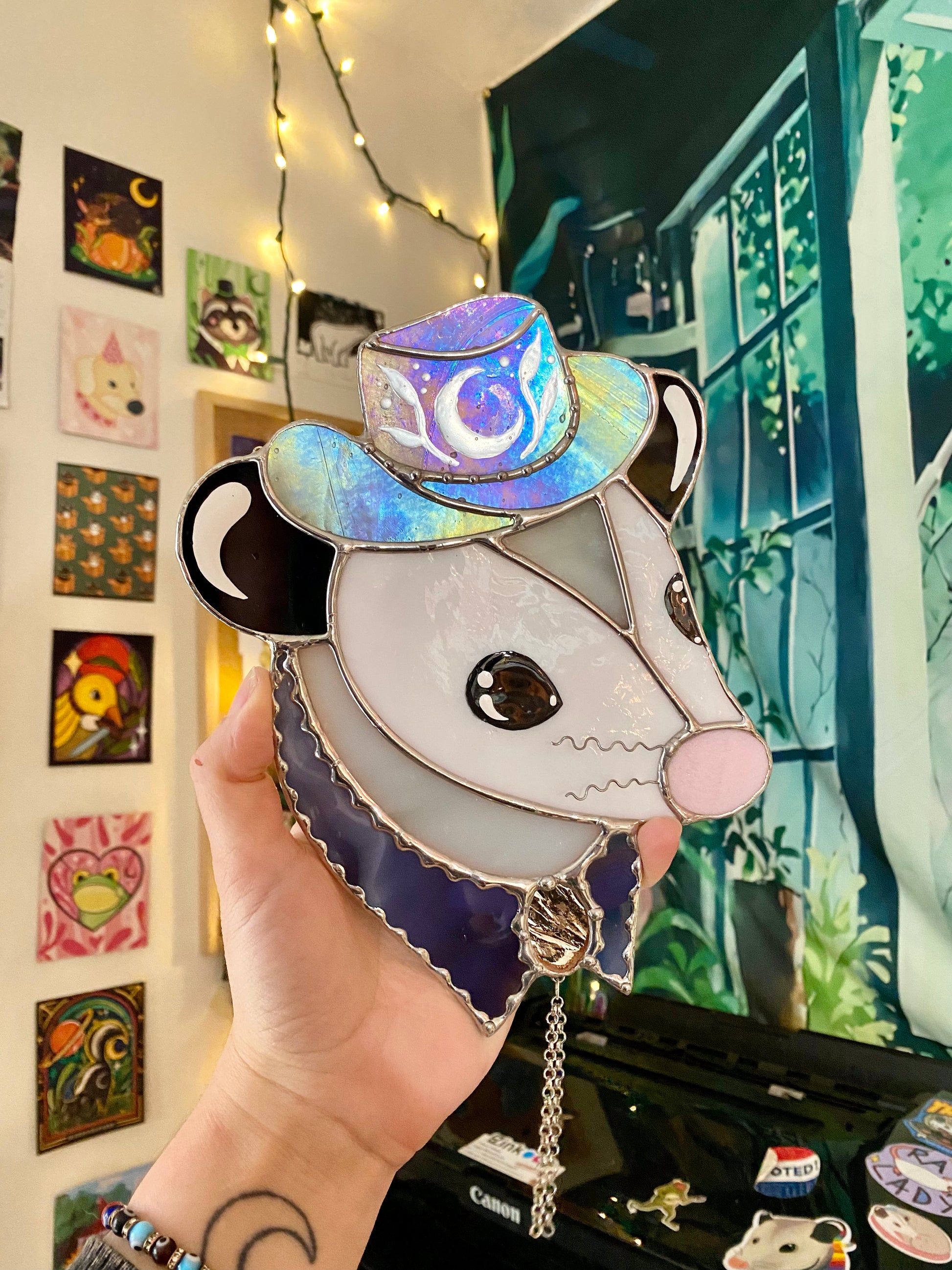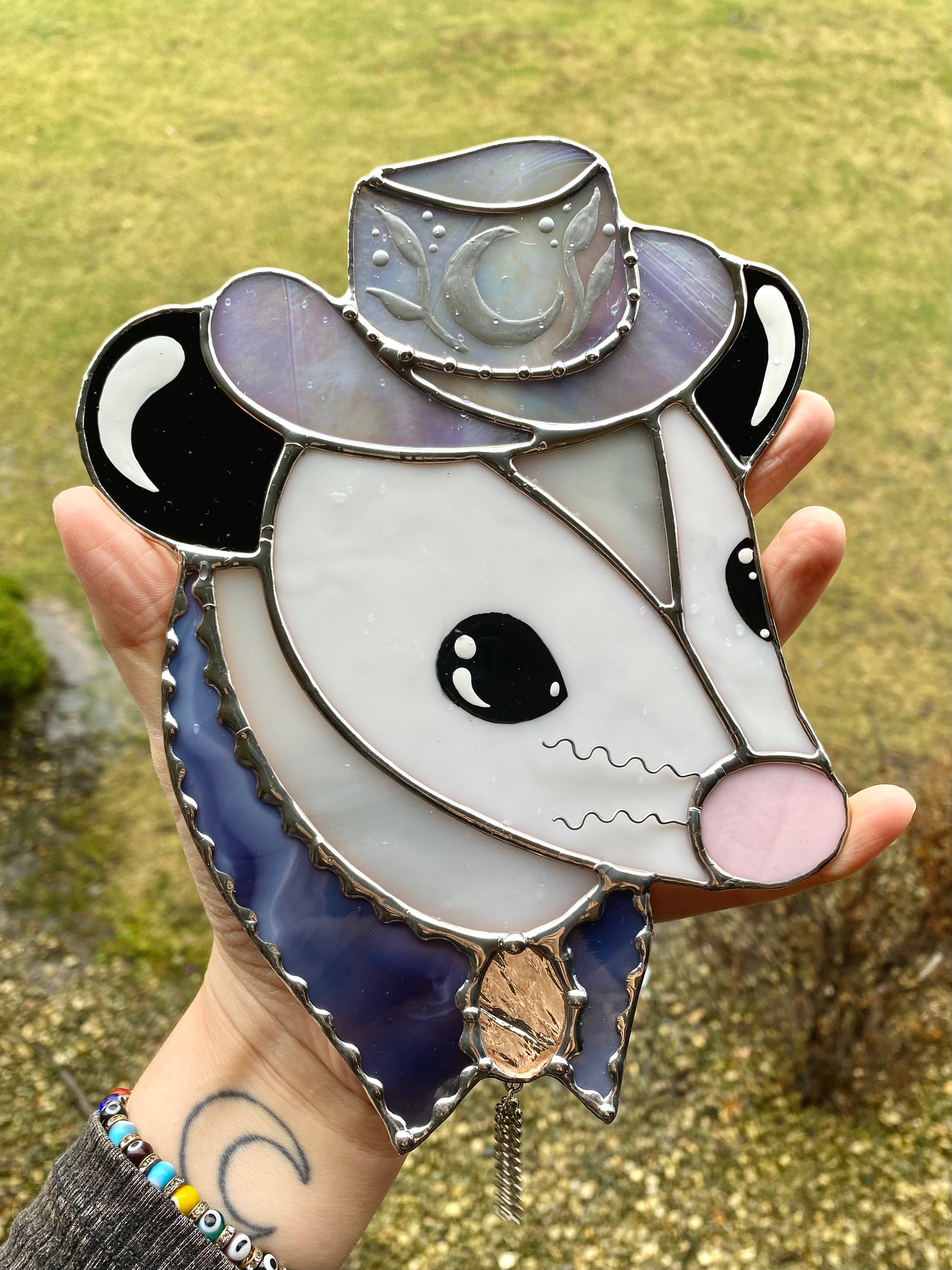 Purple Cowboy Opossum Stained Glass Suncatcher