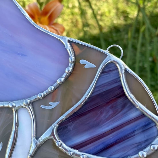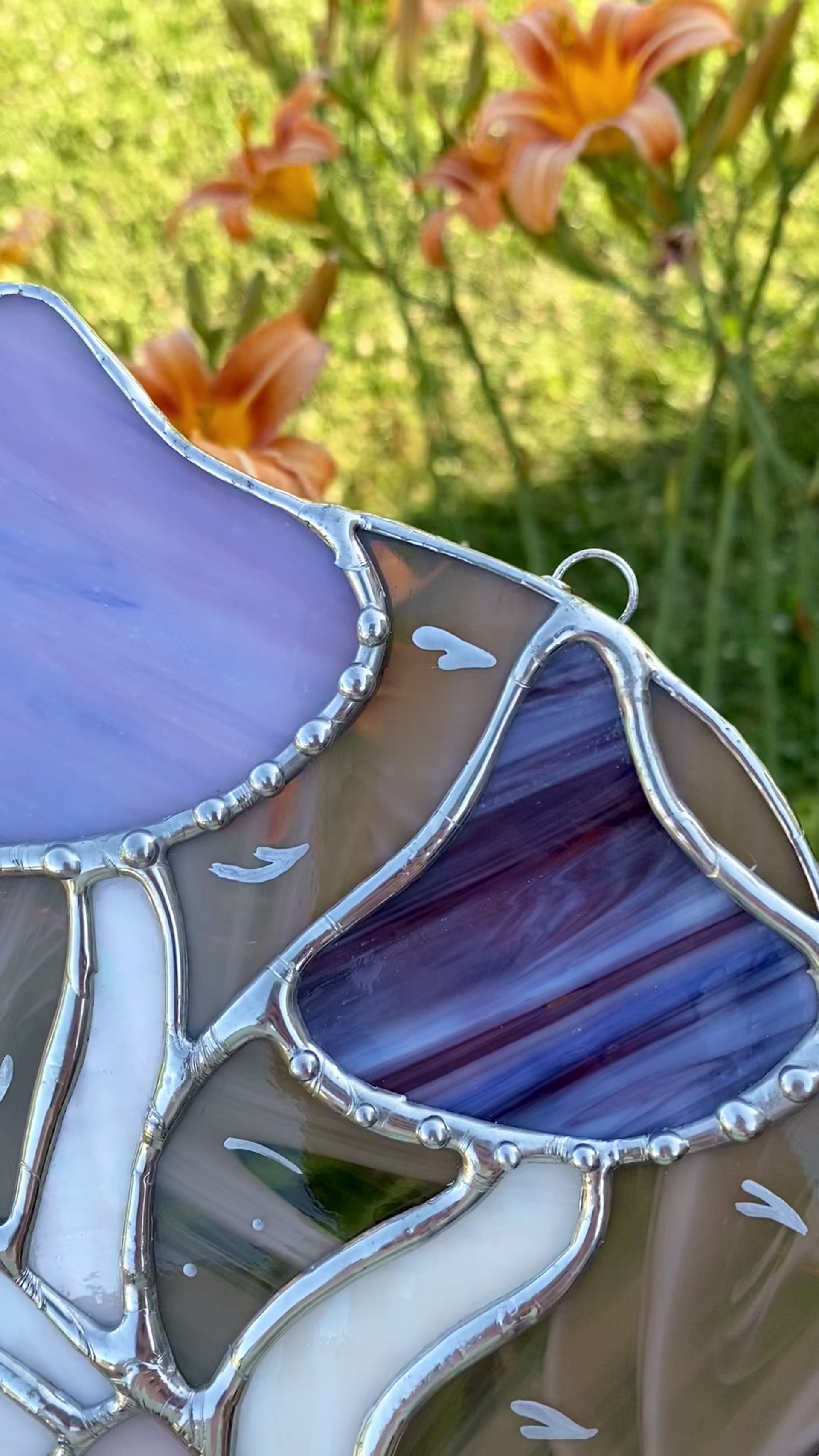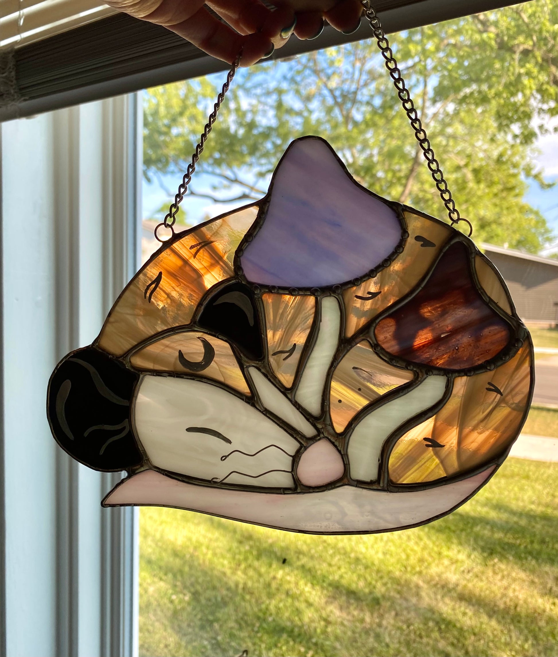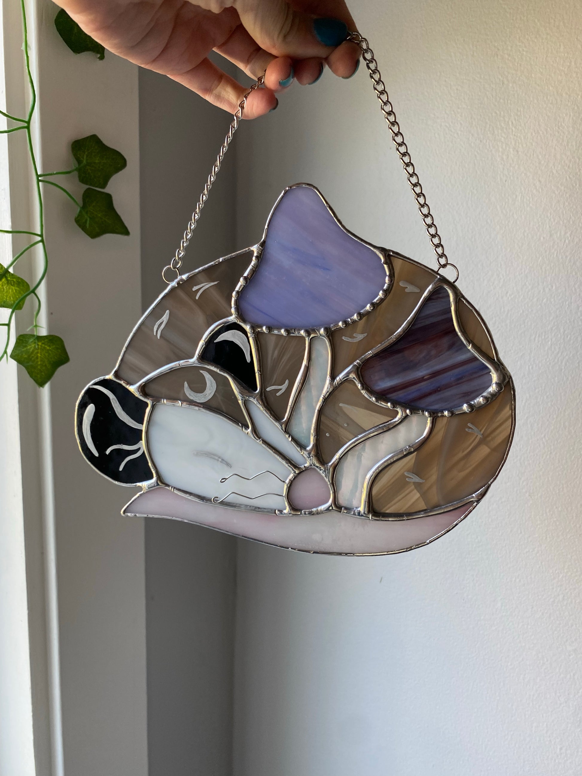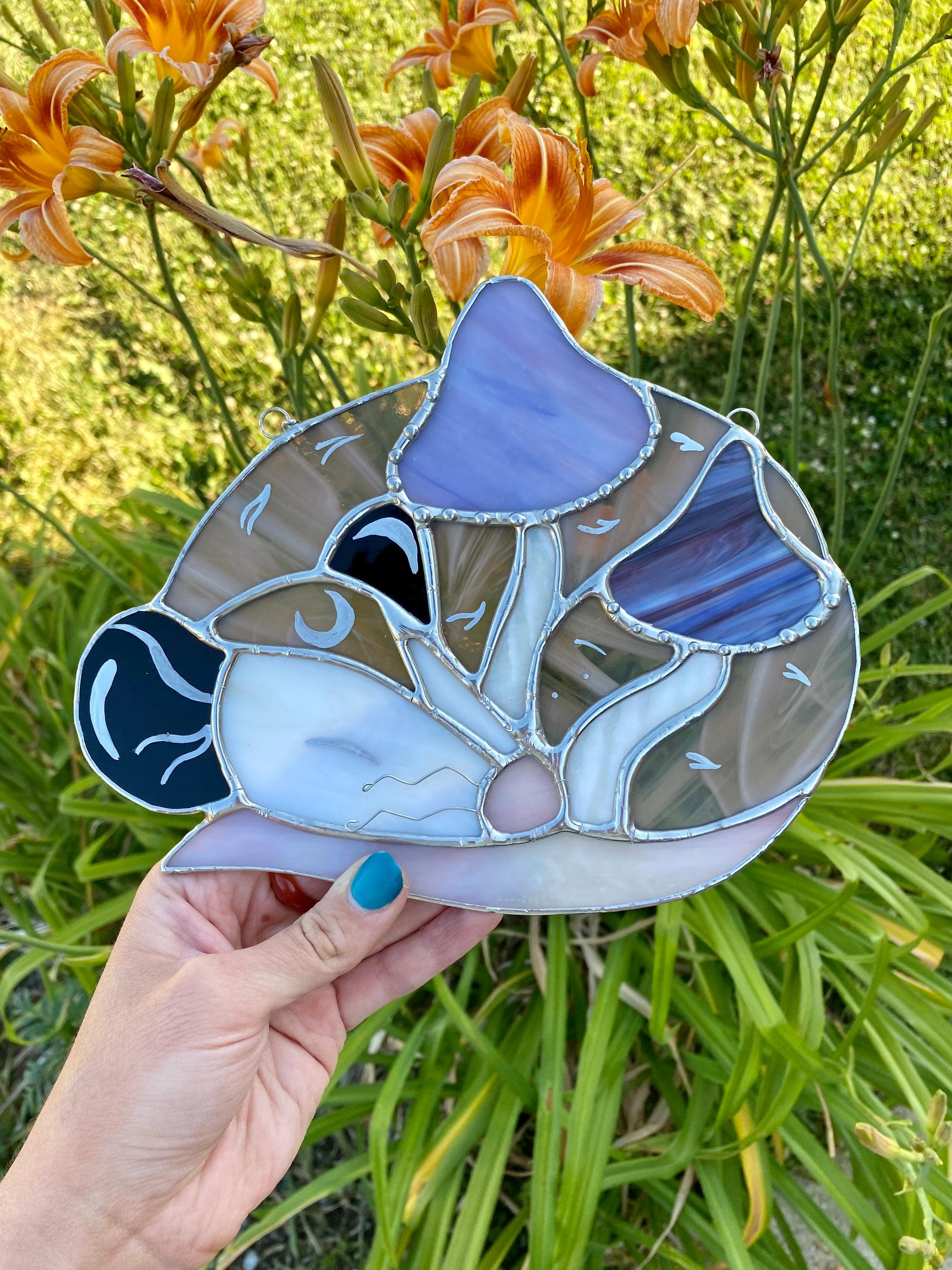 Purple Mushroom Opossum Stained Glass Suncatcher