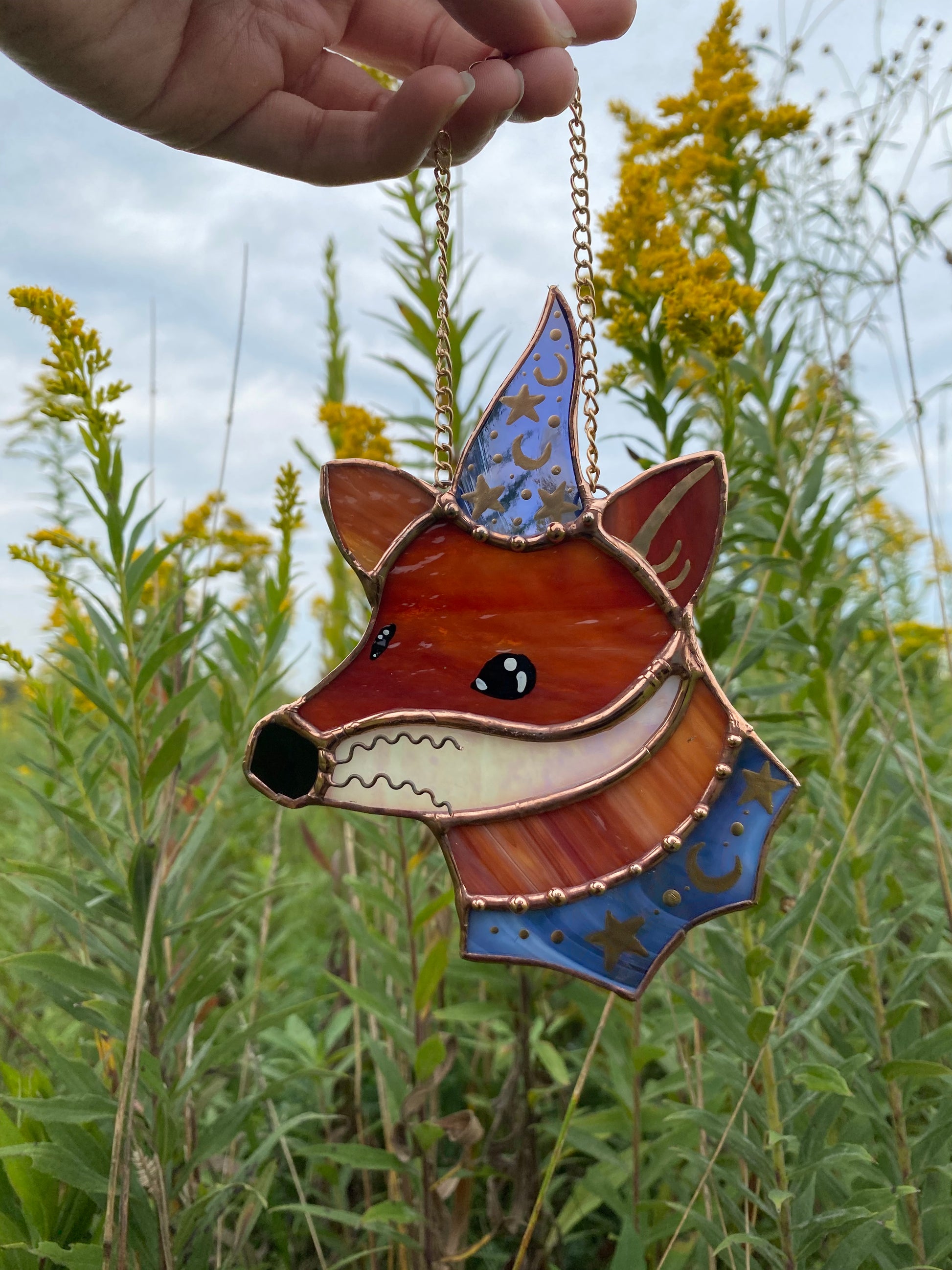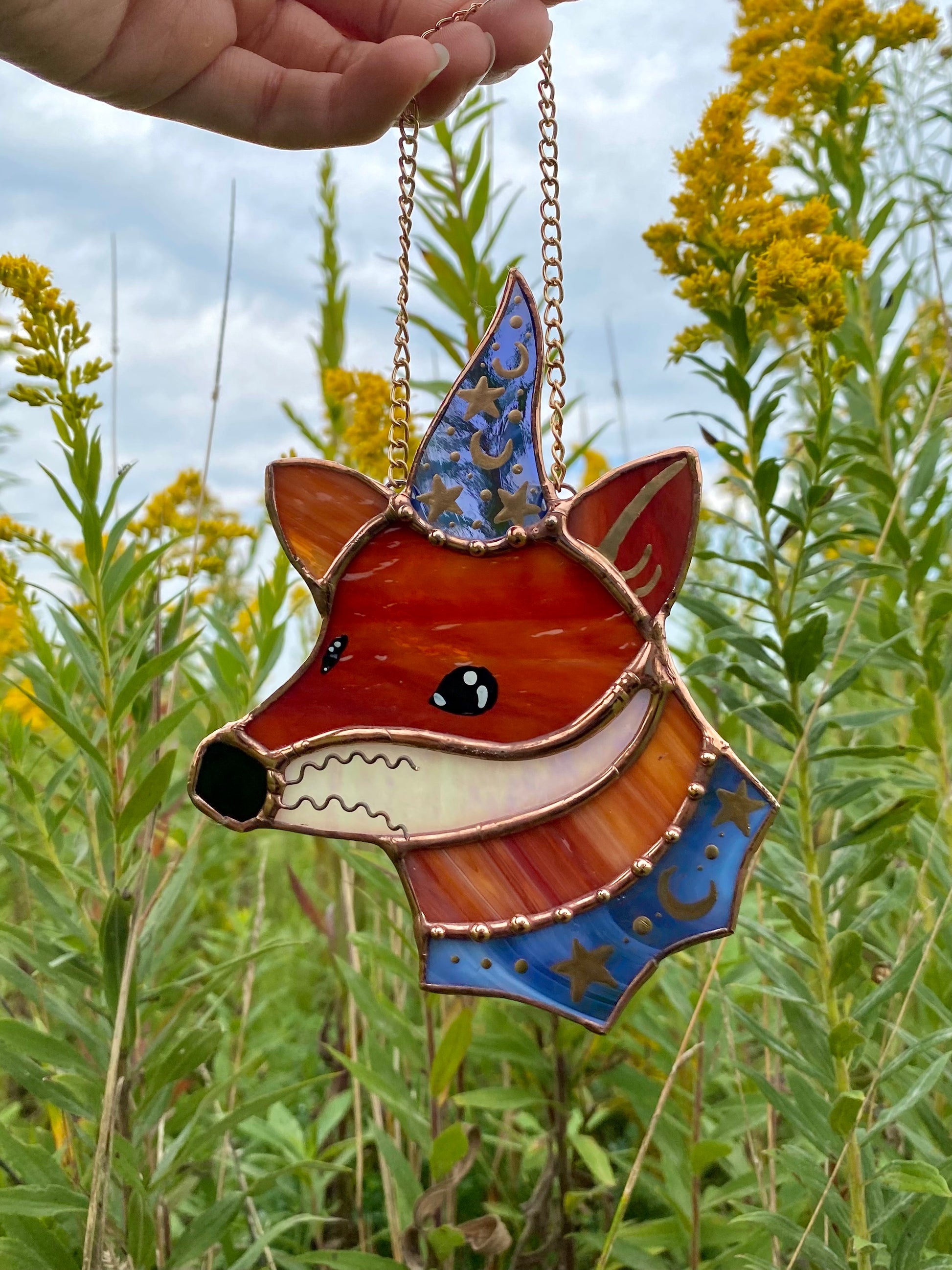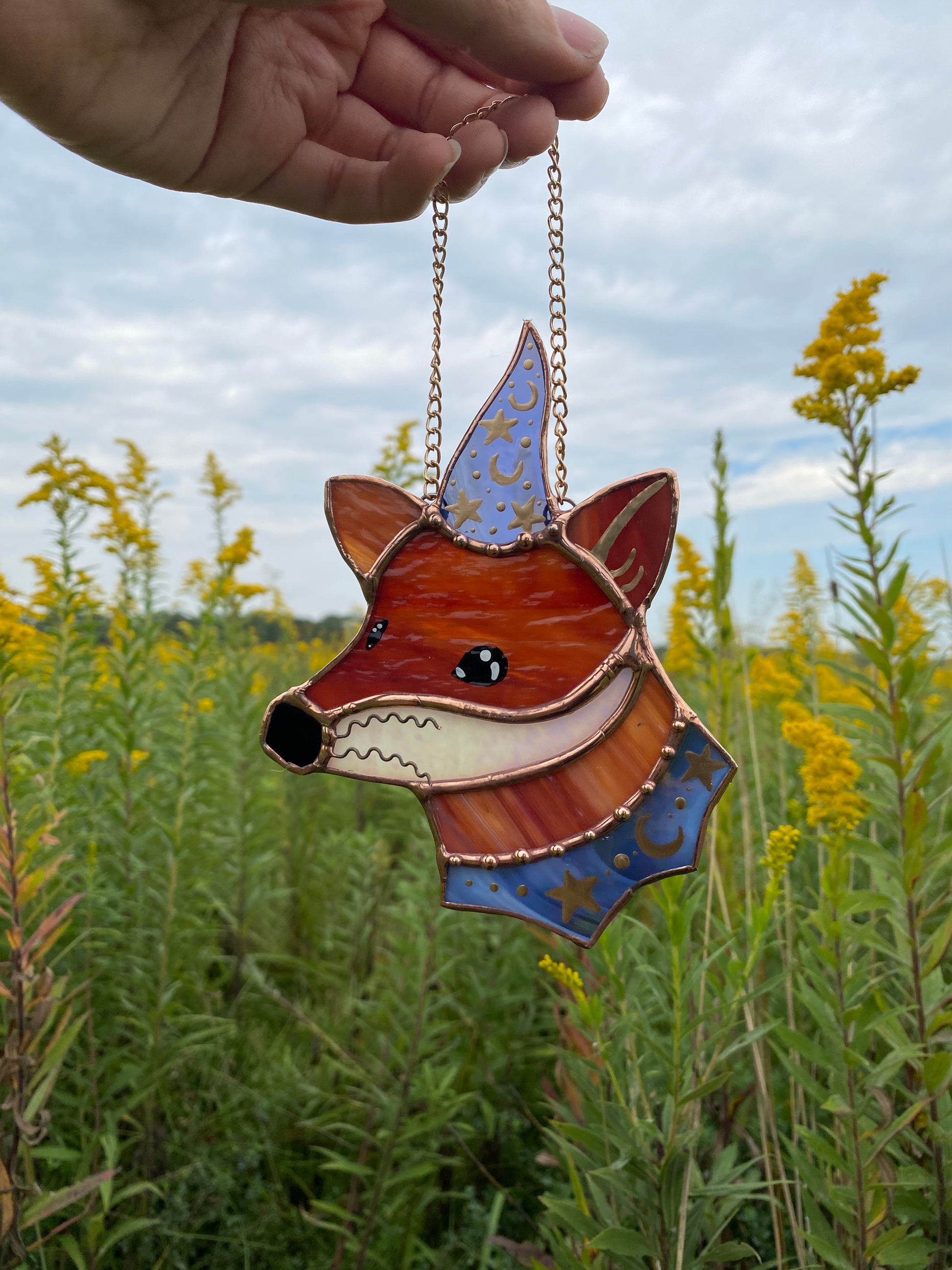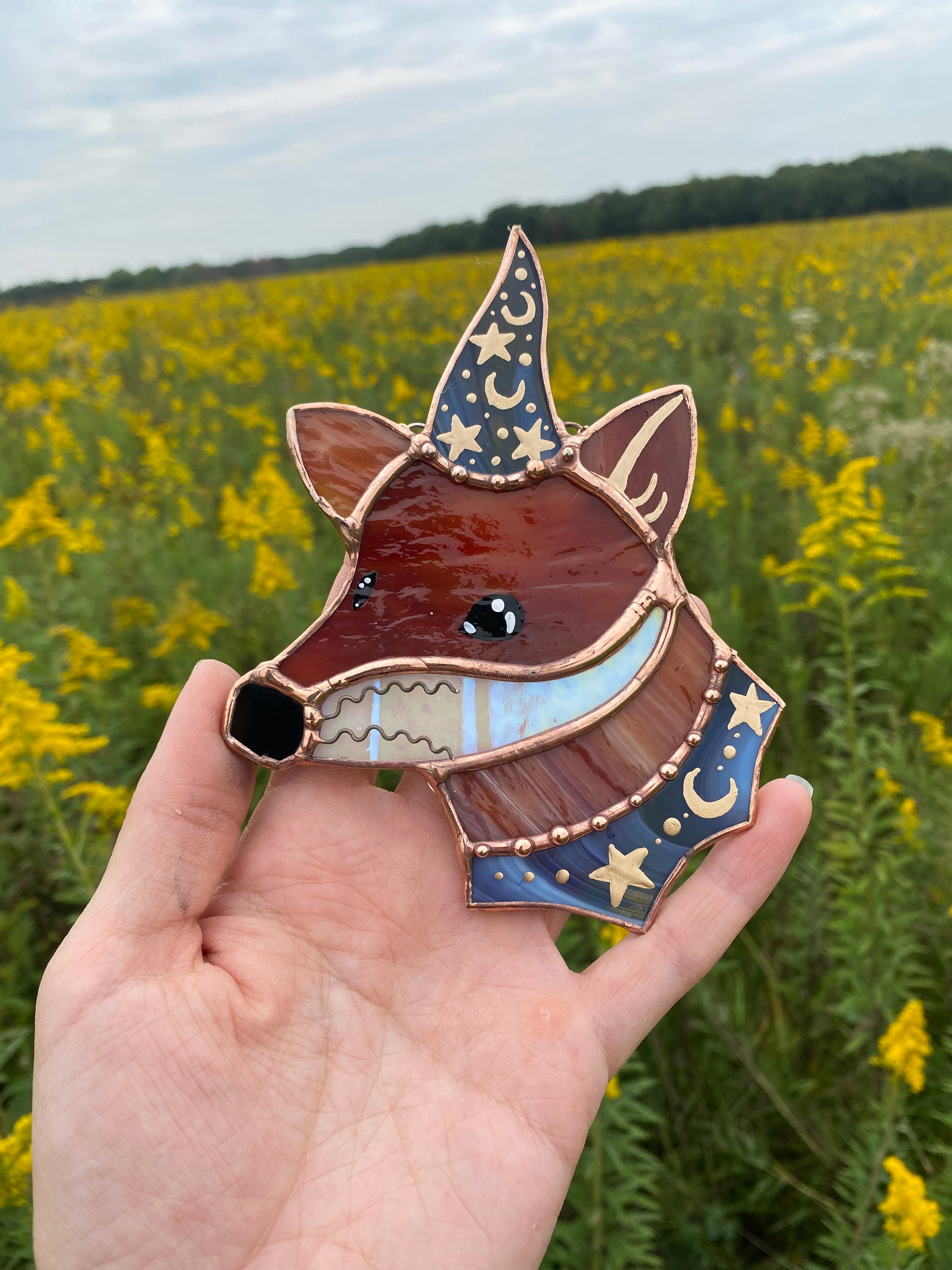 Purple Swirl Mini Wizard Fox Stained Glass Suncatcher