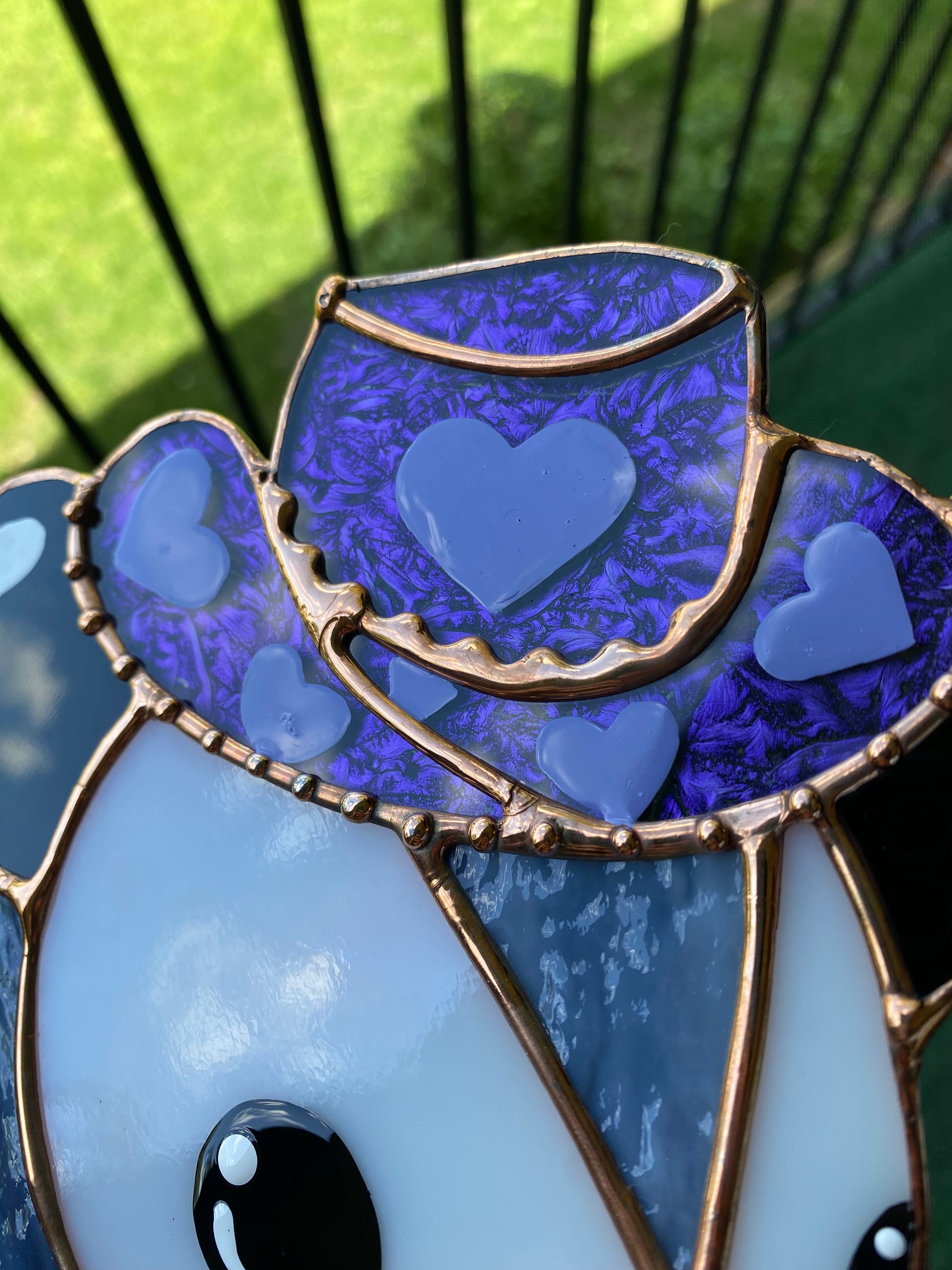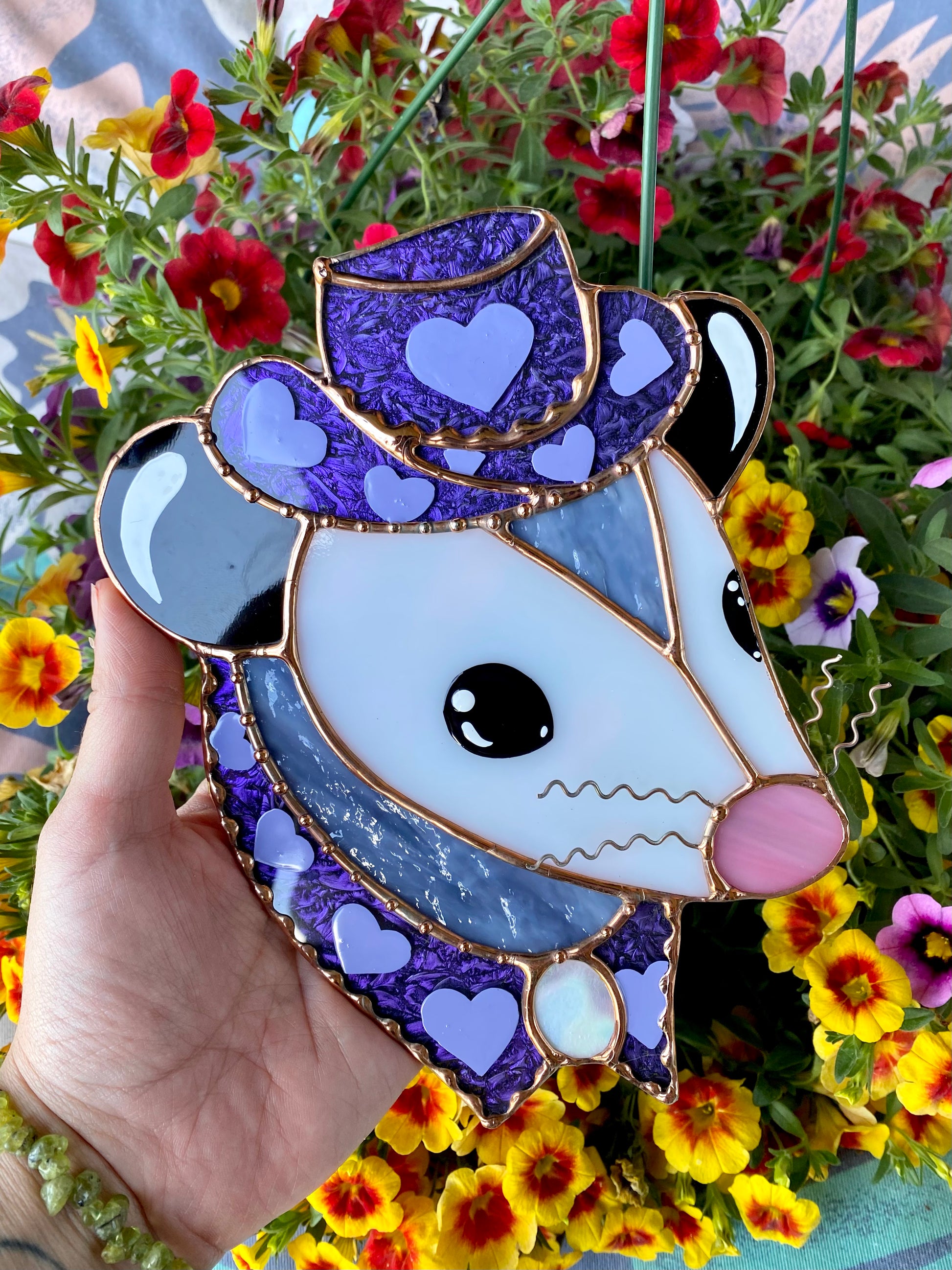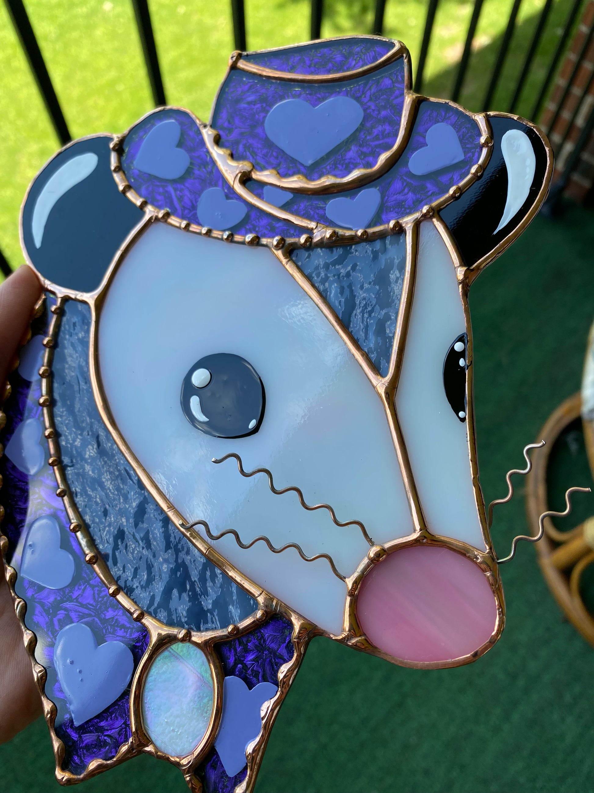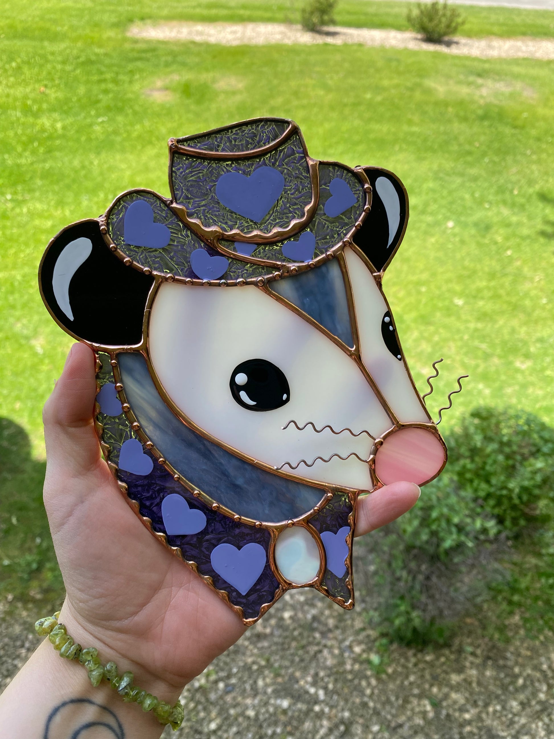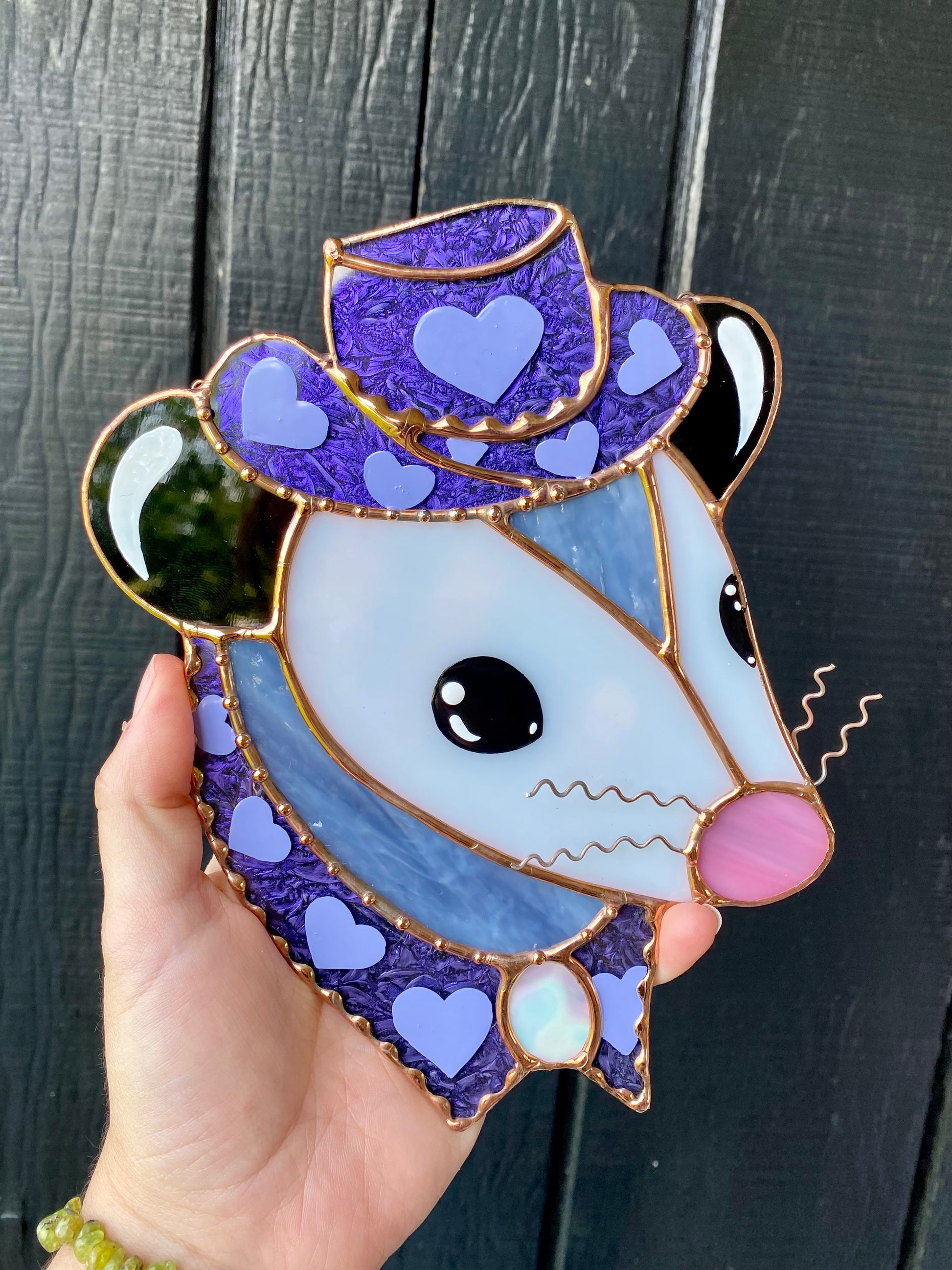 Purple Van Gogh Cowboy Opossum Stained Glass Suncatcher