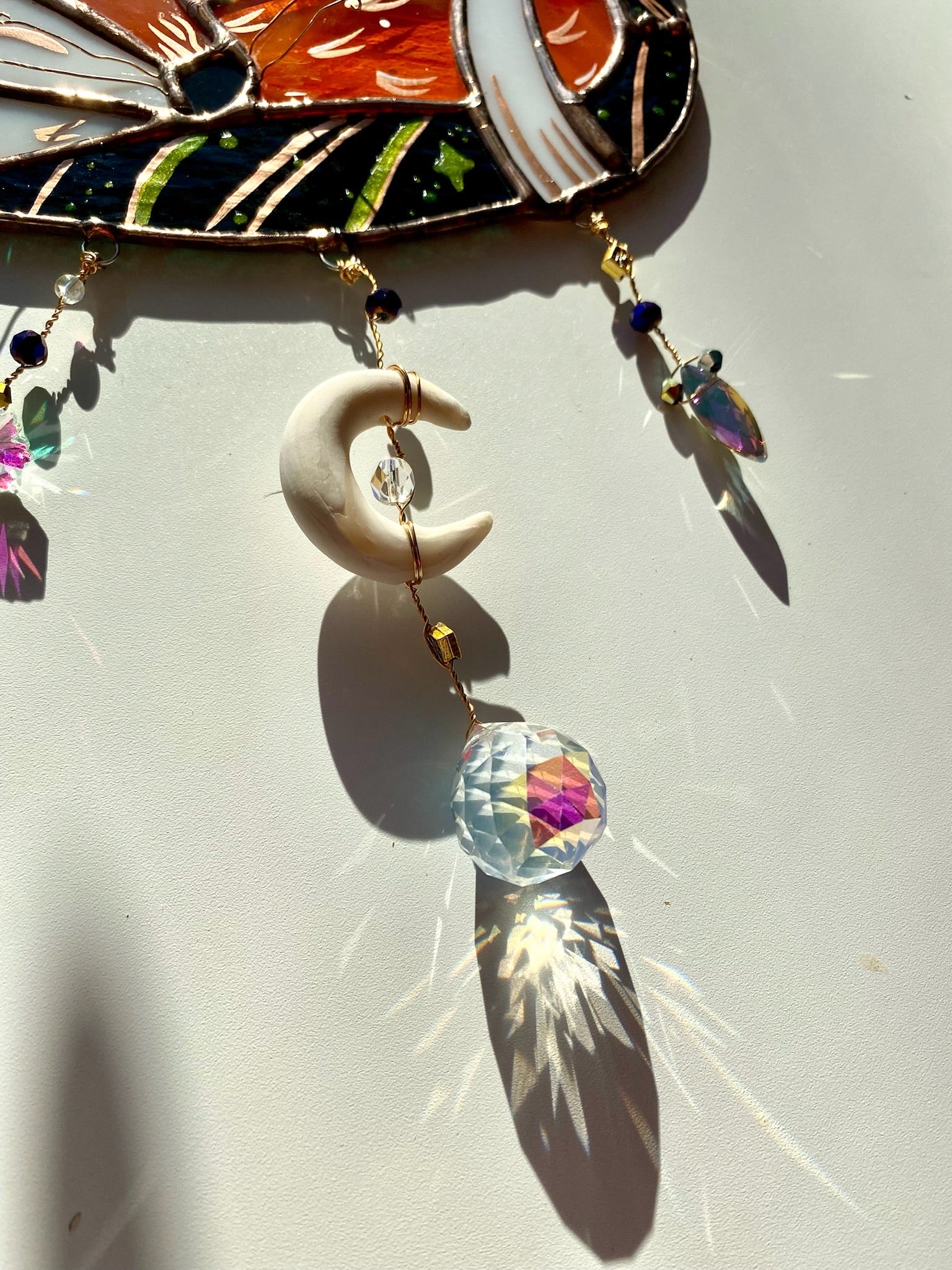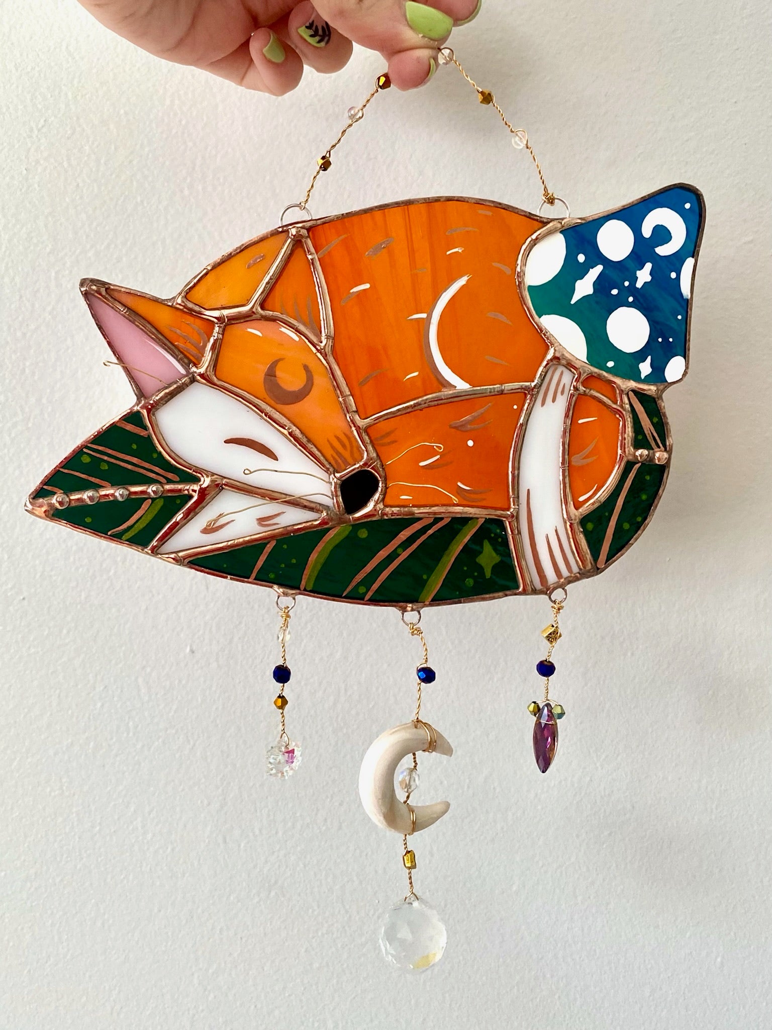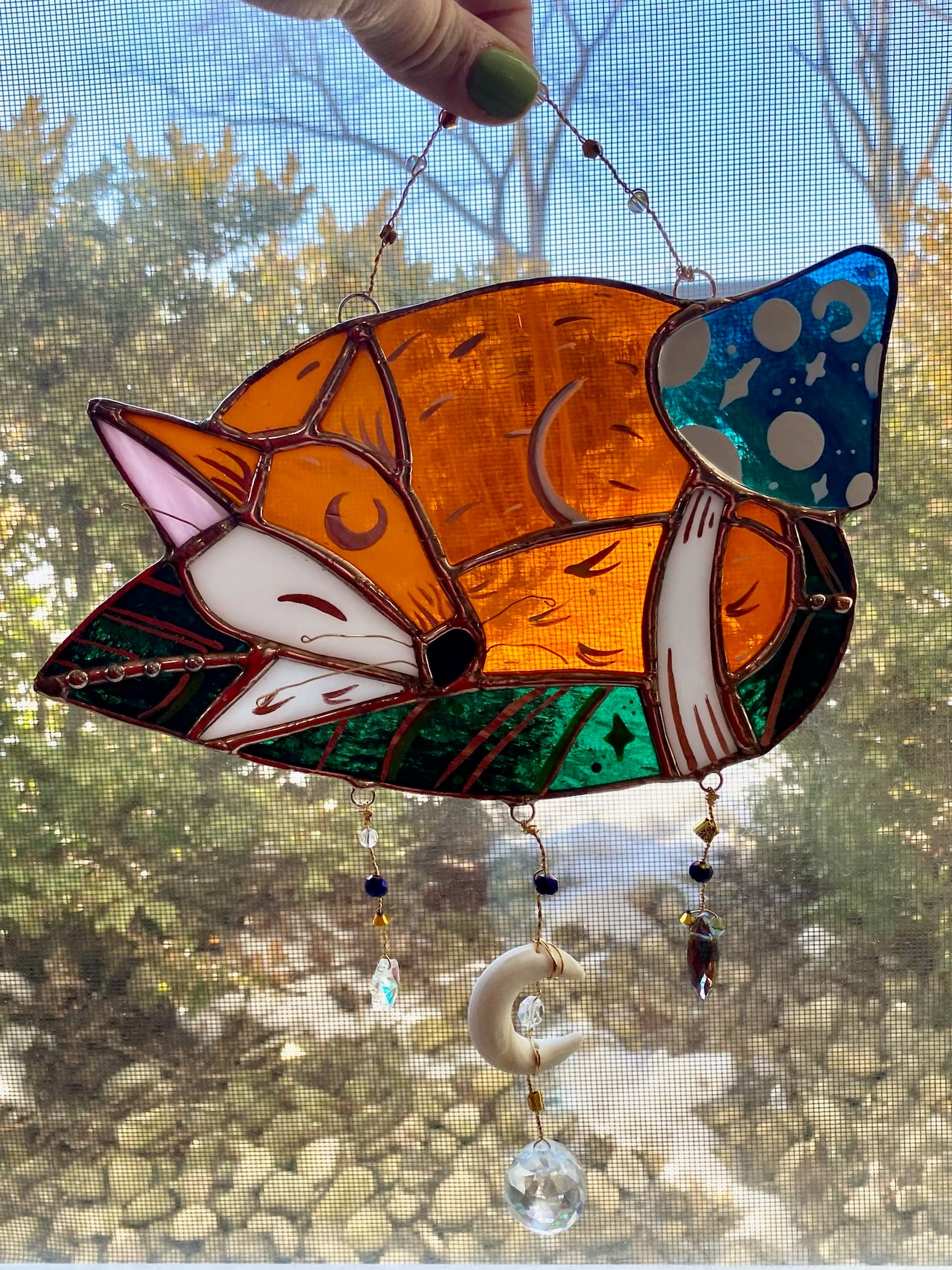 This stained glass piece is completely made by hand. The technique used for stained glass uses solder that contains lead. Although it is not harmful to handle and poses minimal risk- it is best to wash your hands after handling. Keep out of reach of children and pets.
