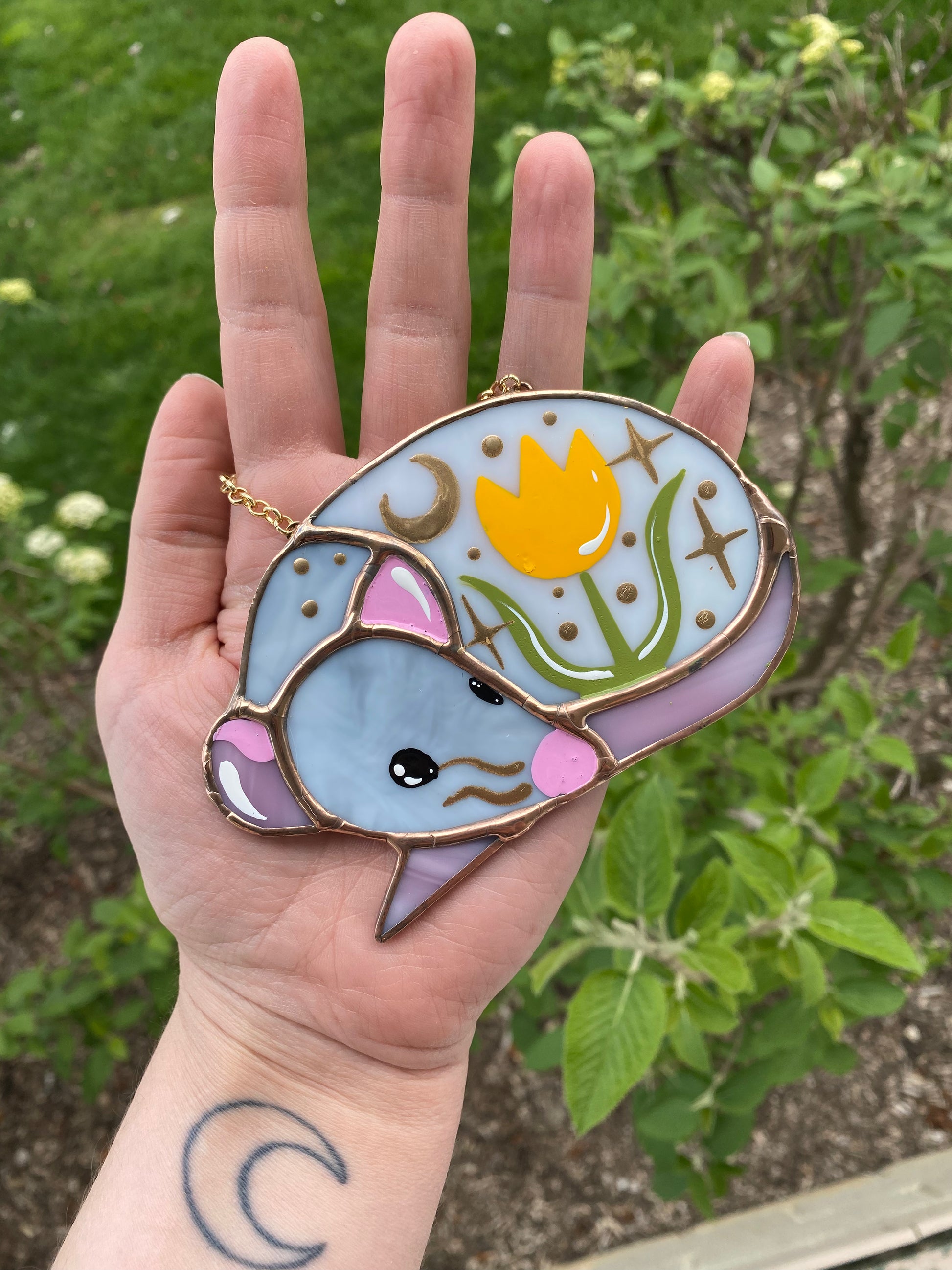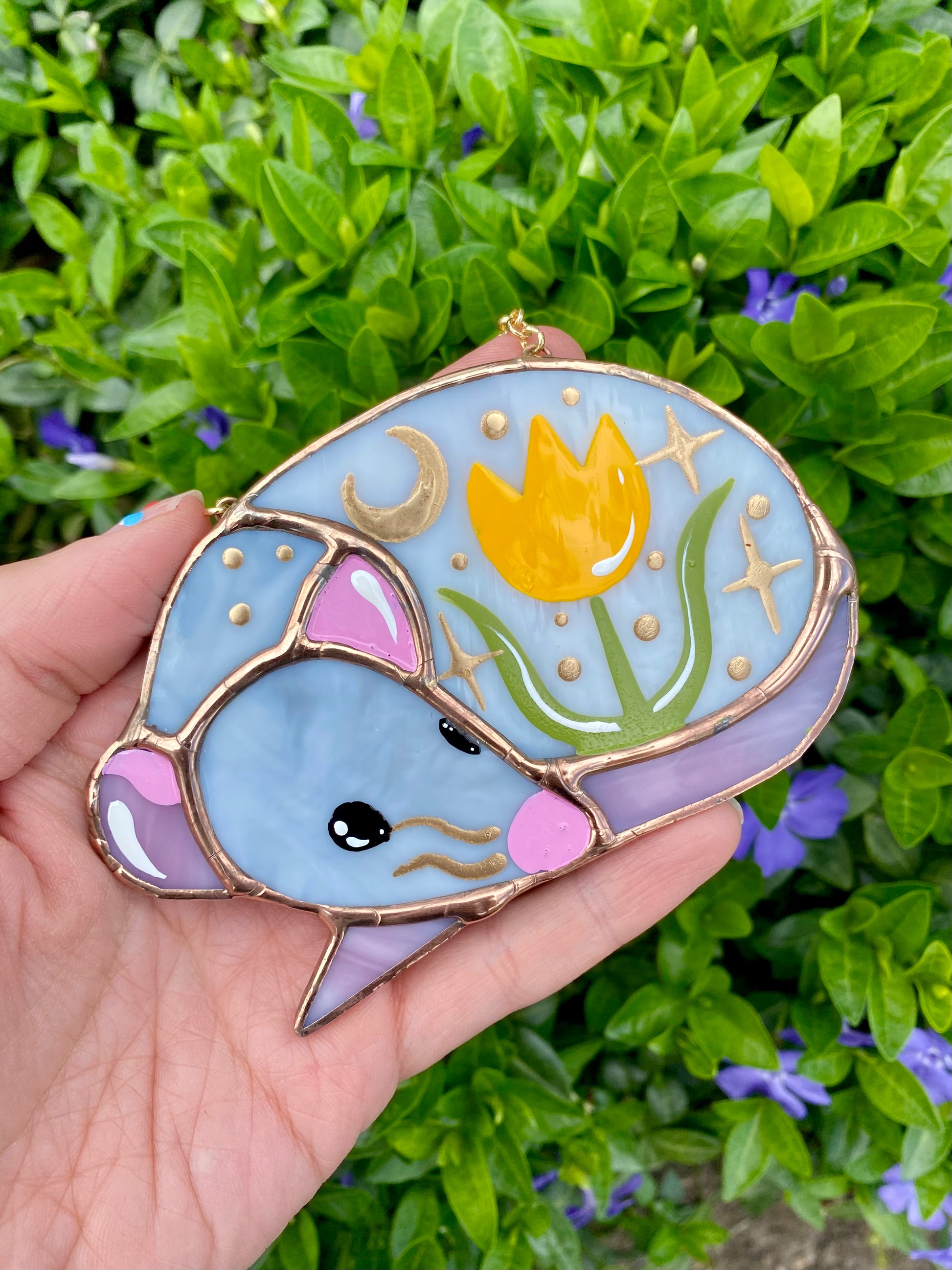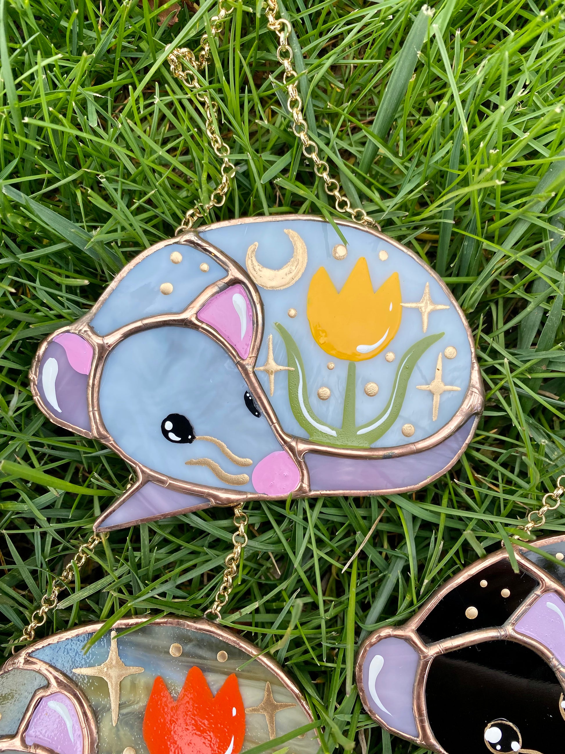Sleepy Grey/White Tulip Rat Mini Stained Glass Ornament