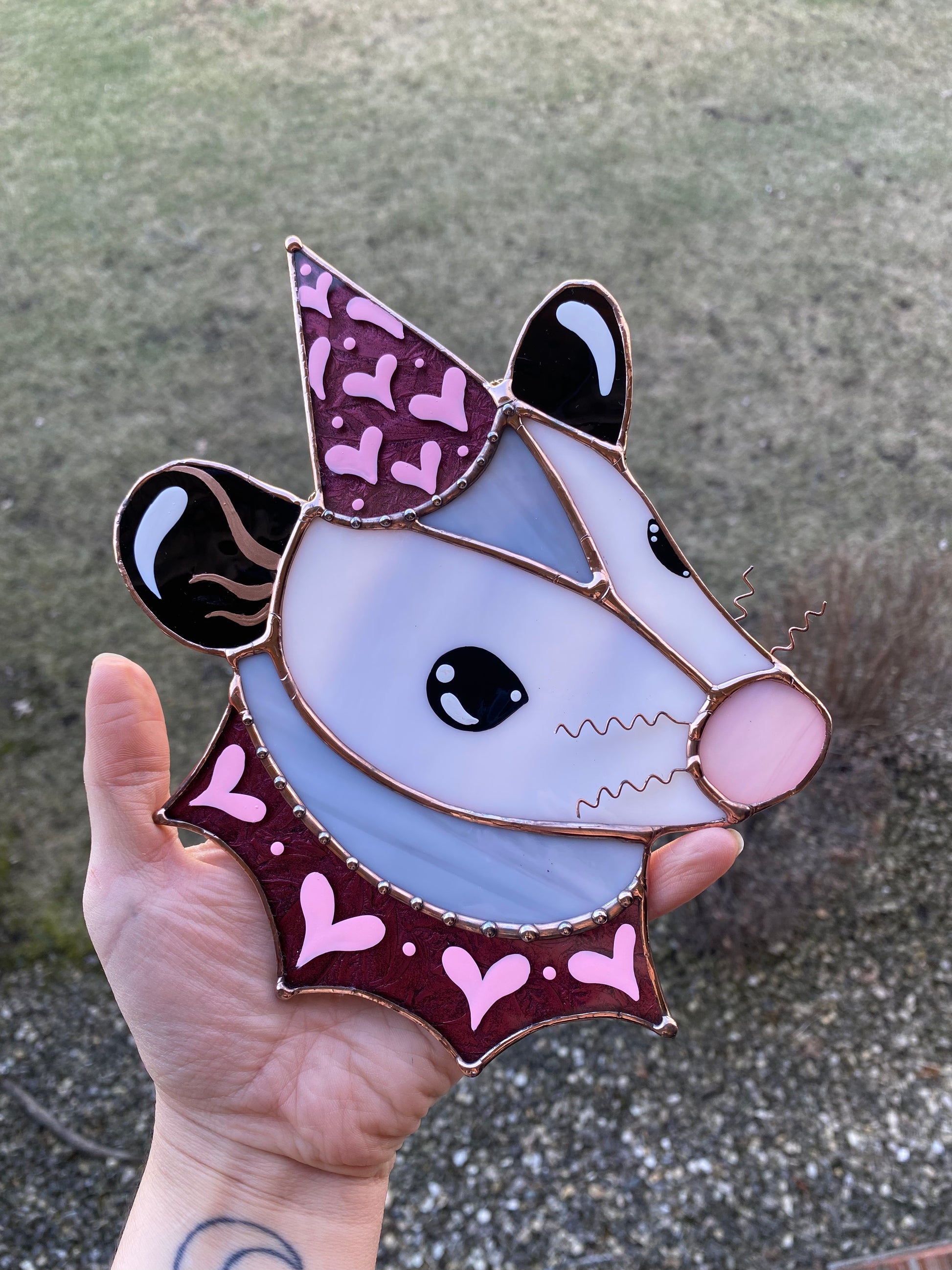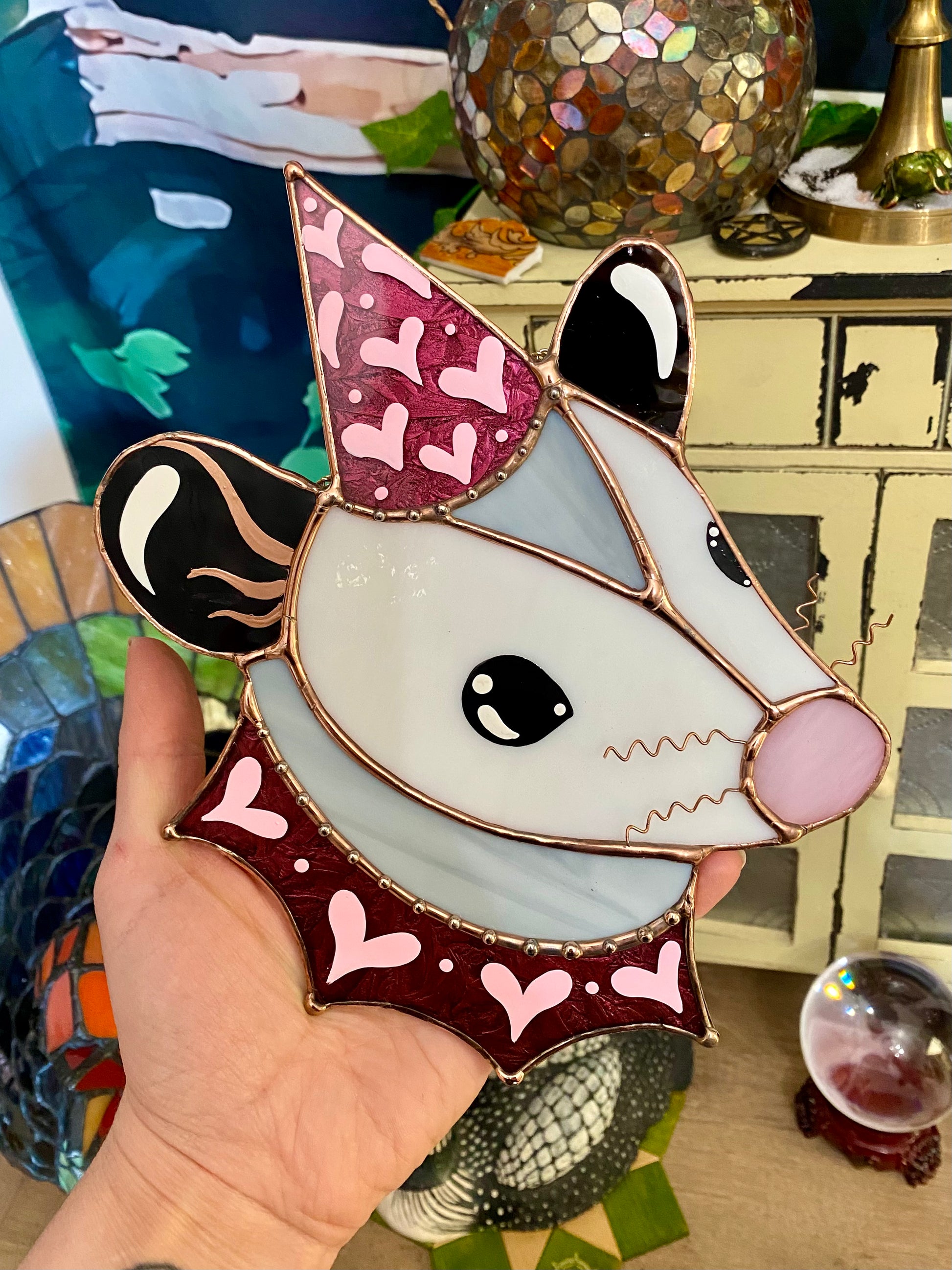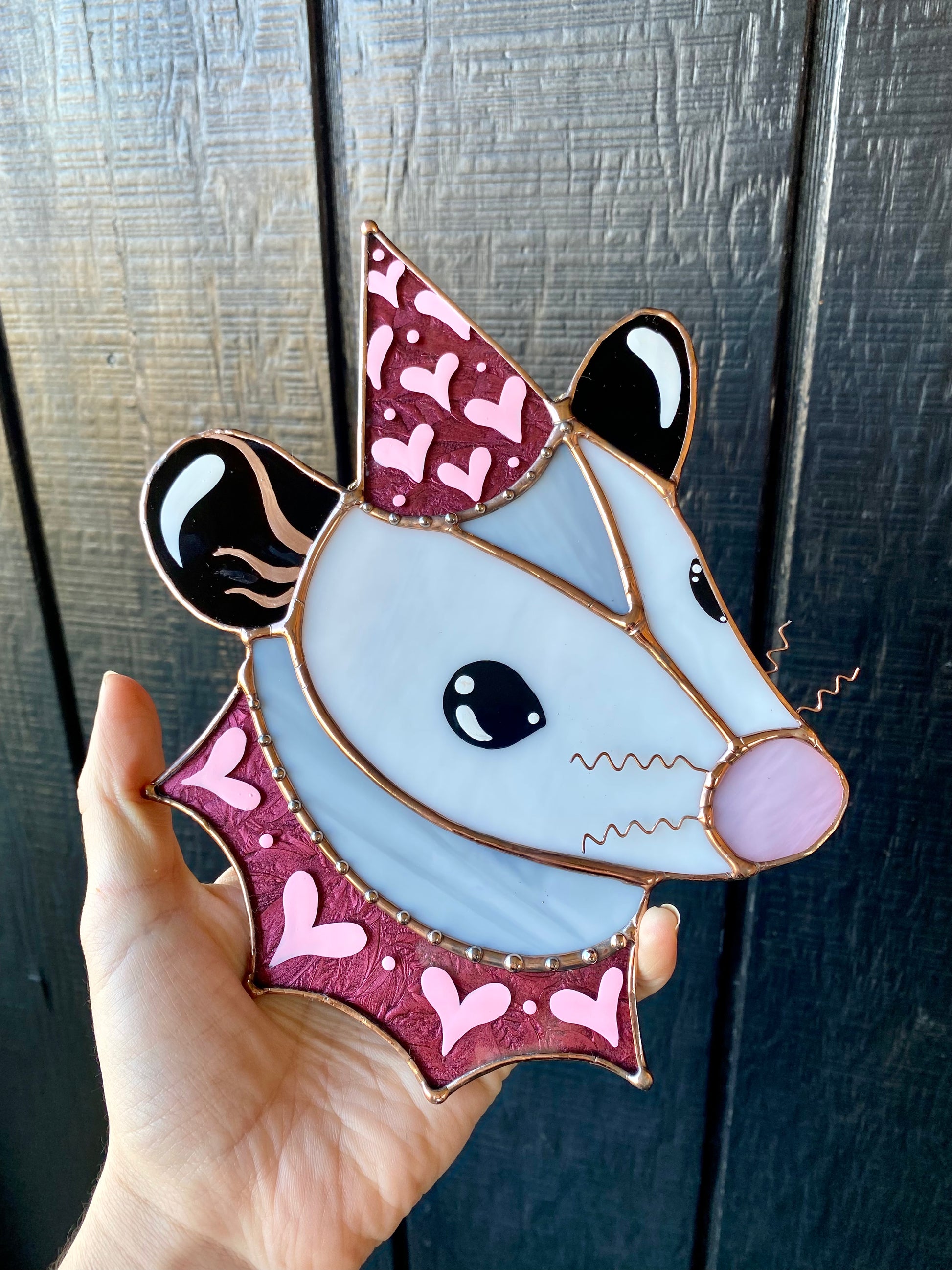 Sparkly Pink Lovely Opossum Stained Glass Suncatcher