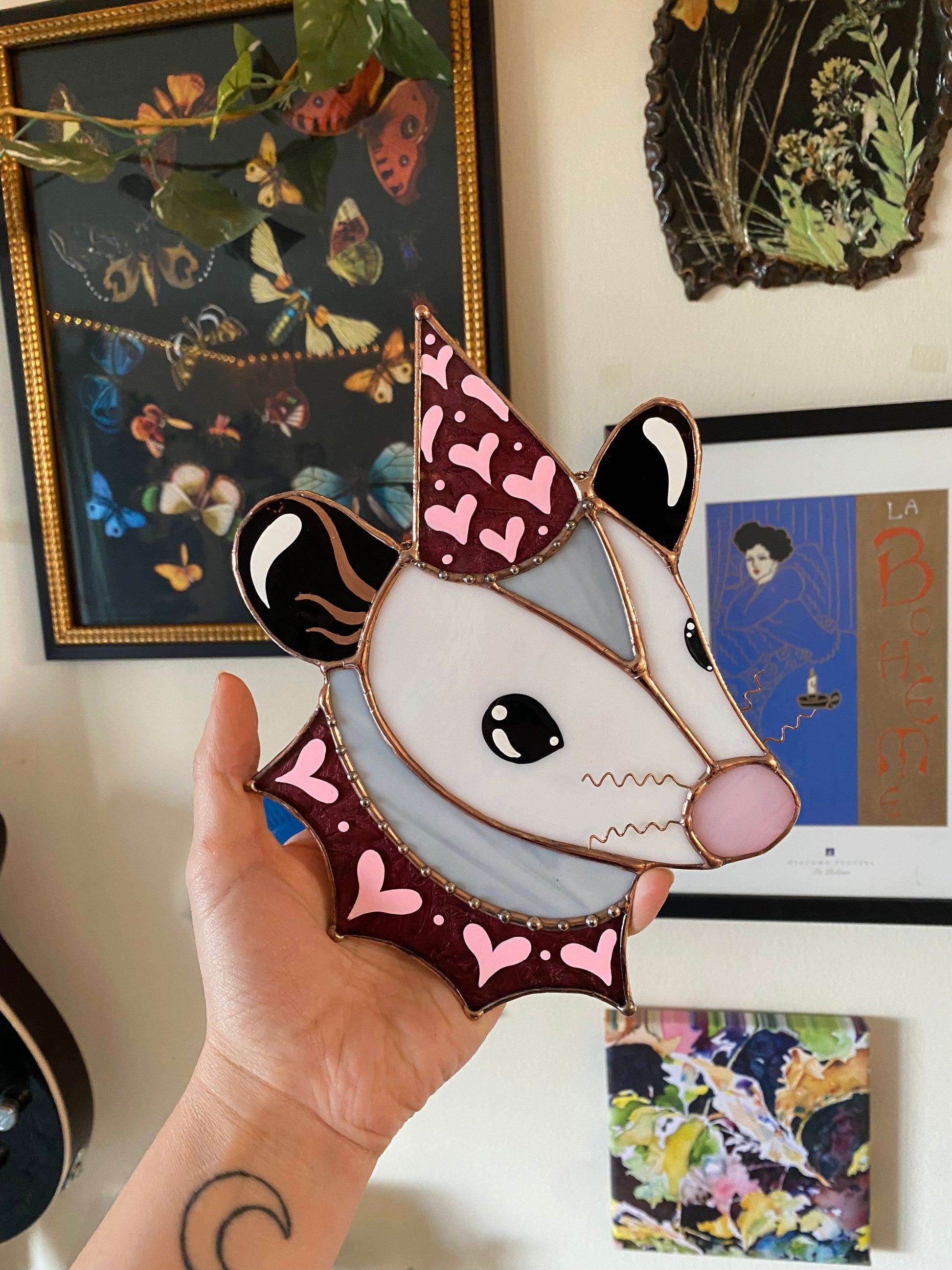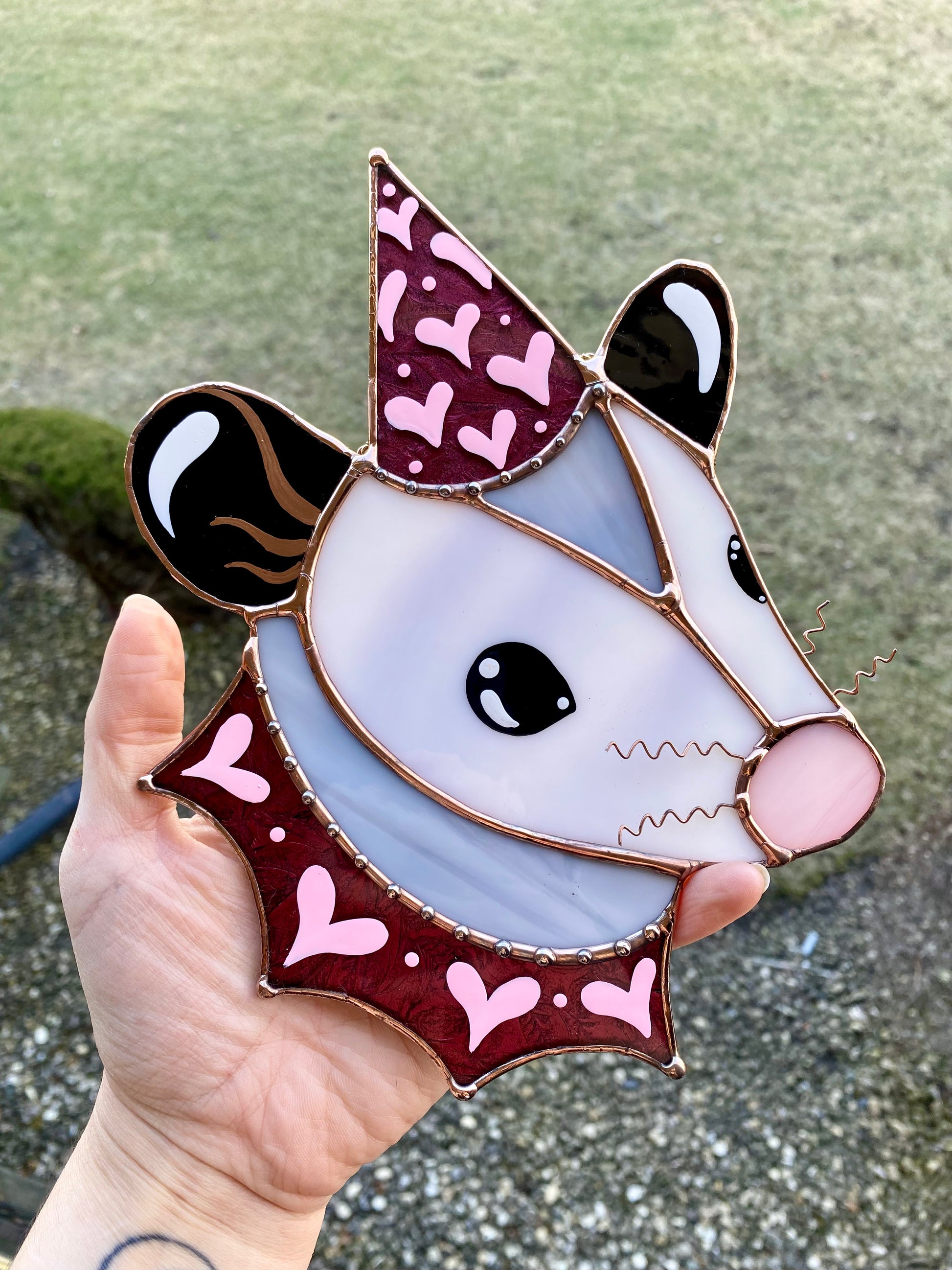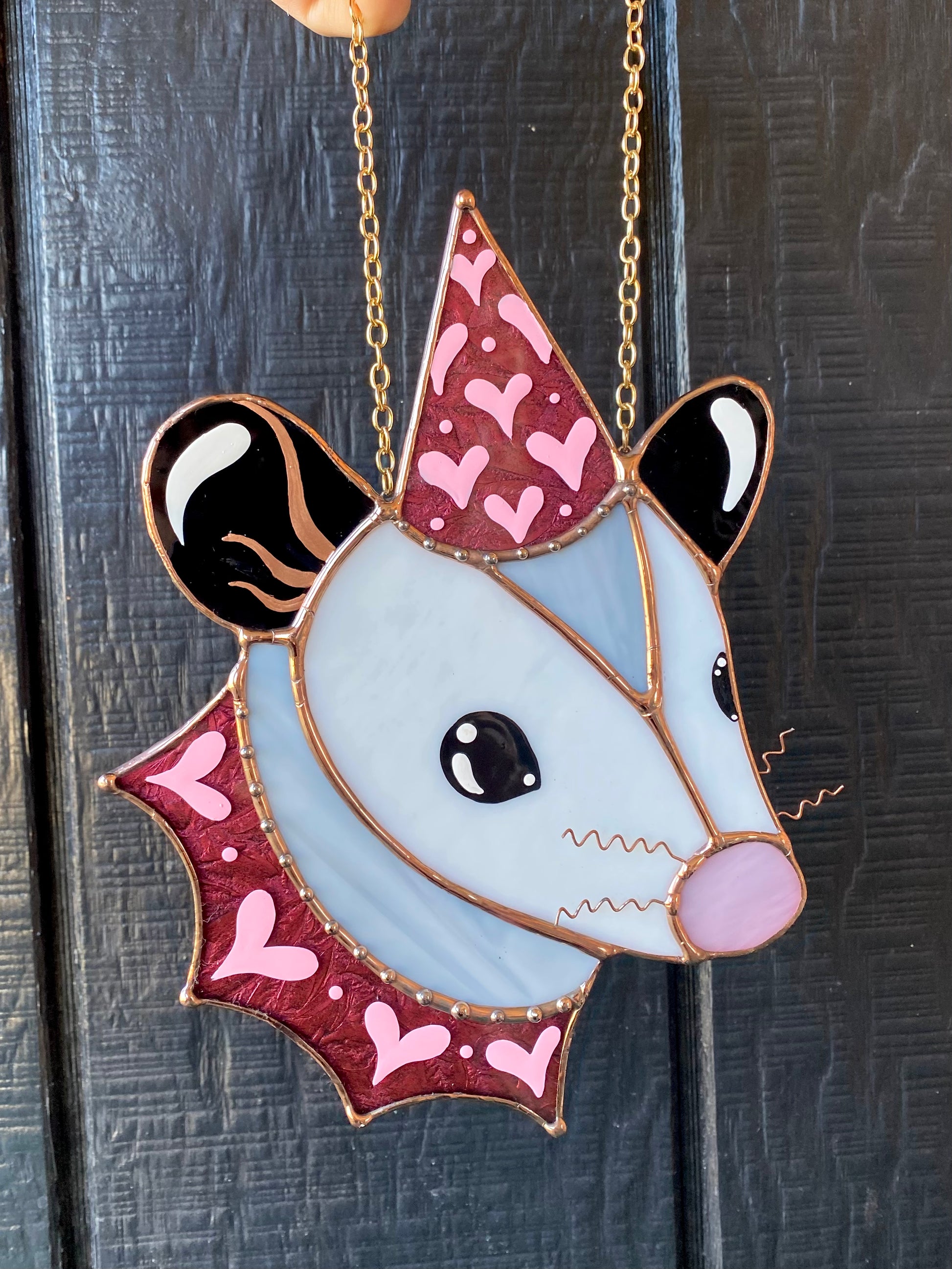 Sparkly Pink Lovely Opossum Stained Glass Suncatcher