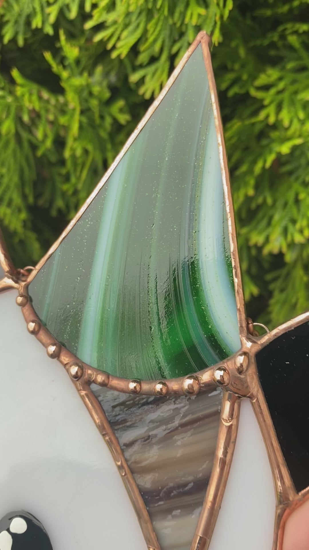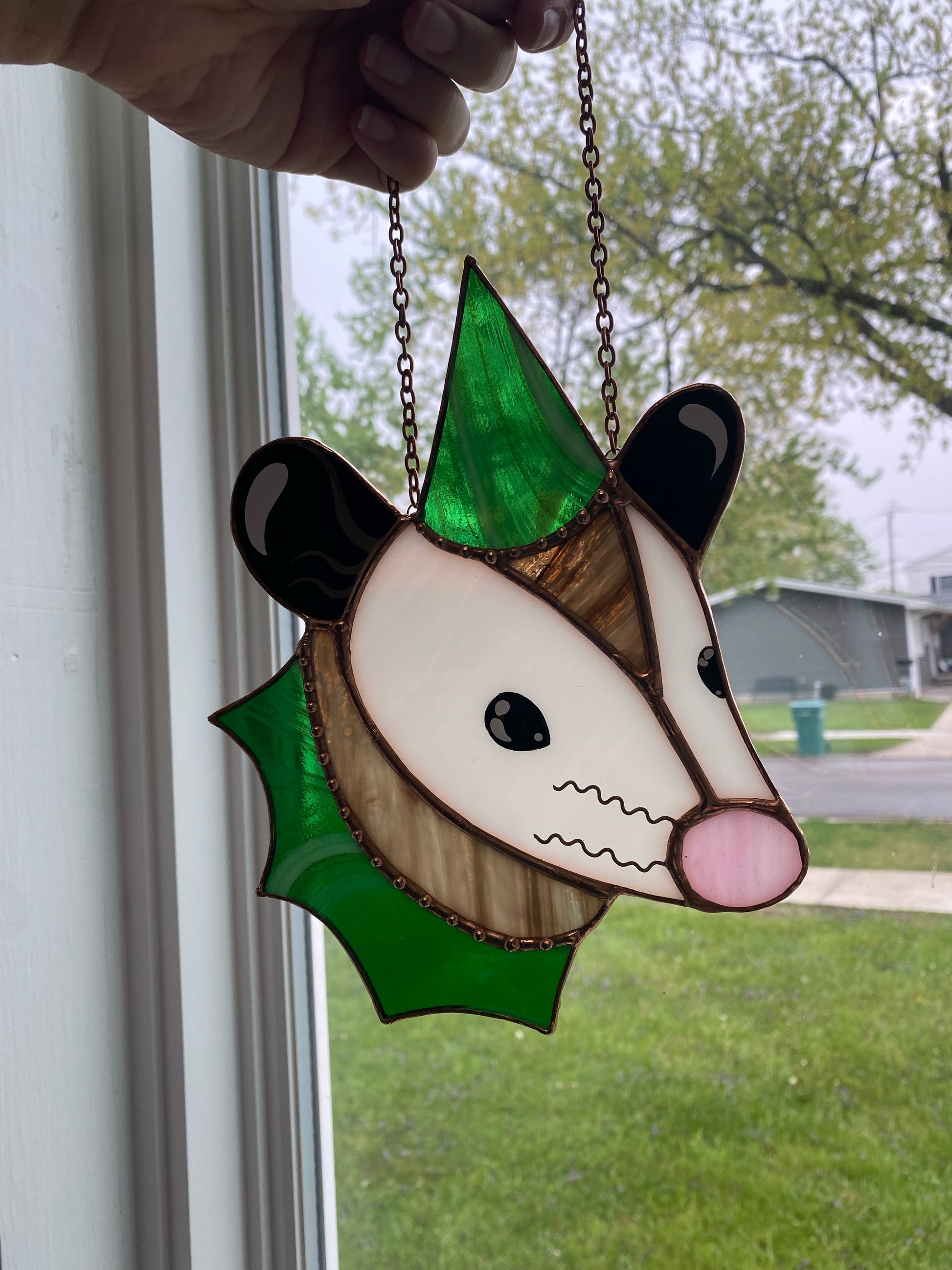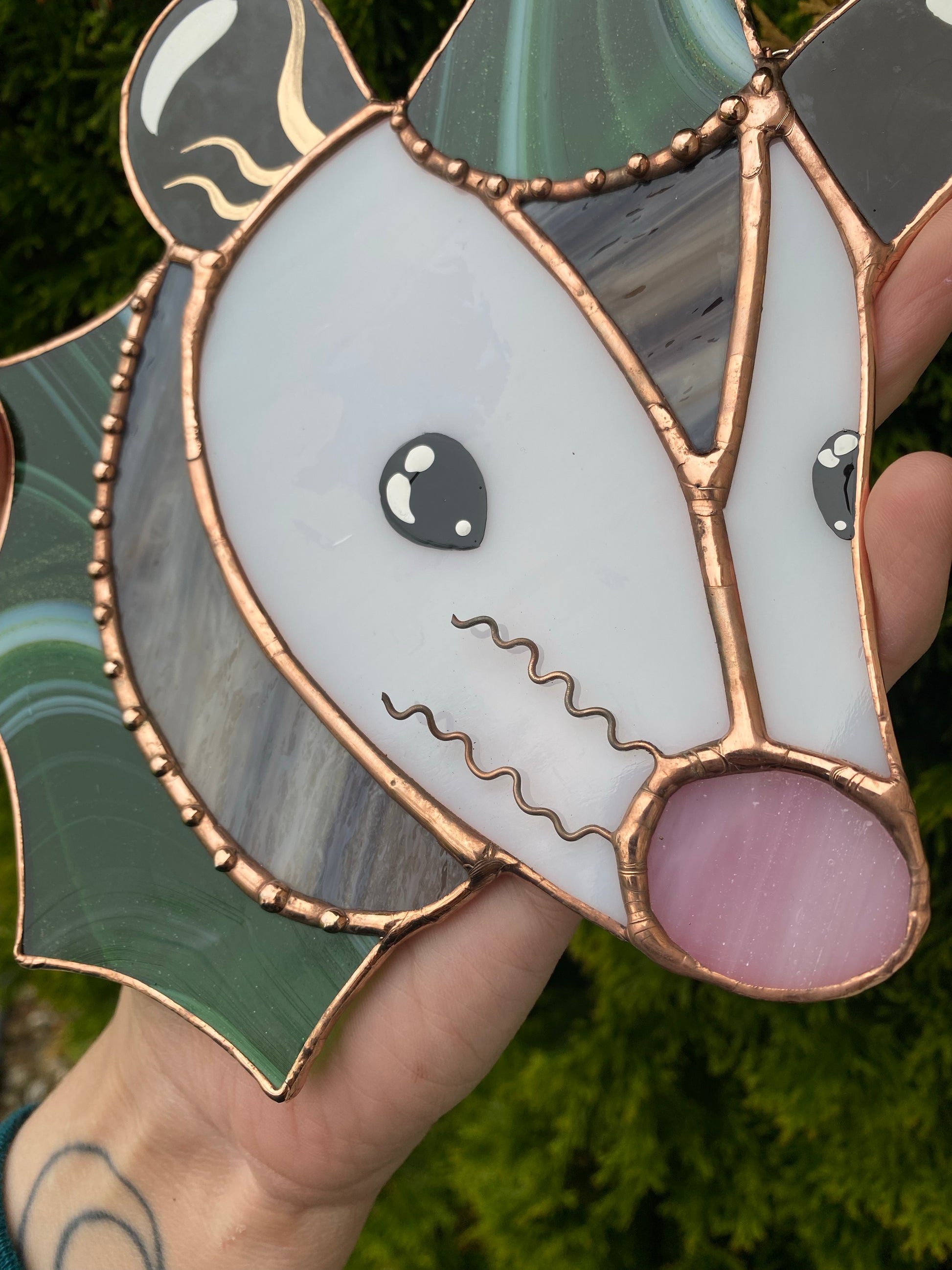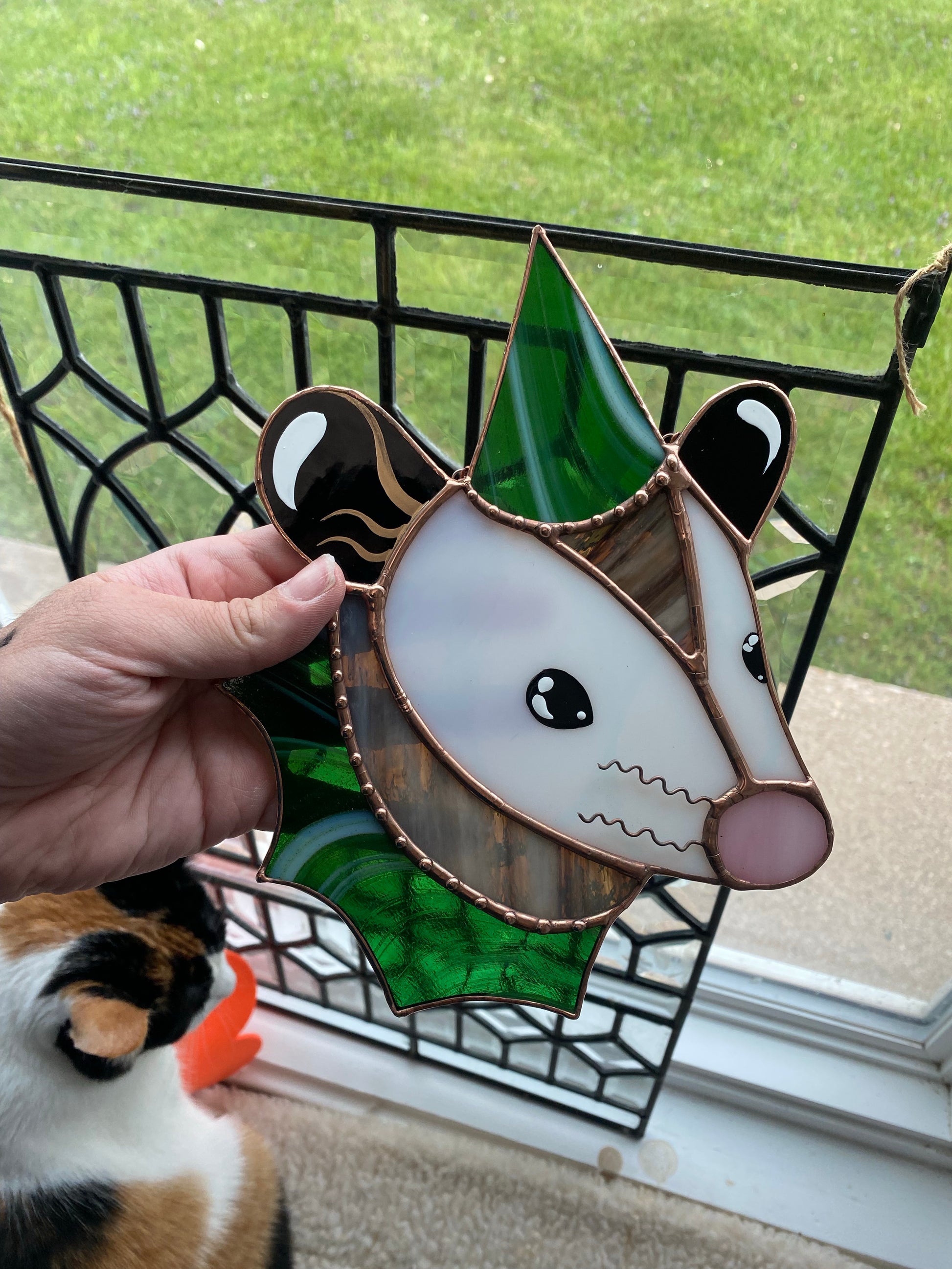 Swirly Green Aventurine Wizard Opossum Stained Glass Suncatcher