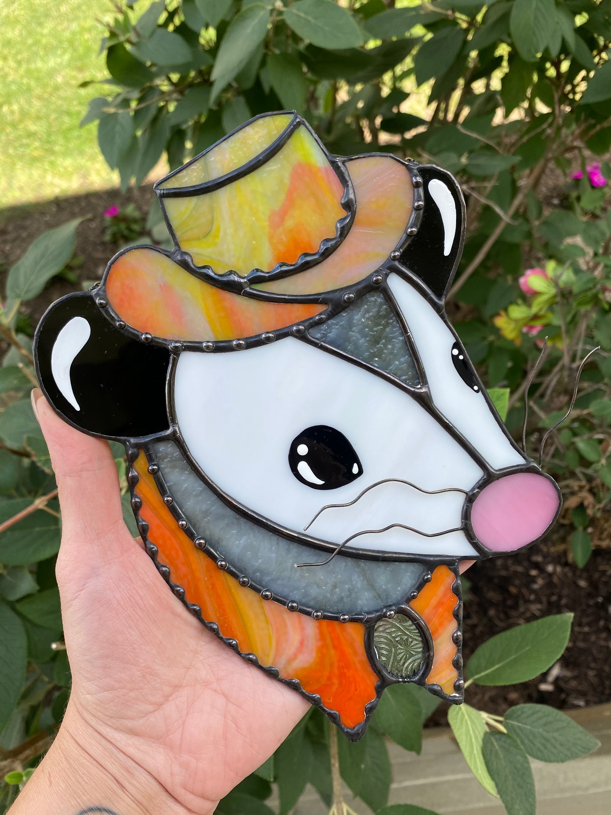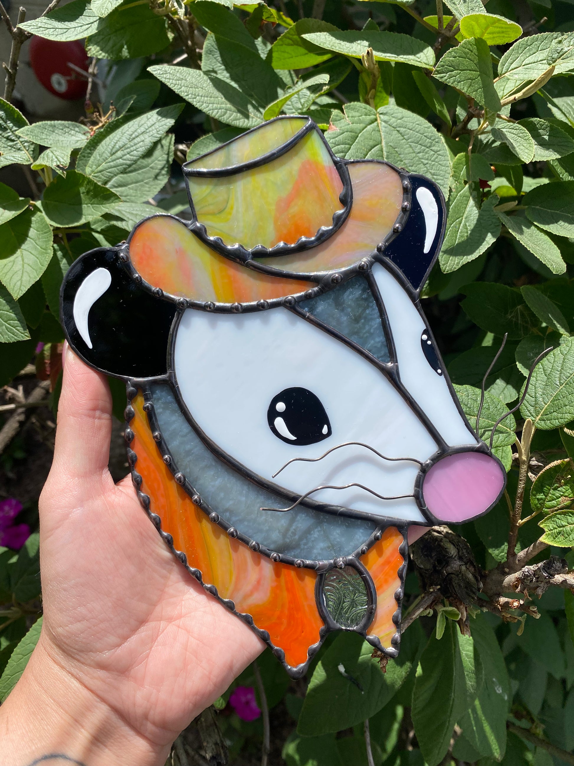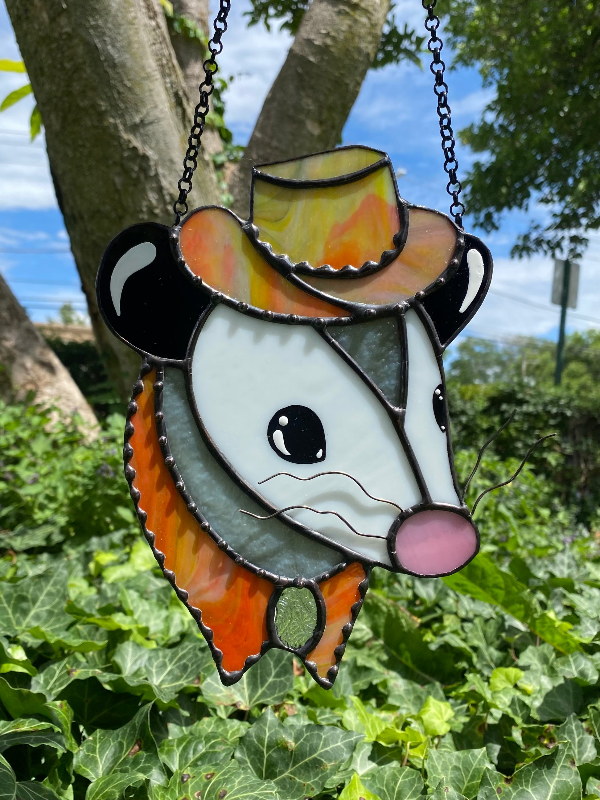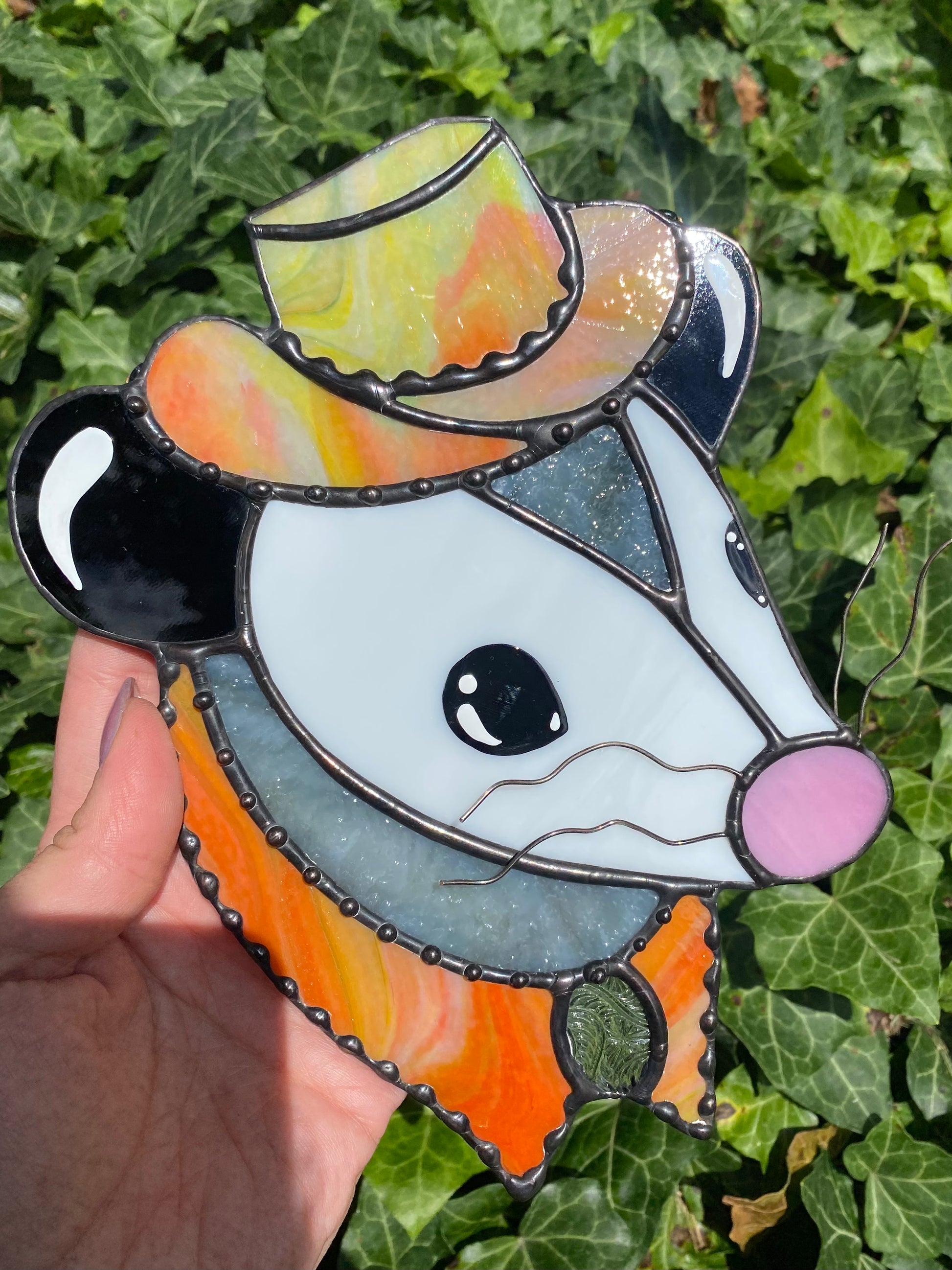 Tie Dye Cowboy Opossum Stained Glass Suncatcher