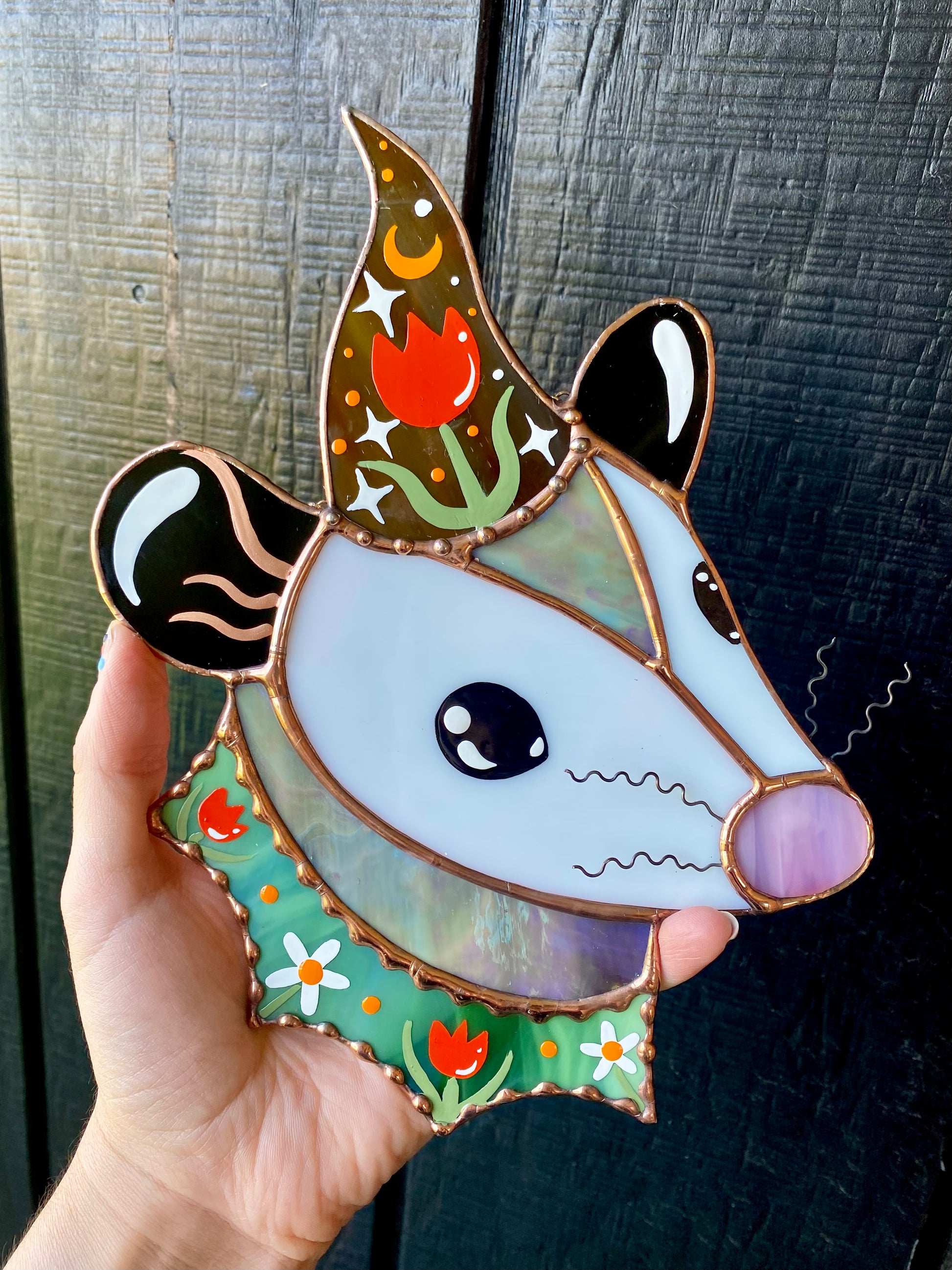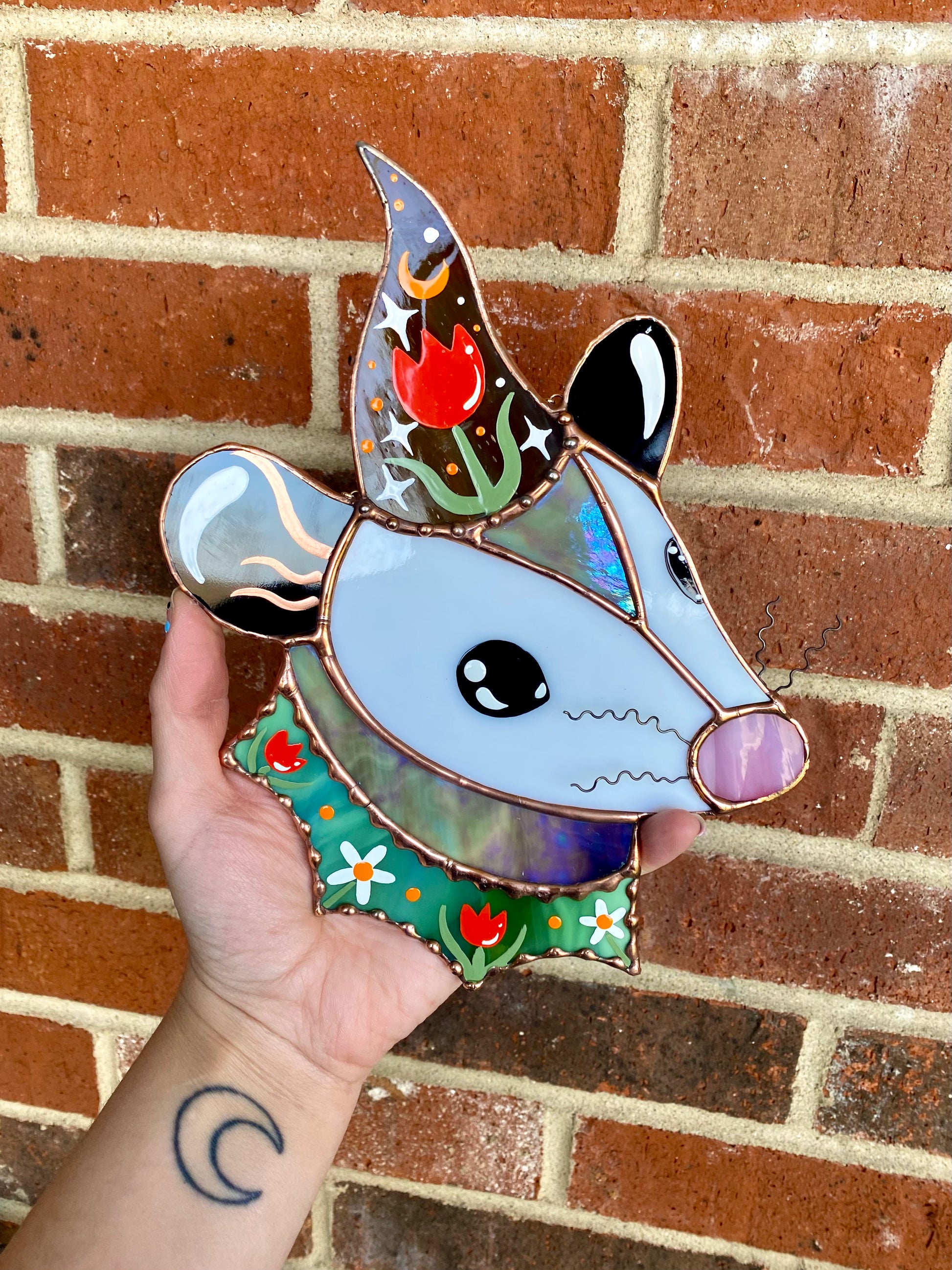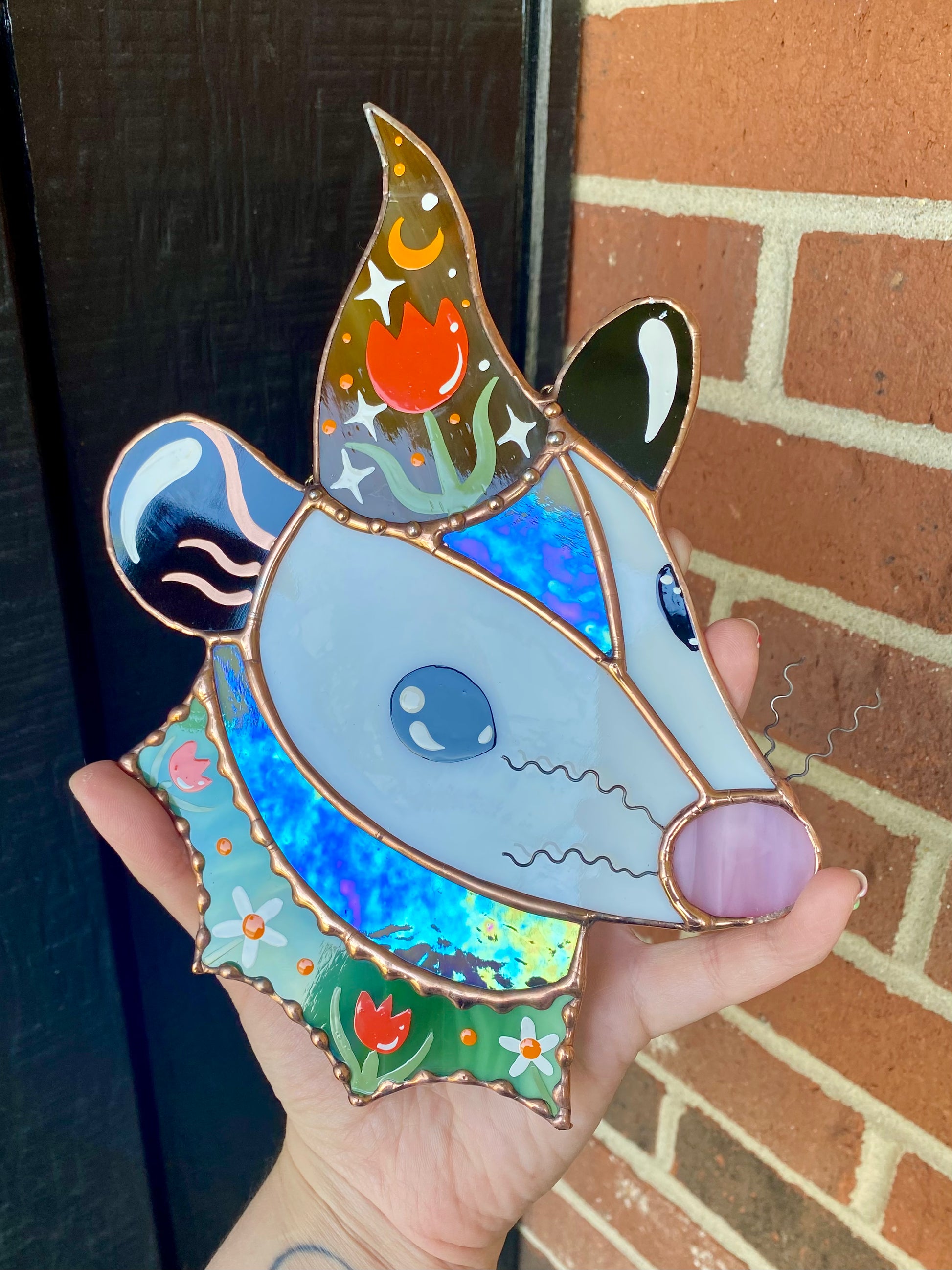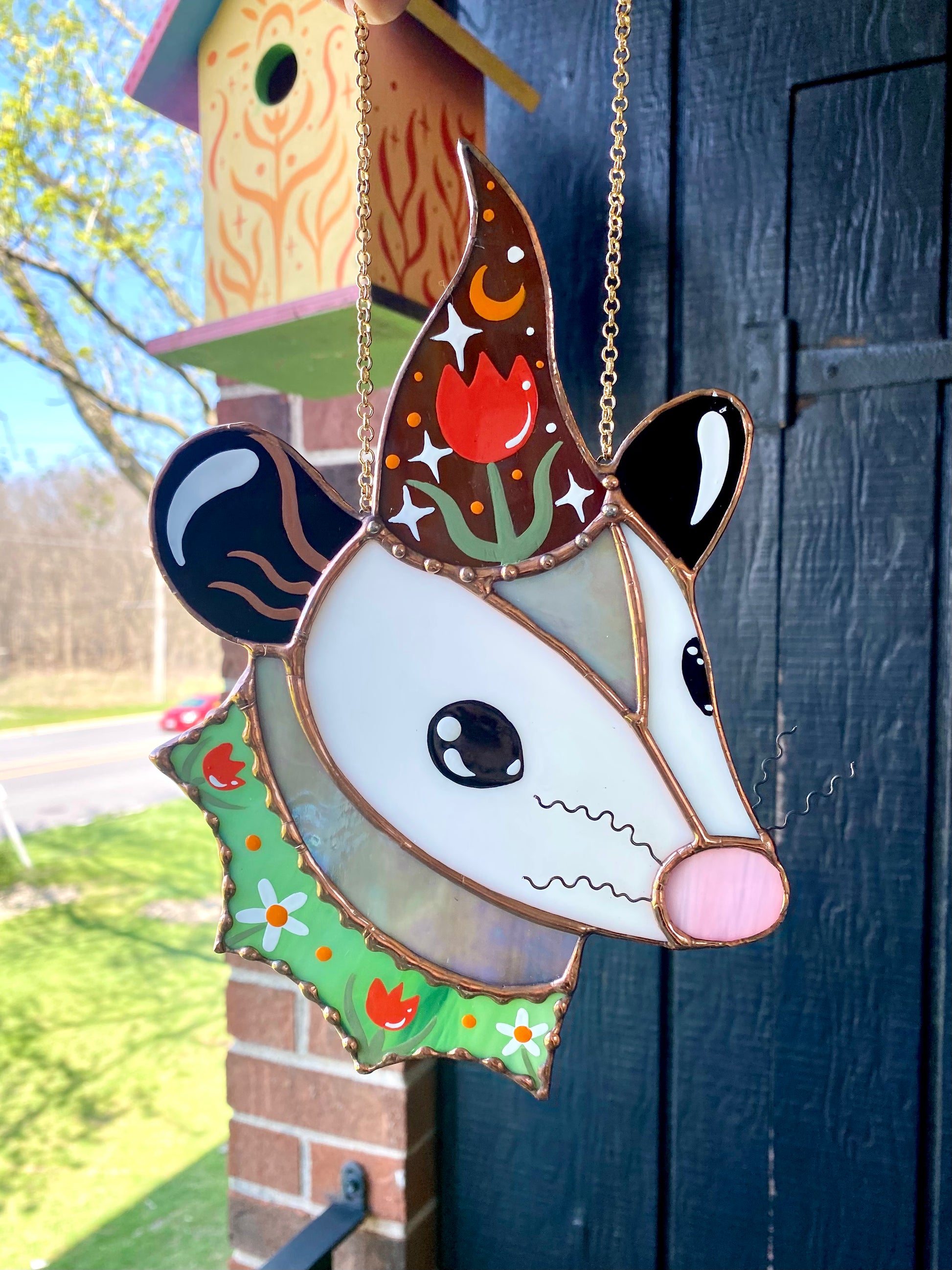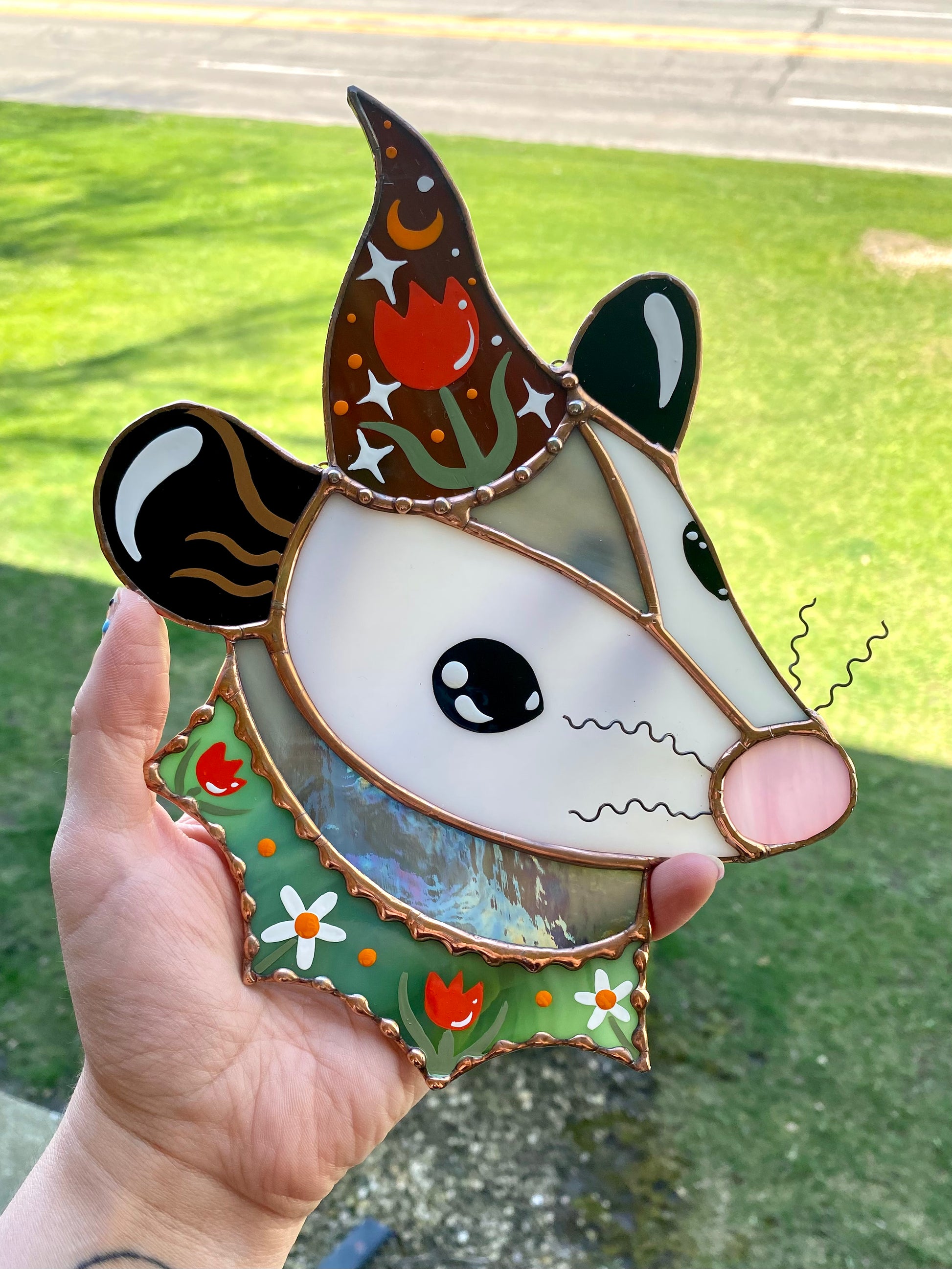 Tulip Wizard Opossum Stained Glass Suncatcher