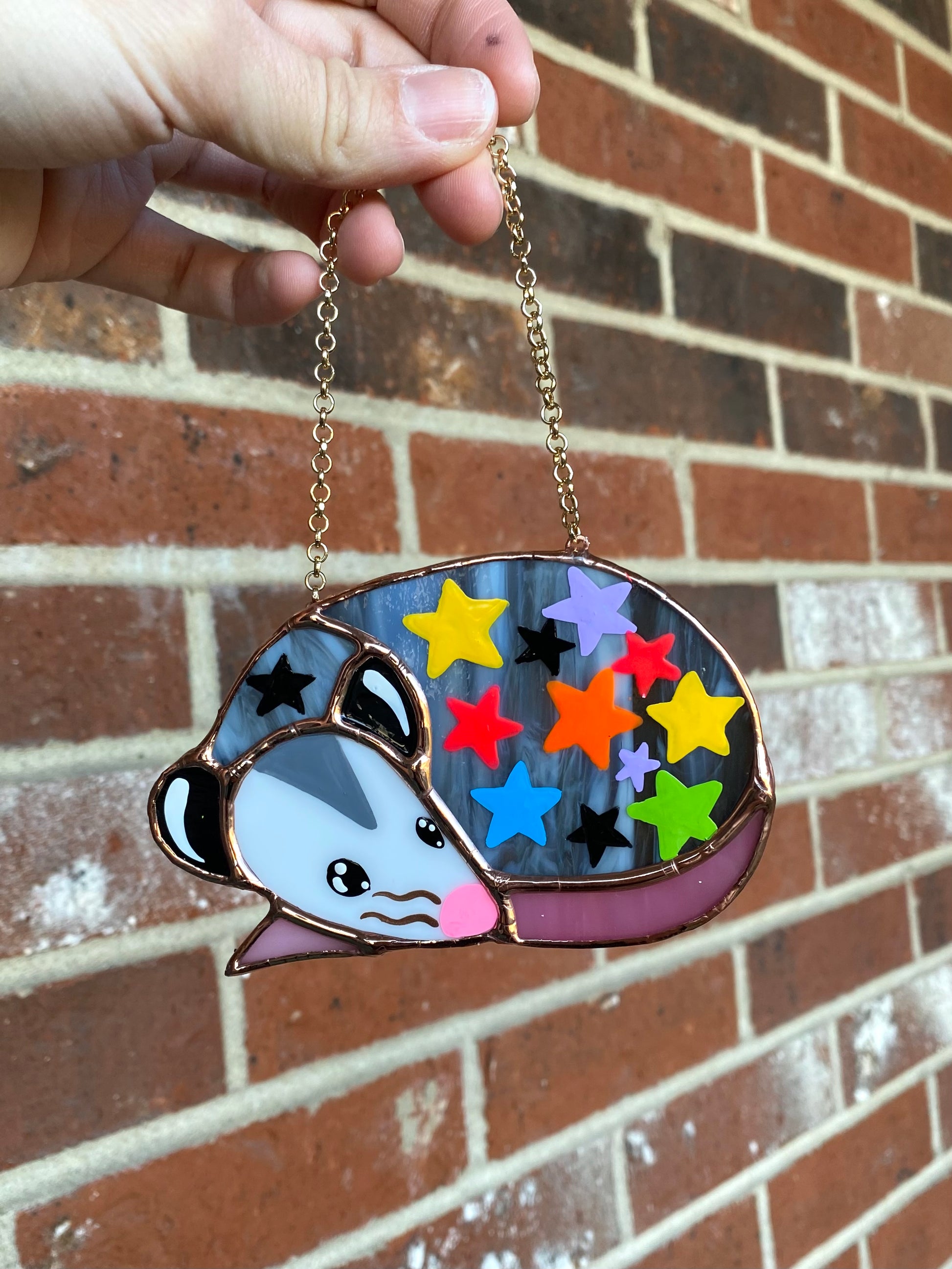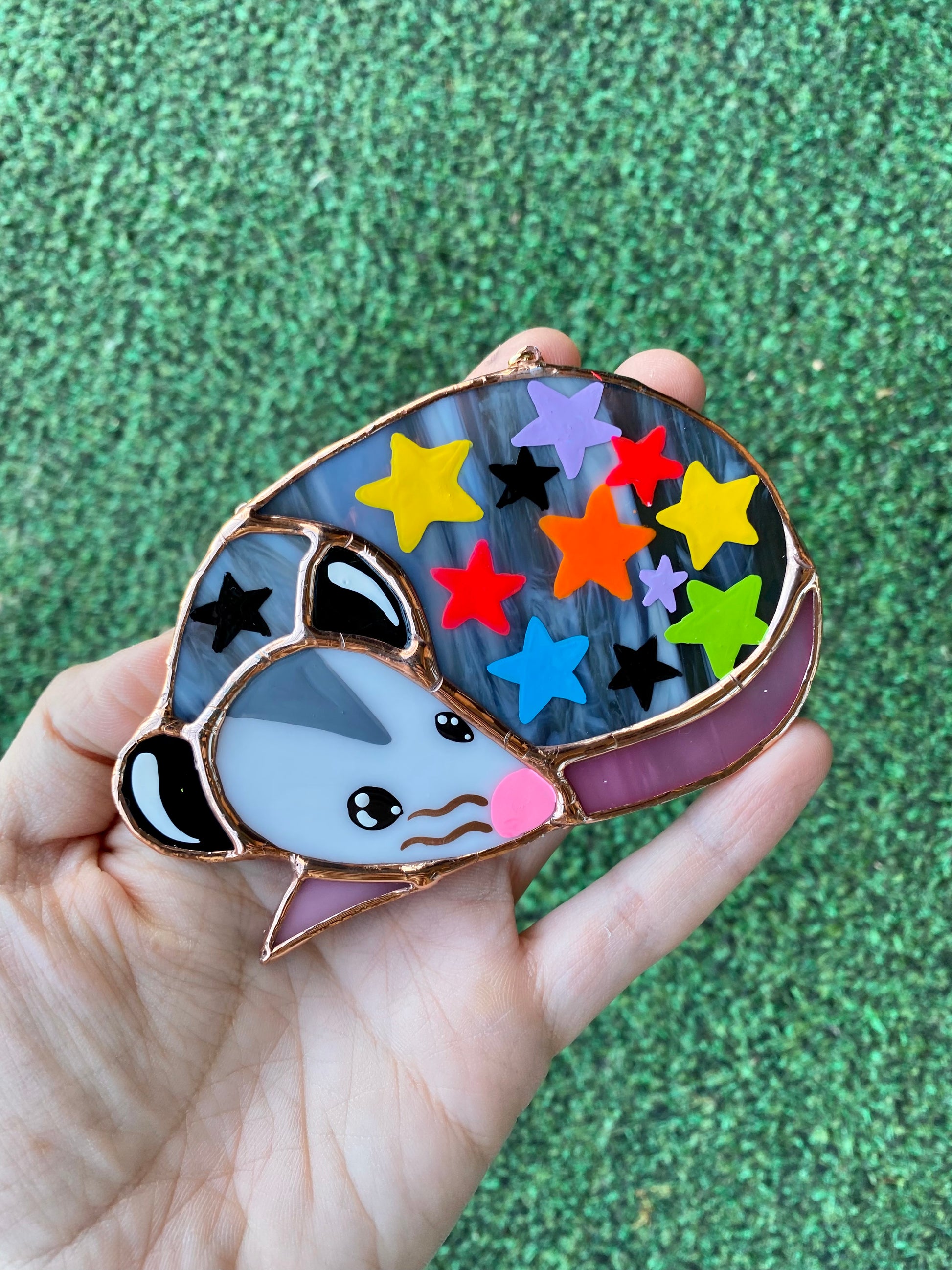 Mini Starry Opossum (ver1) Stained Glass Suncatcher Ornament
