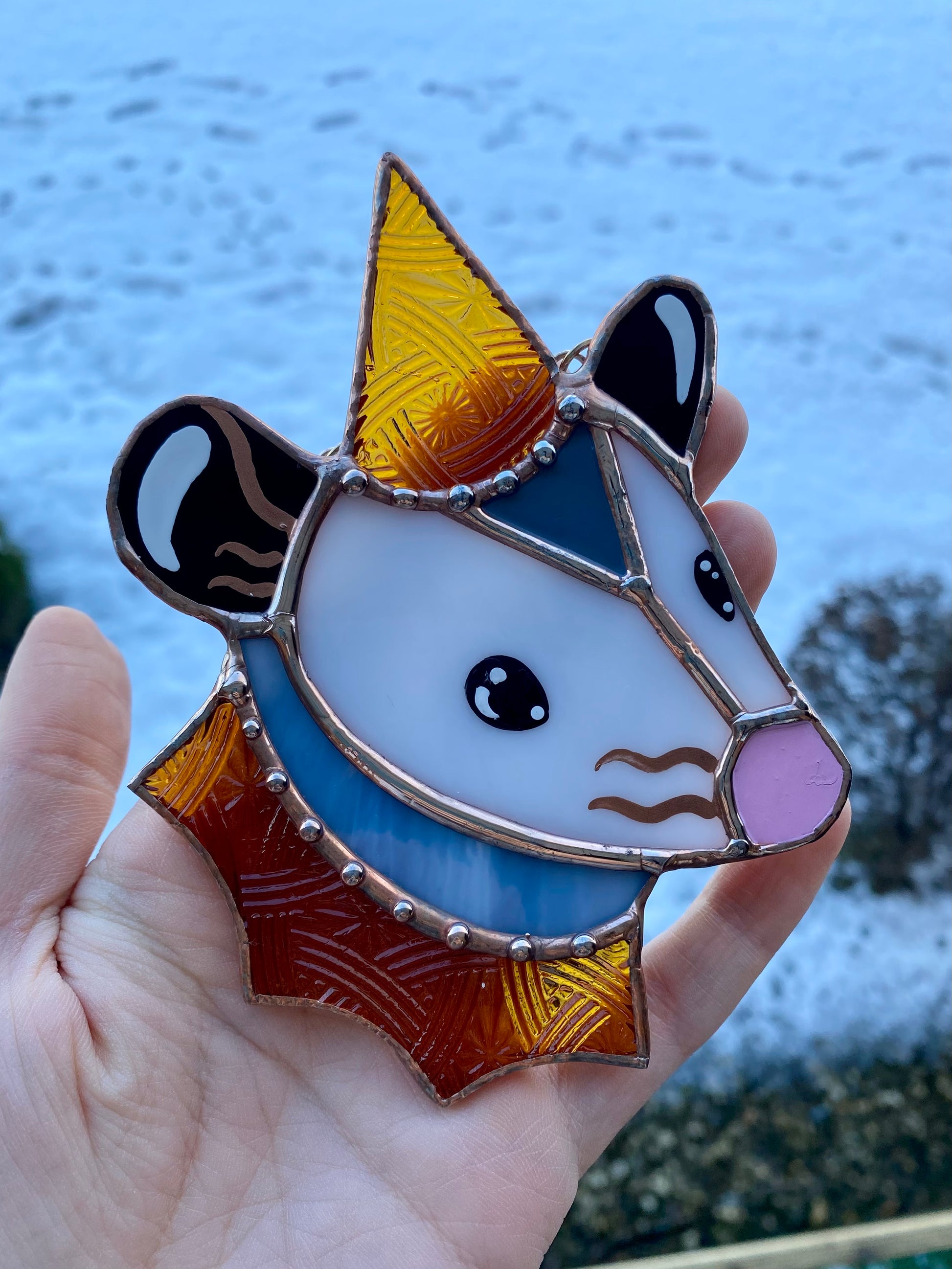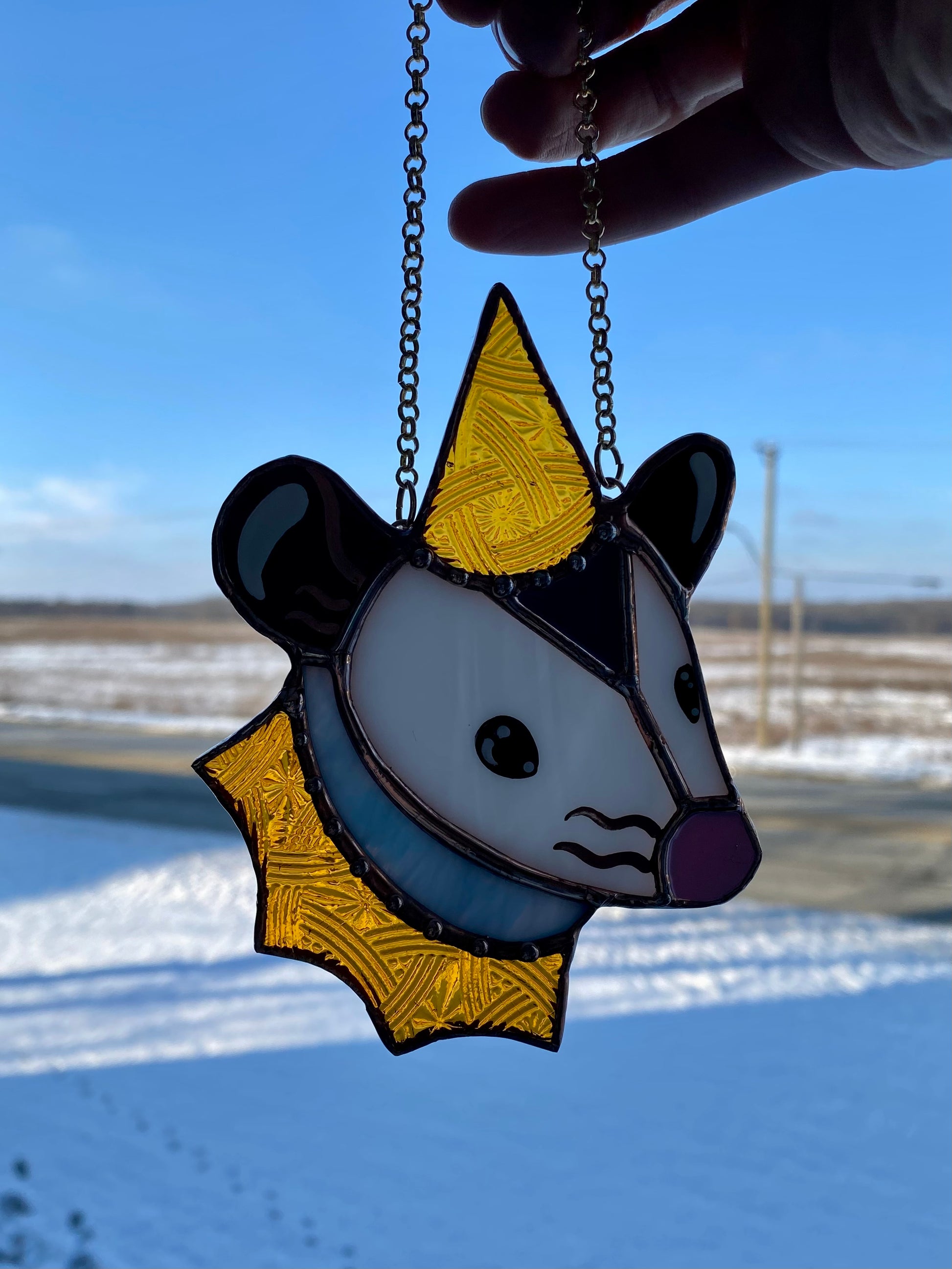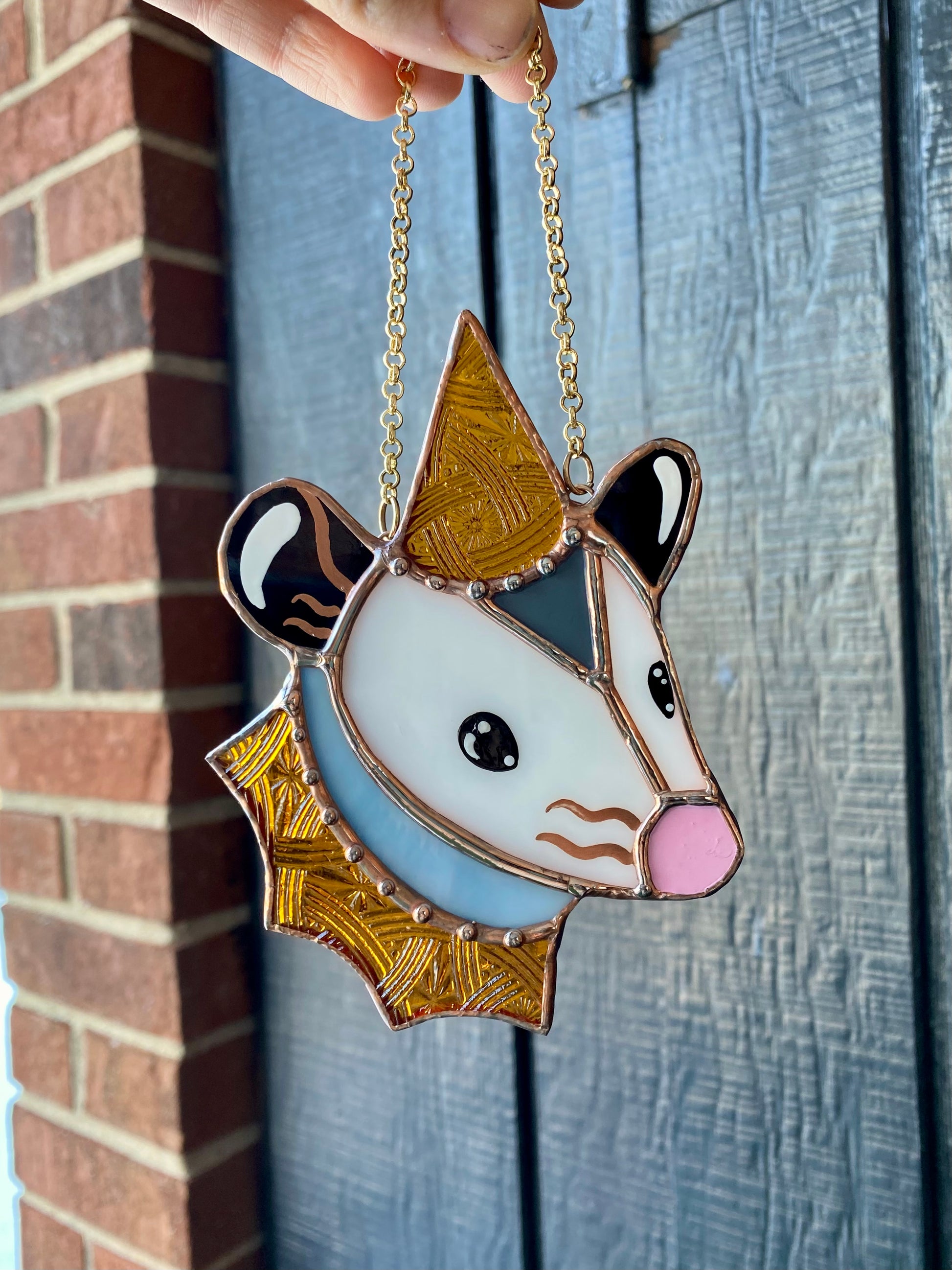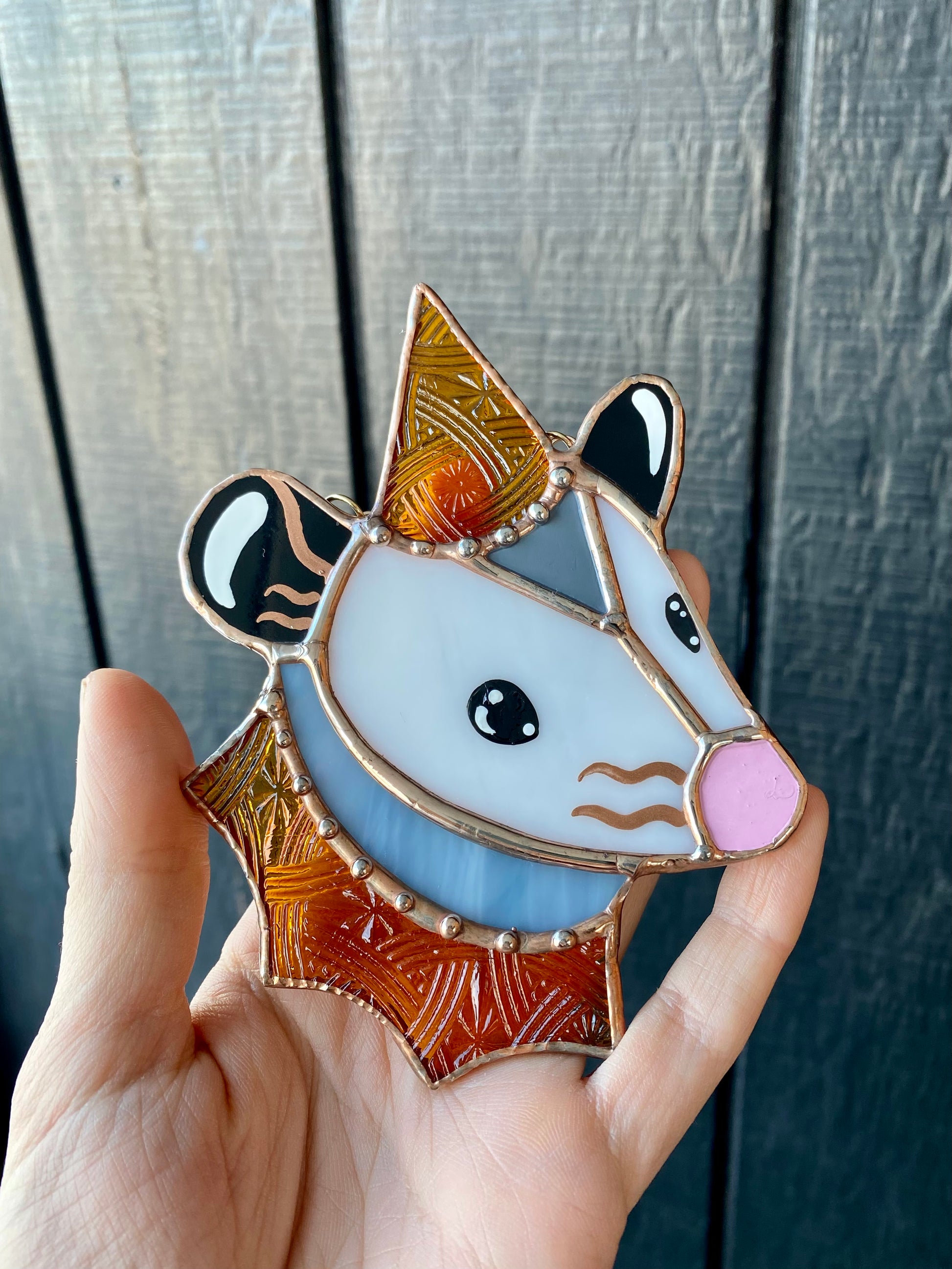 Mini Goldenrod Wizard Opossum Stained Glass Suncatcher