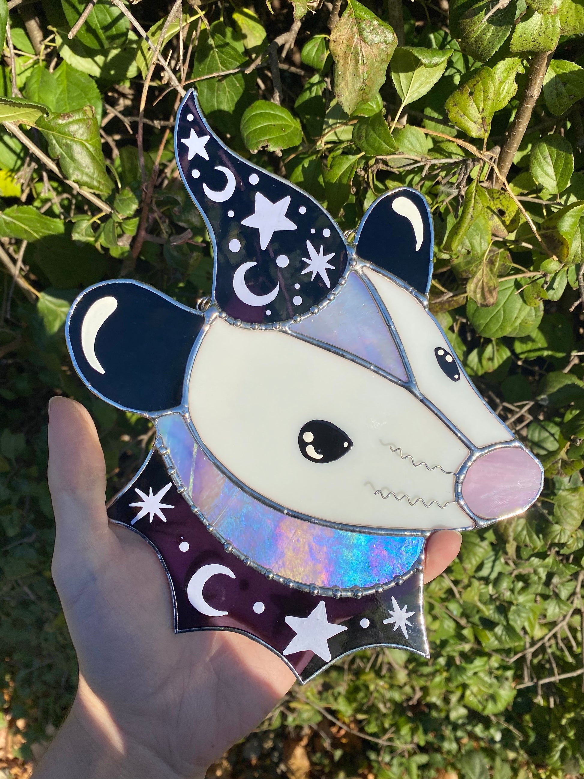 She measures 8.5” tall and 6” wide. I used iridescent pink for her nose and iridescent periwinkle! Has a silver chain and screw-in hook to hang him up wherever you please!