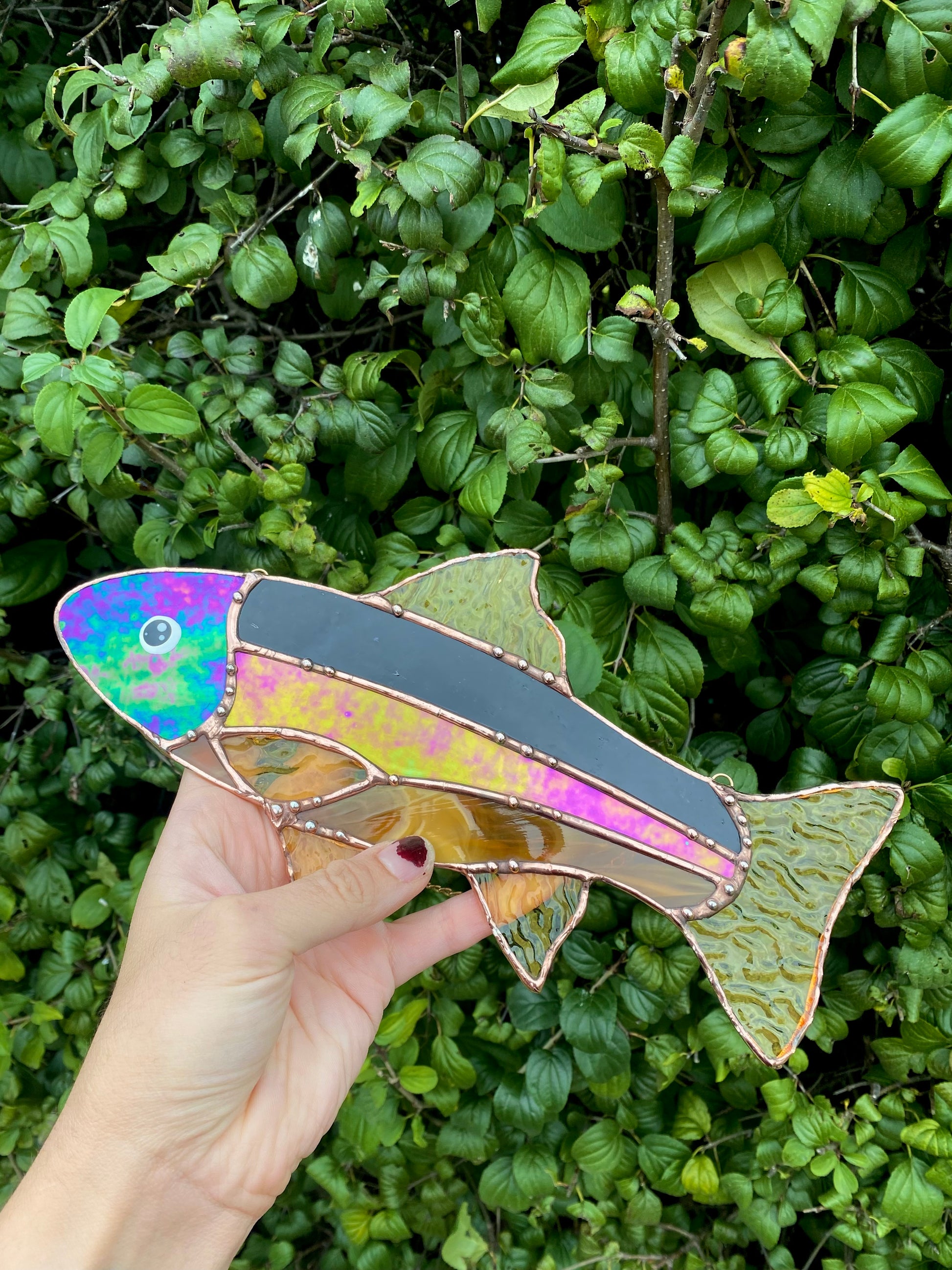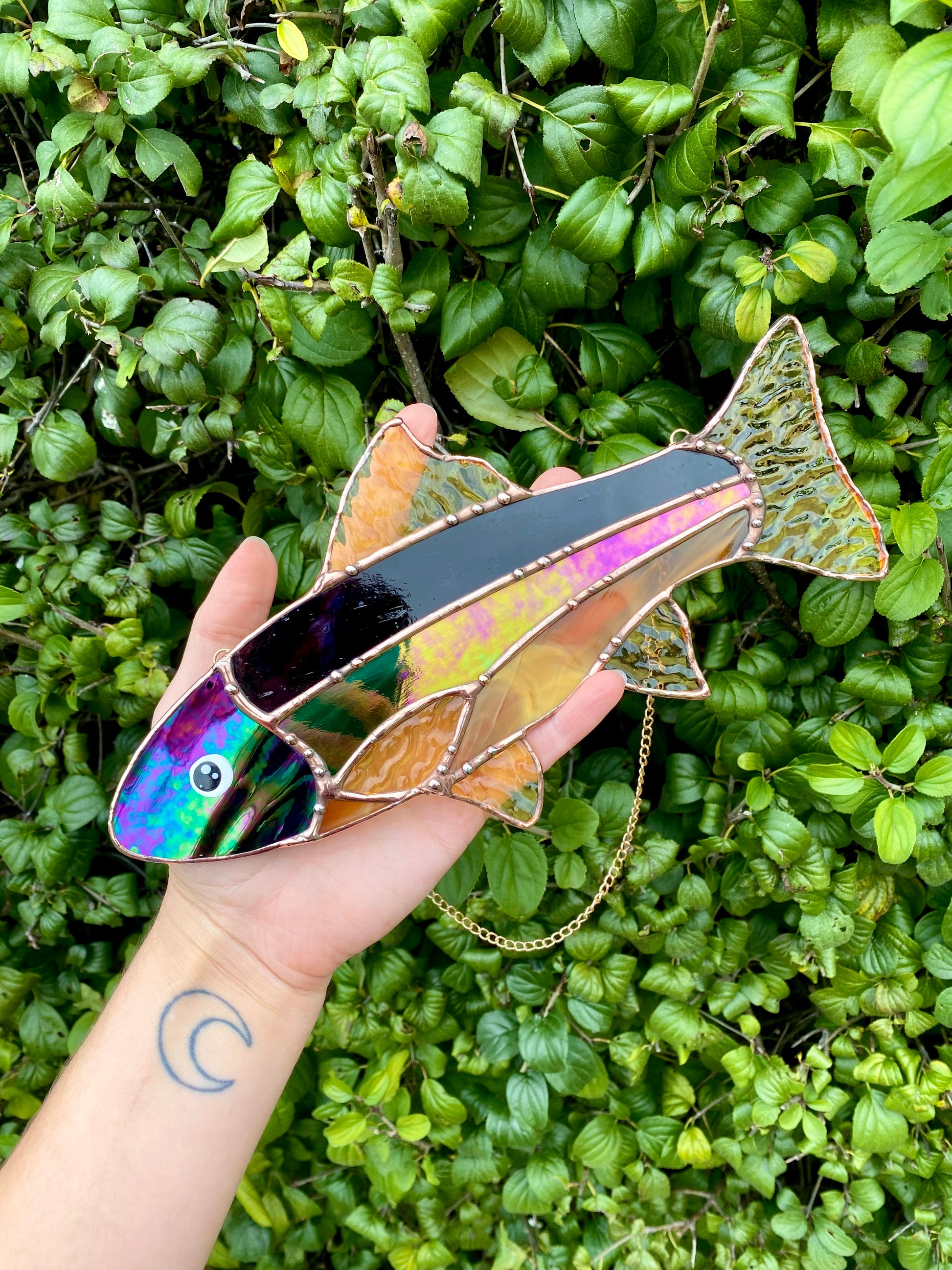 Iridescent Fish Stained Glass Suncatcher