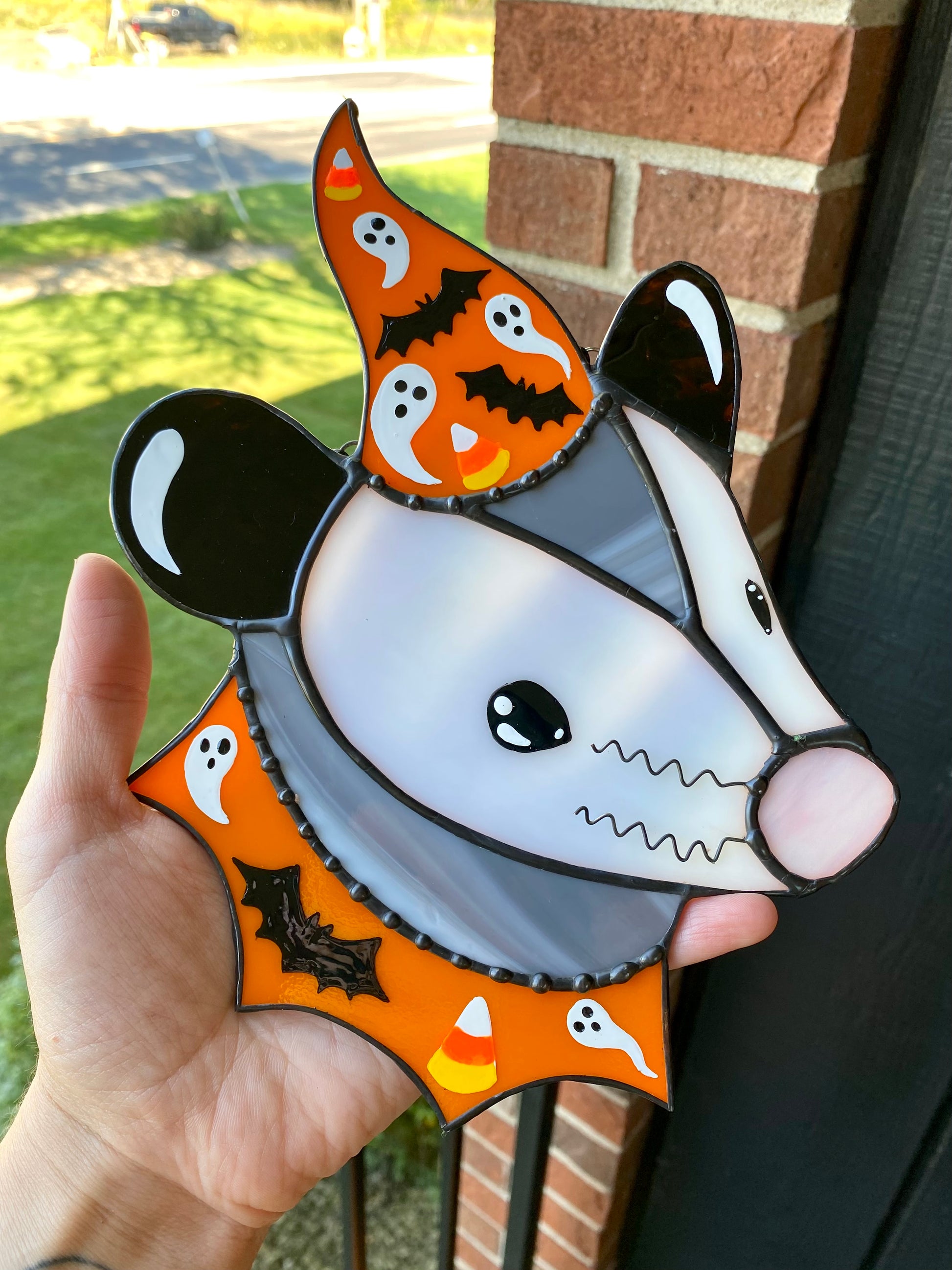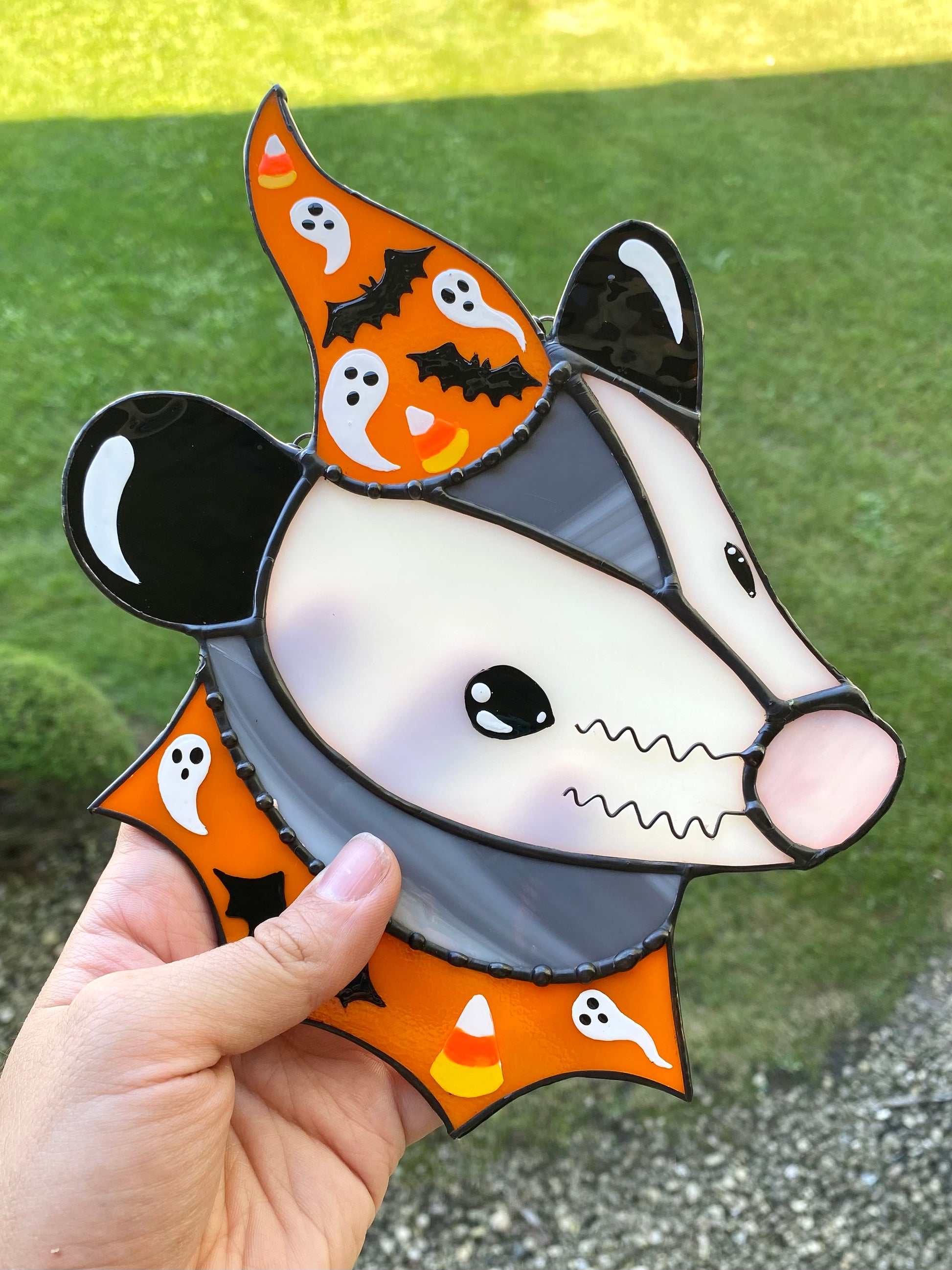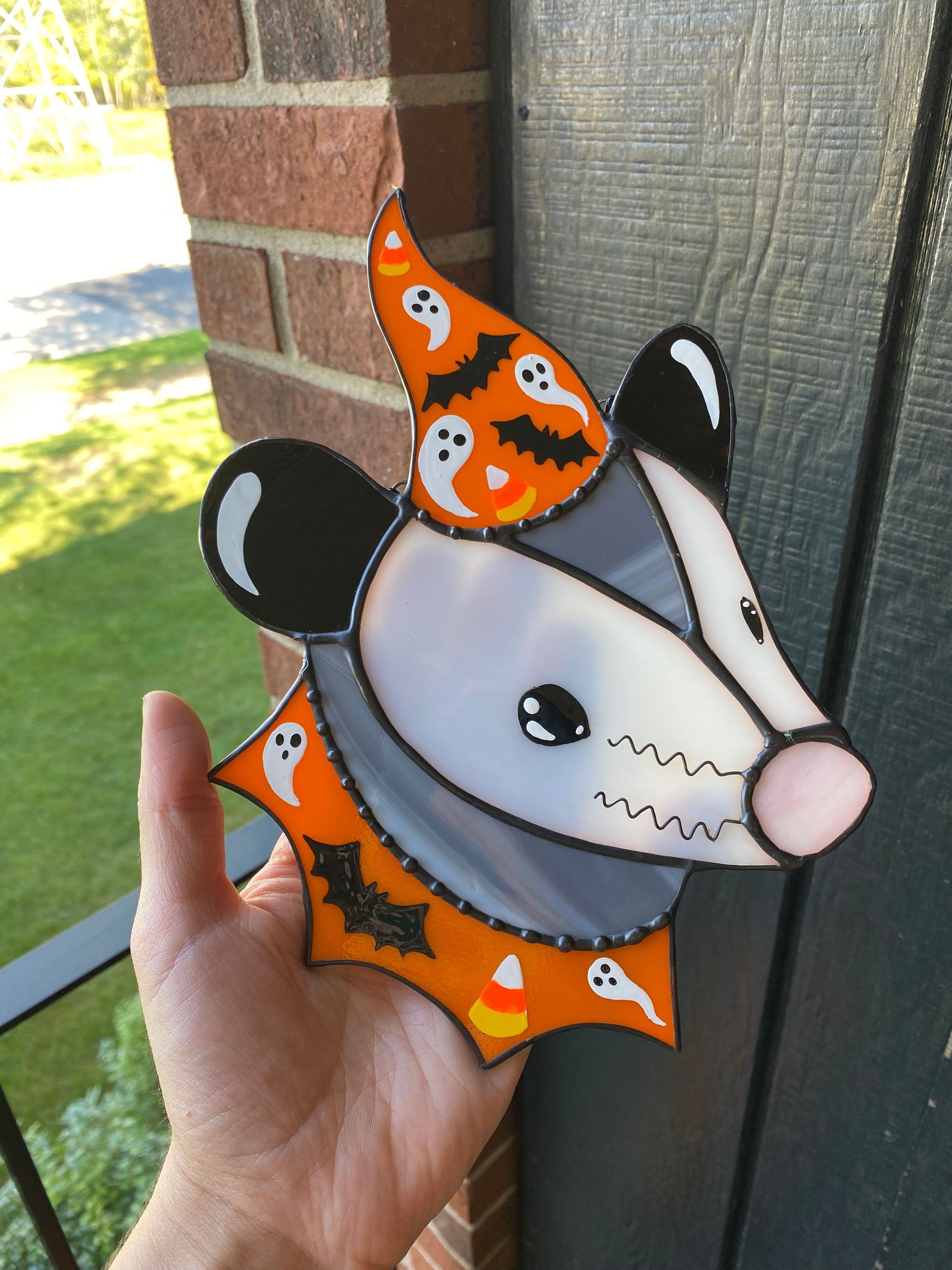 (cracked!) Halloween Opossum Stained Glass Suncatcher