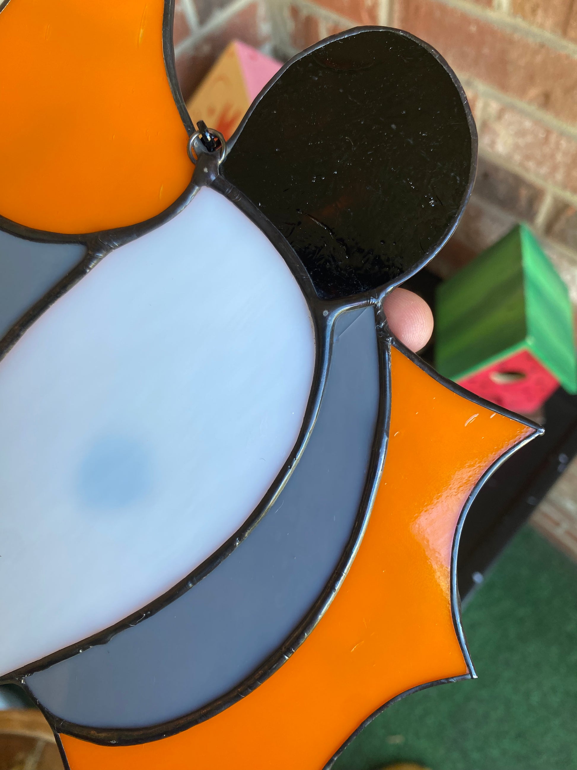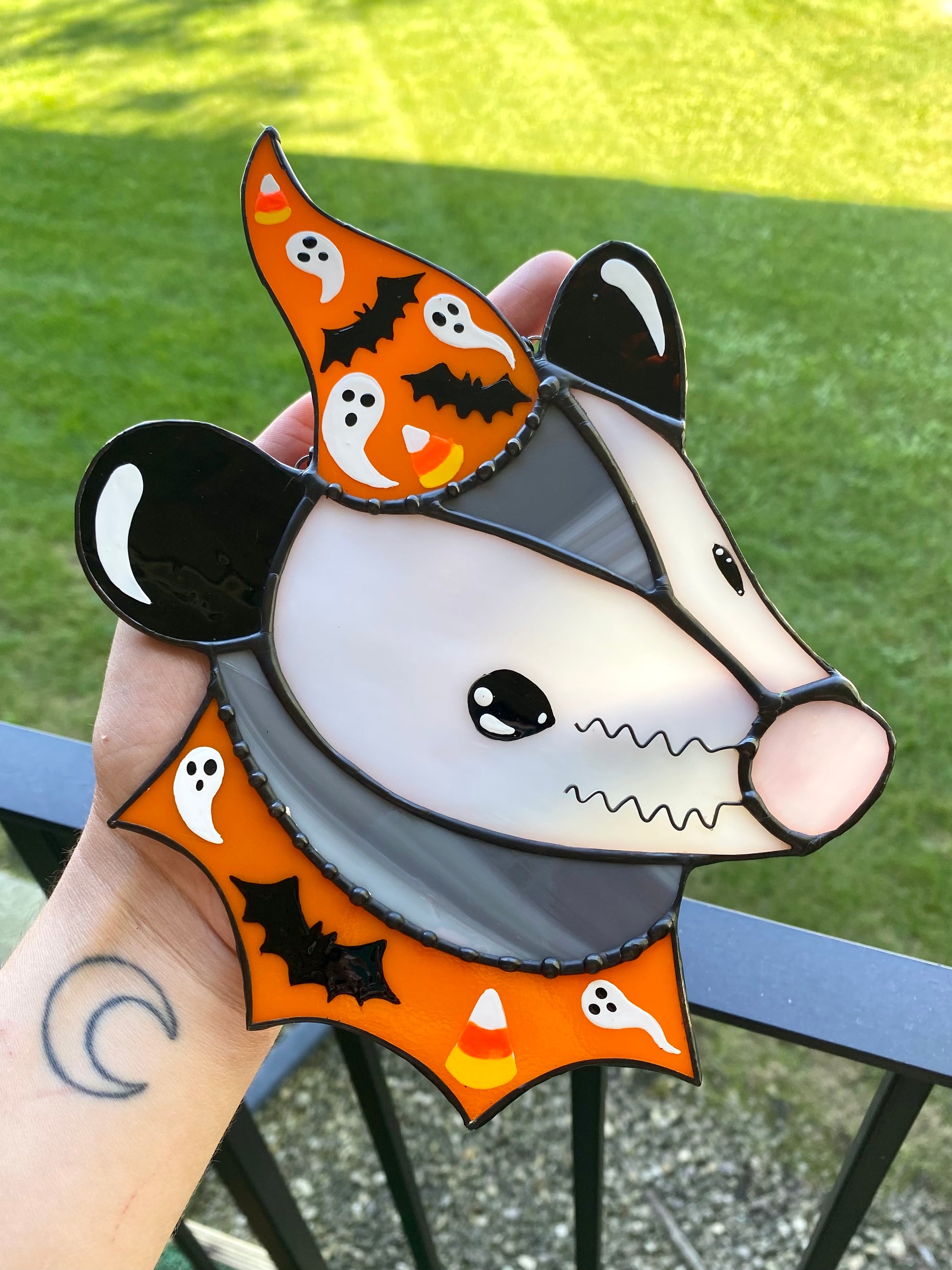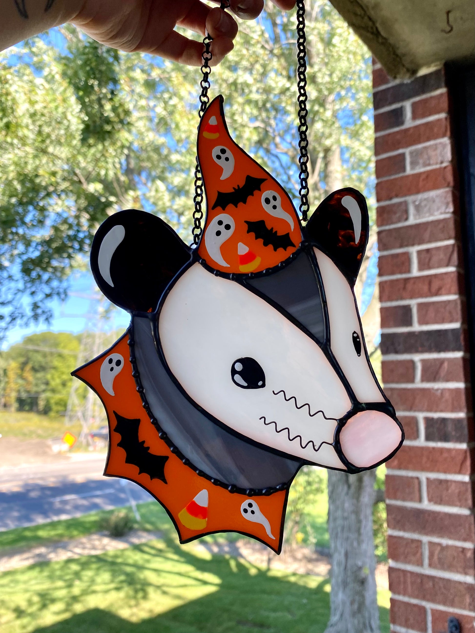(cracked!) Halloween Opossum Stained Glass Suncatcher