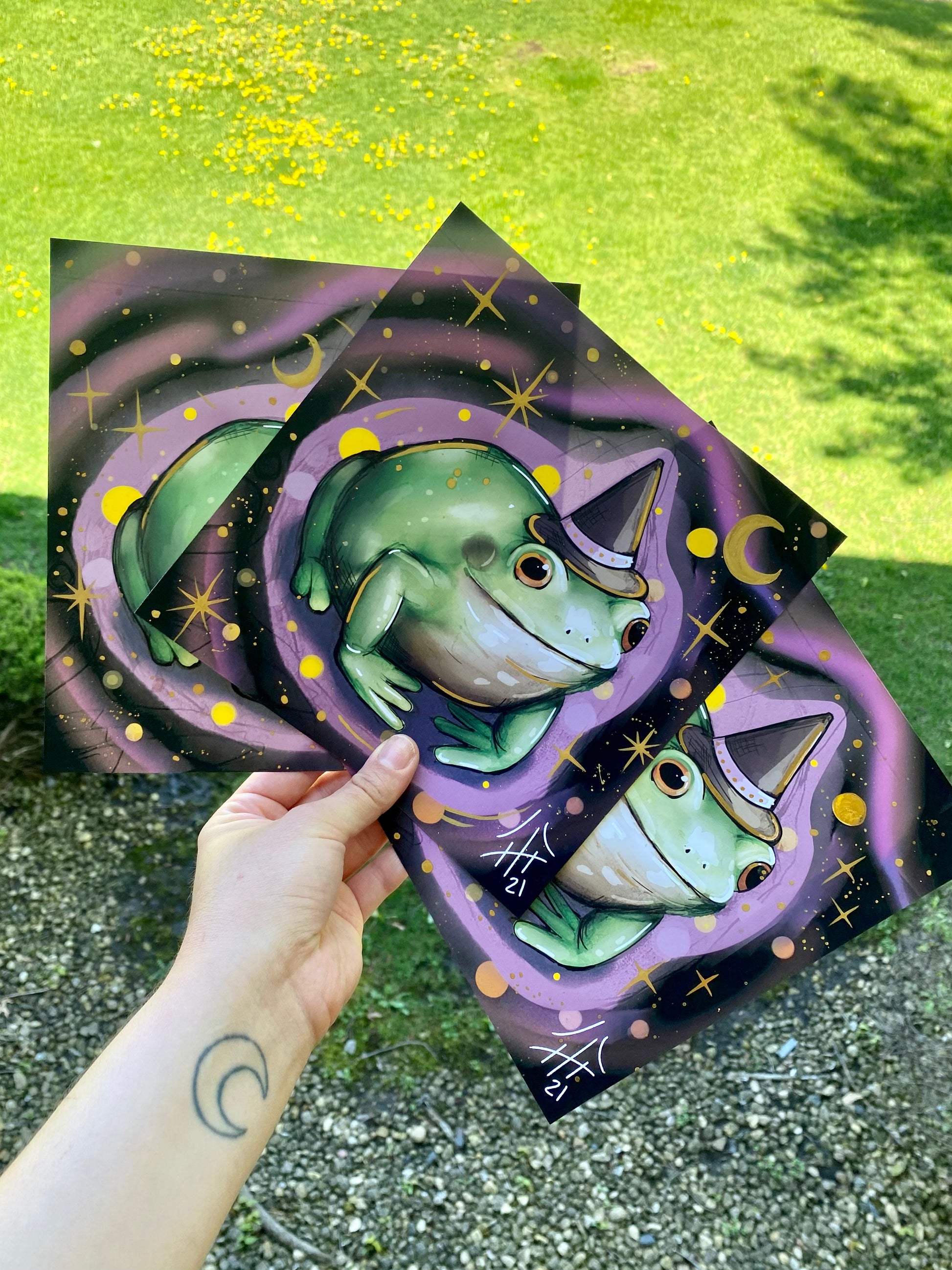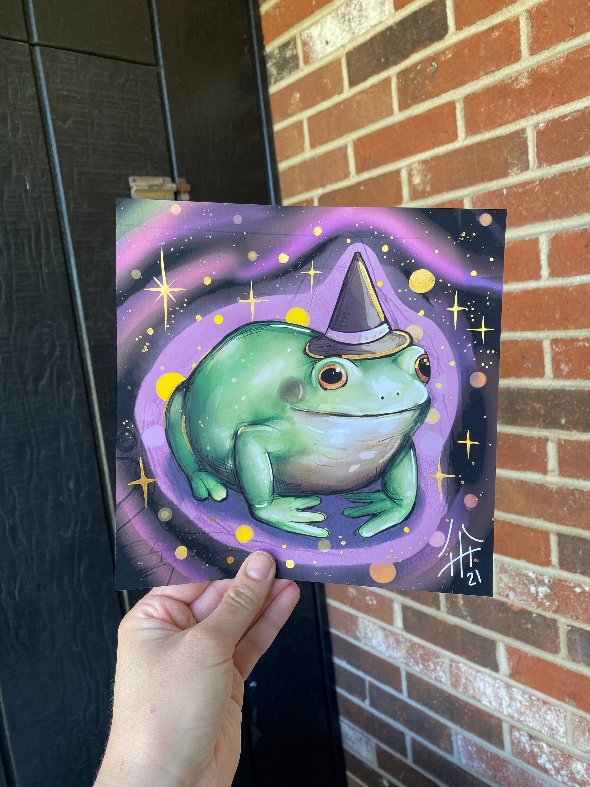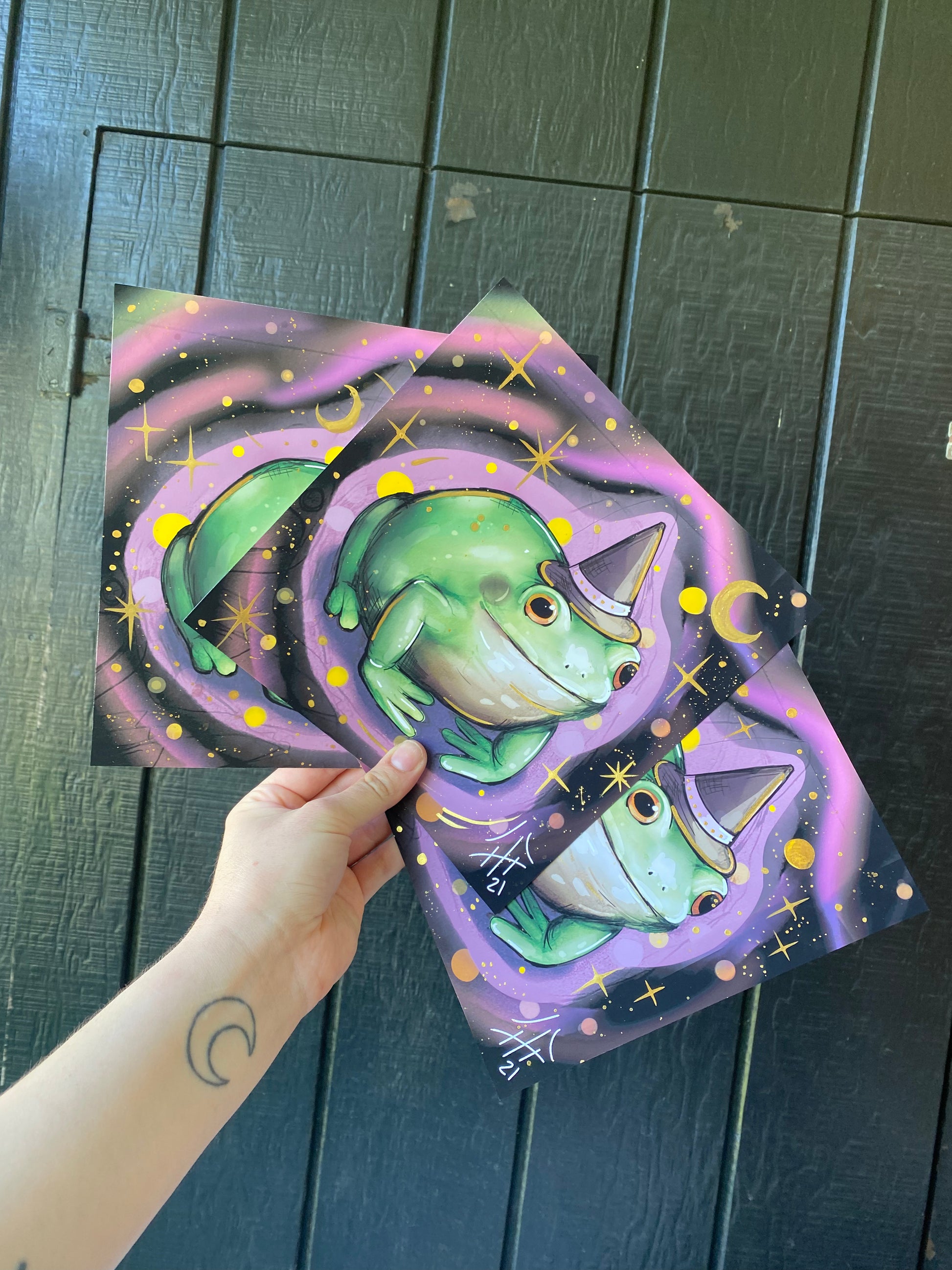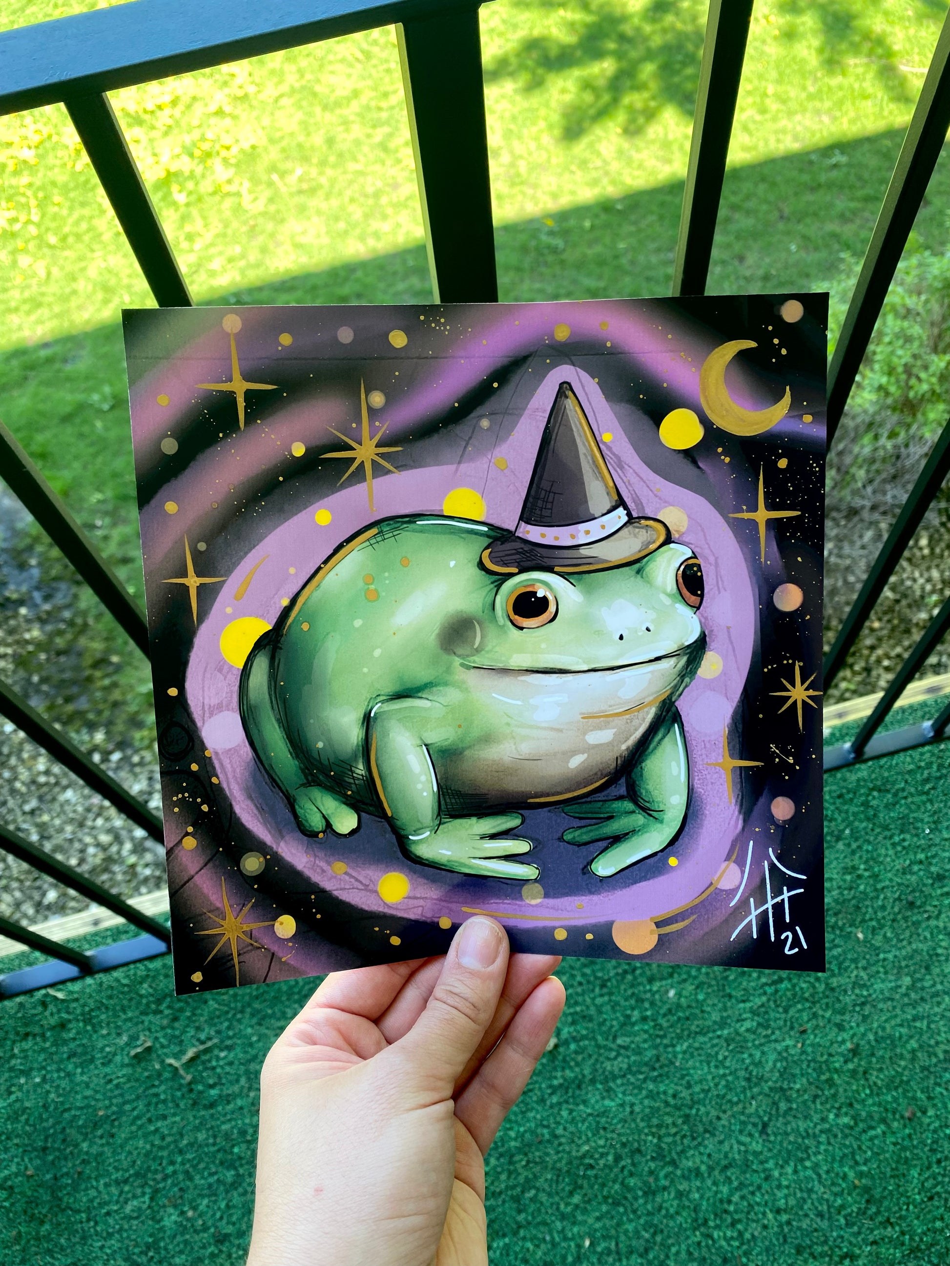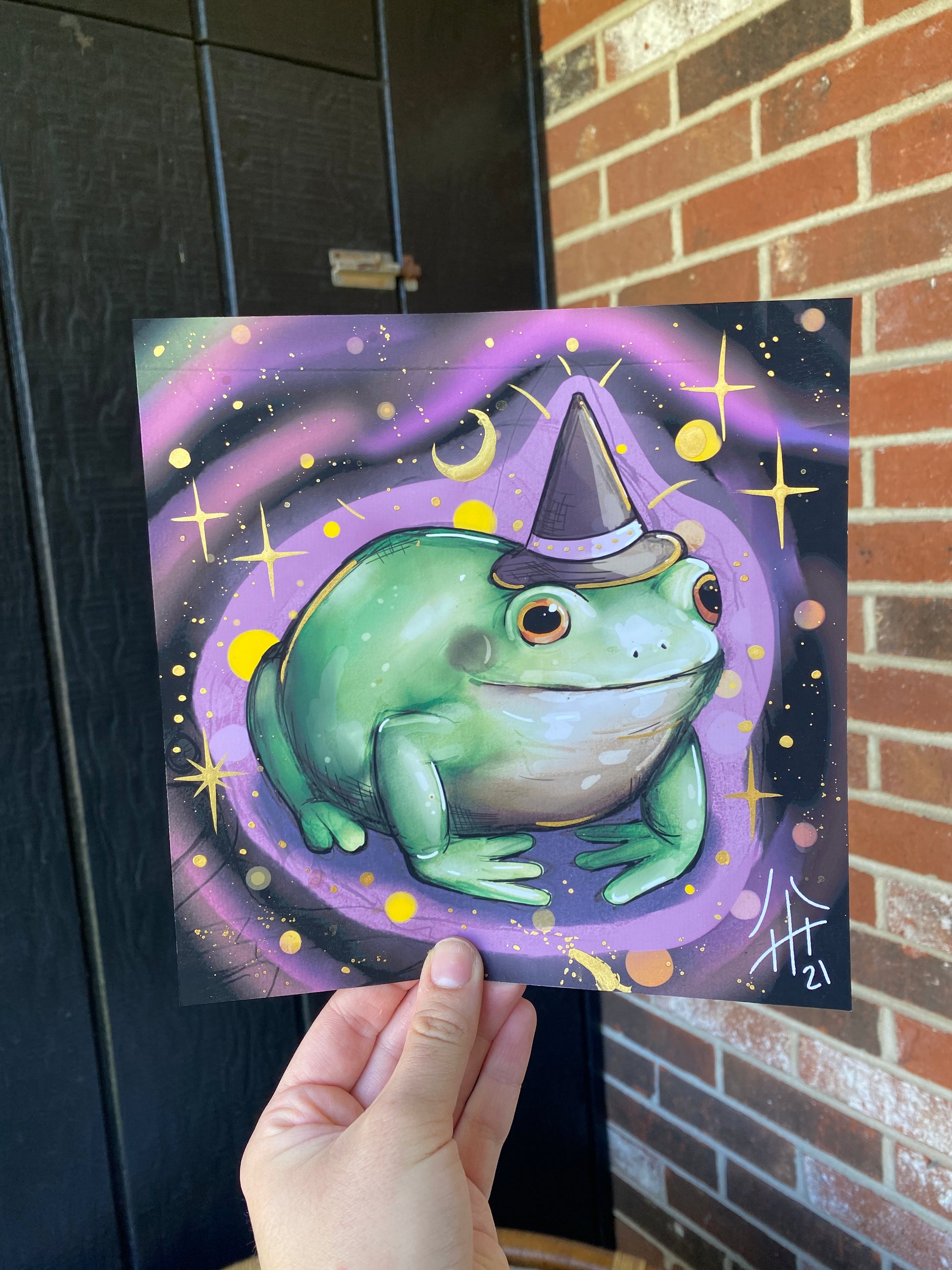 Print hand painted with gold watercolor. Measures 8” by 8”.