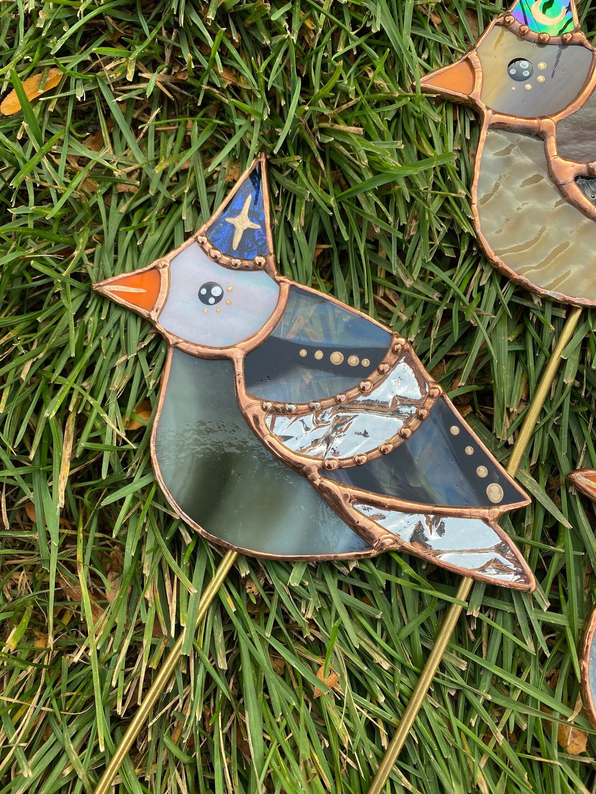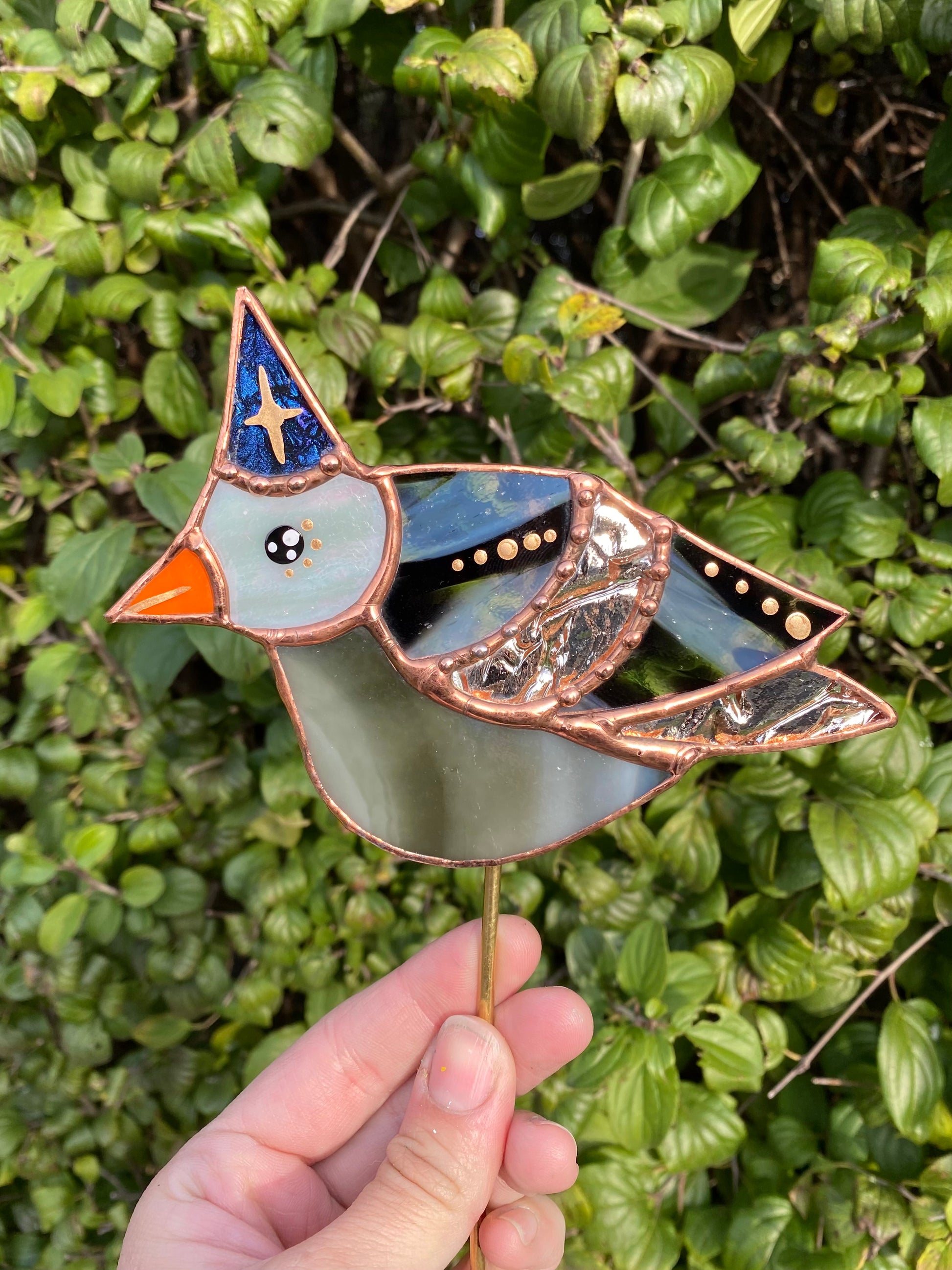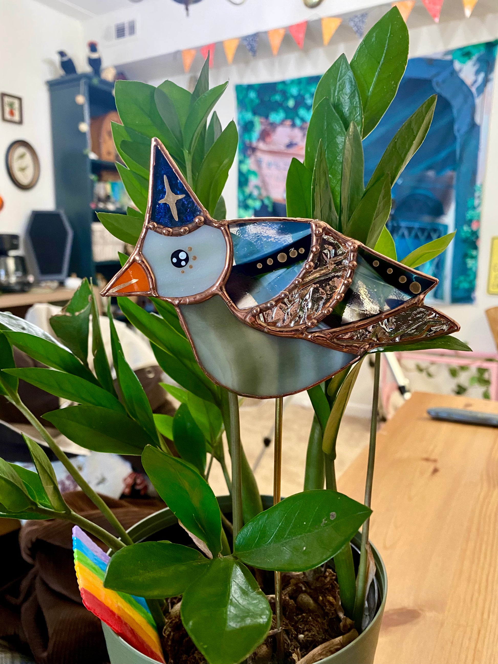 Wizard Pigeon Stained Glass Planter Stake