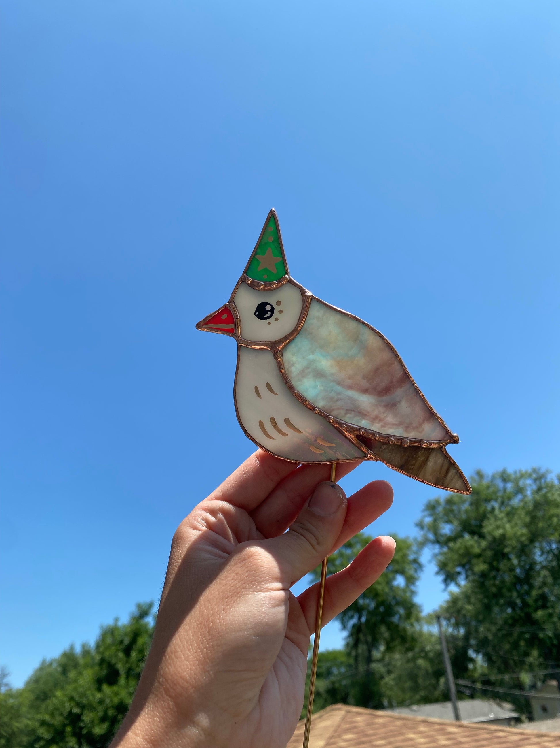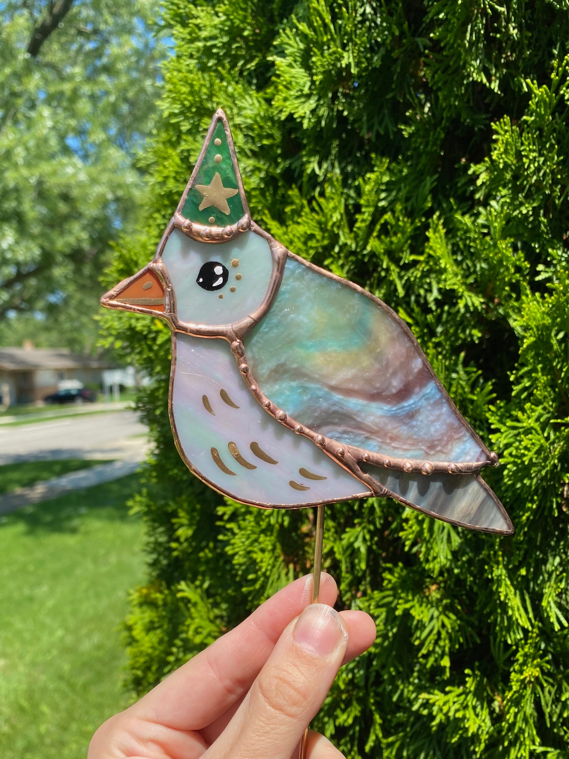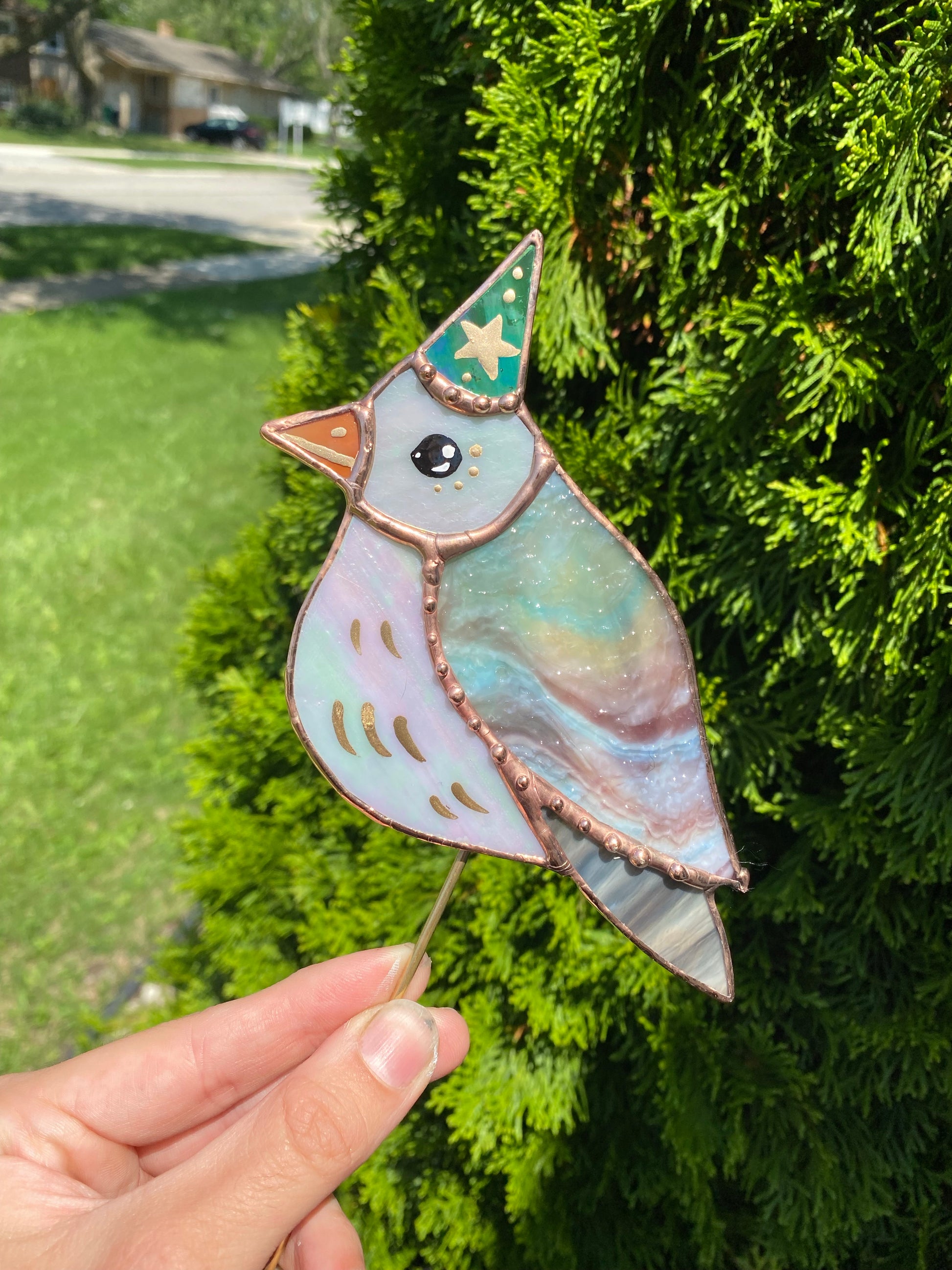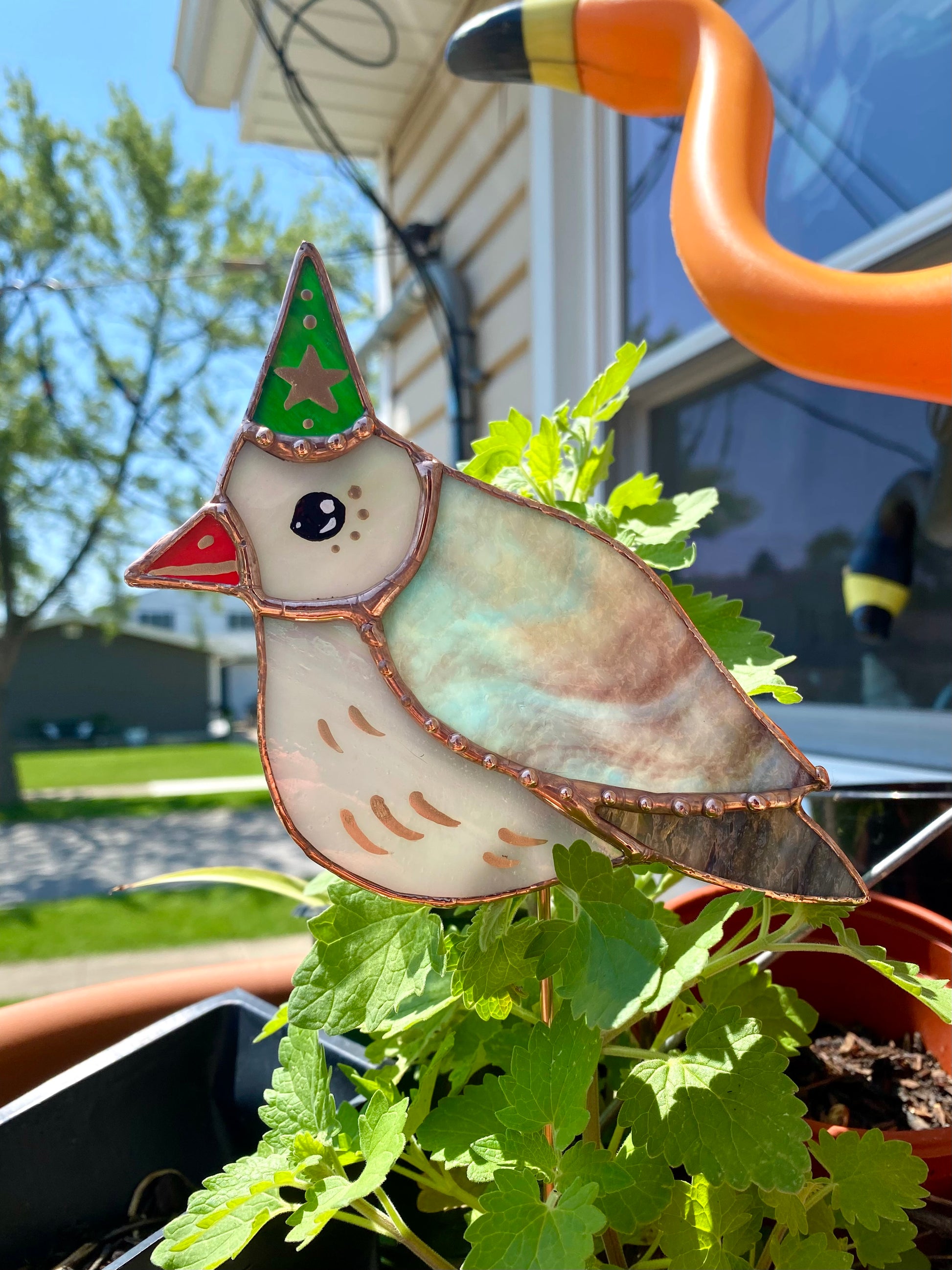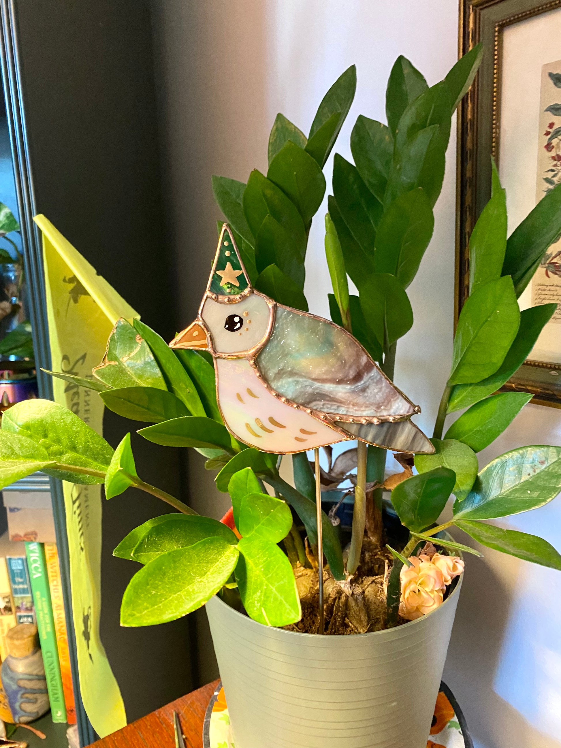 Wizard Pigeon Stained Glass Planter Stake