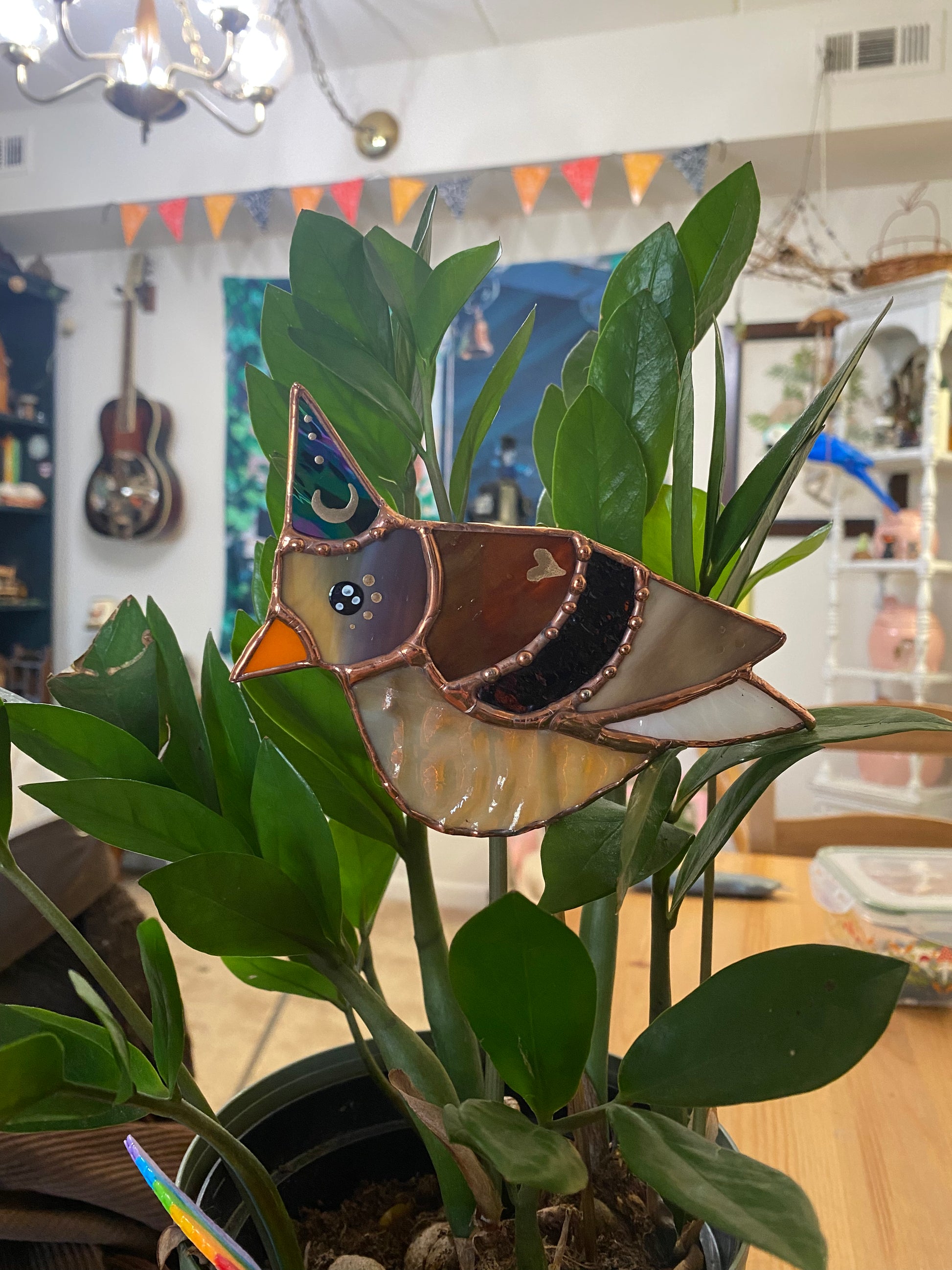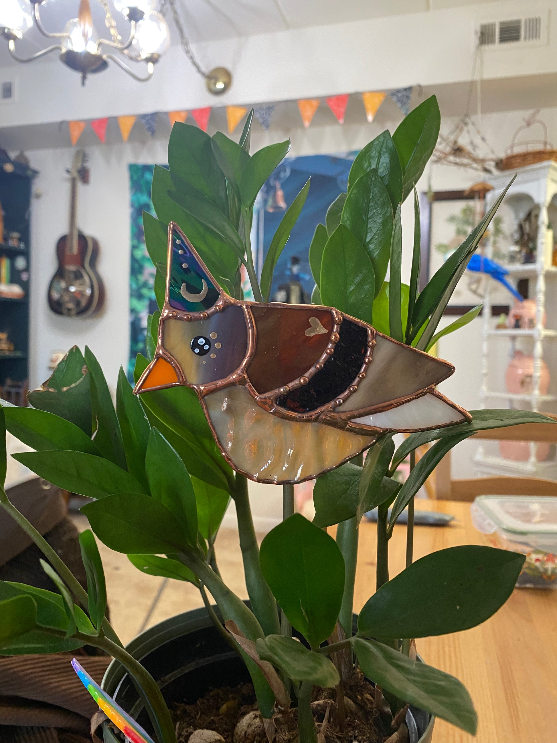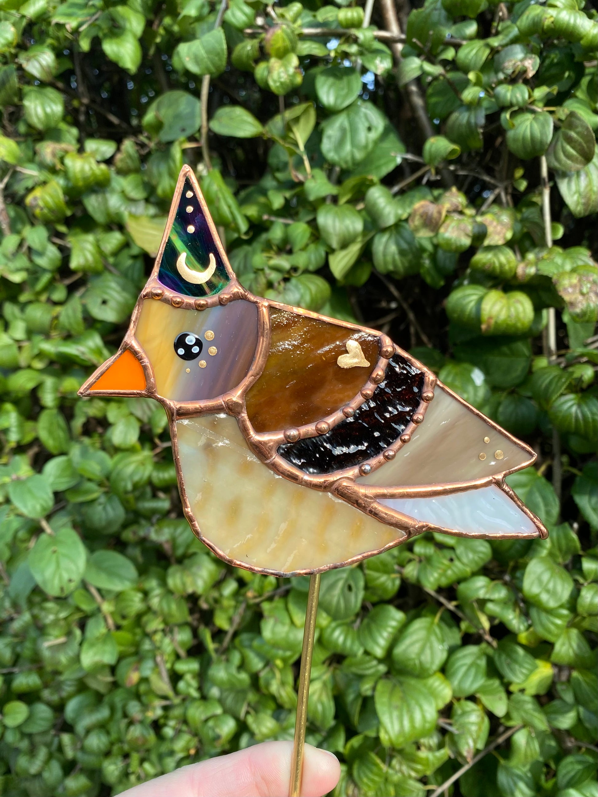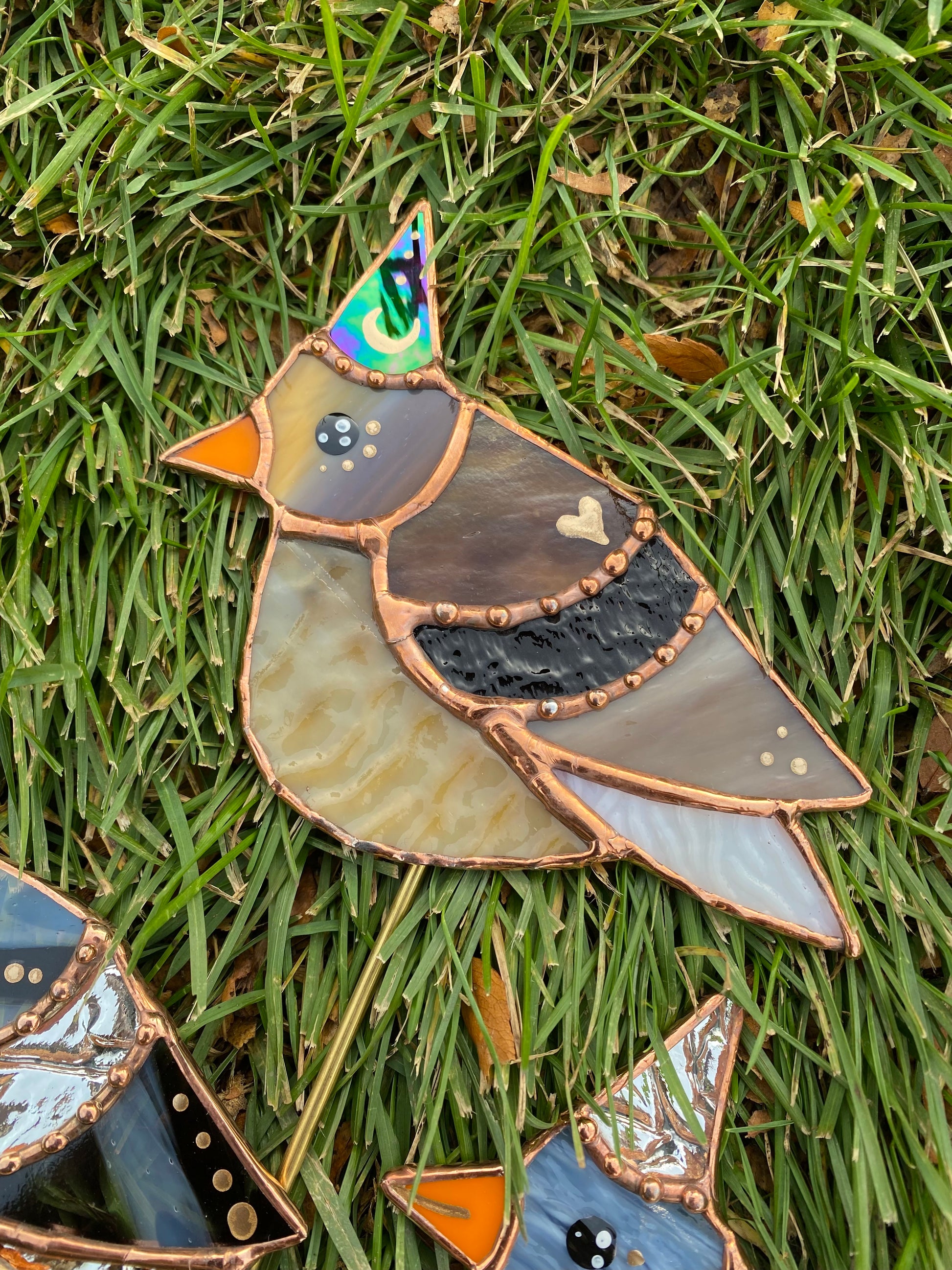 Pigeon is 5.5” by 4.5” on a 6” brass stake.